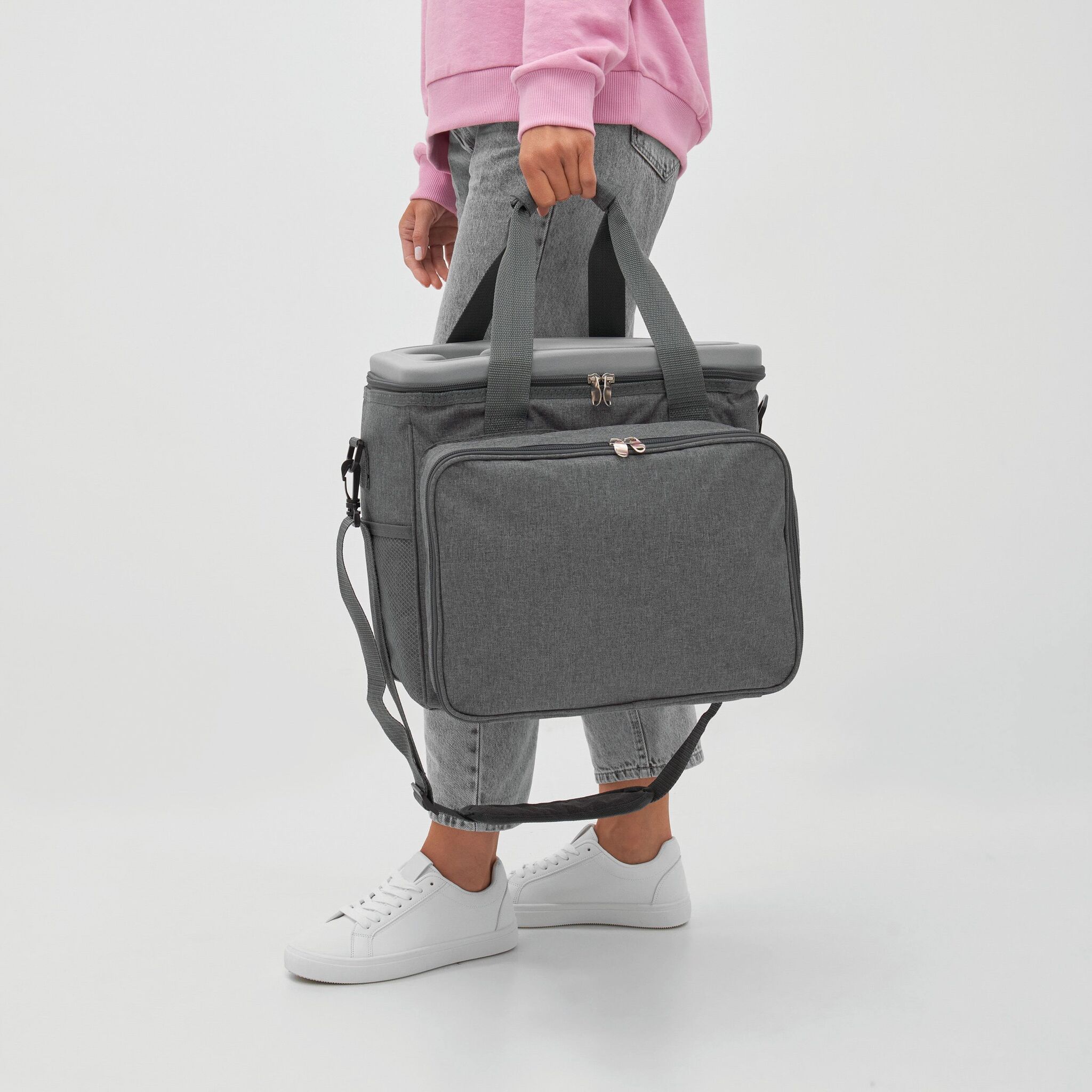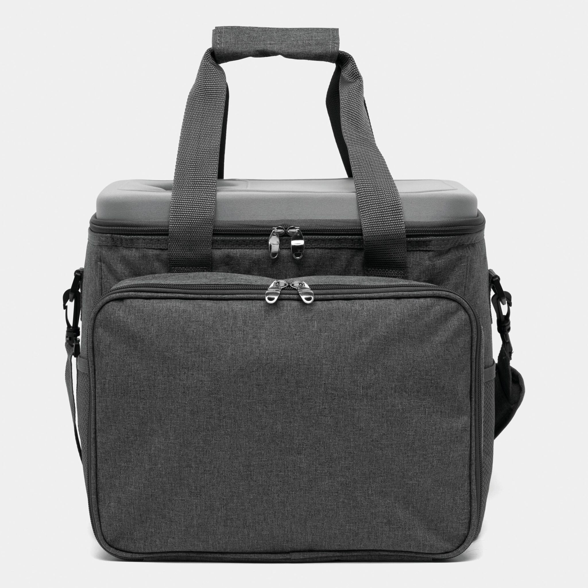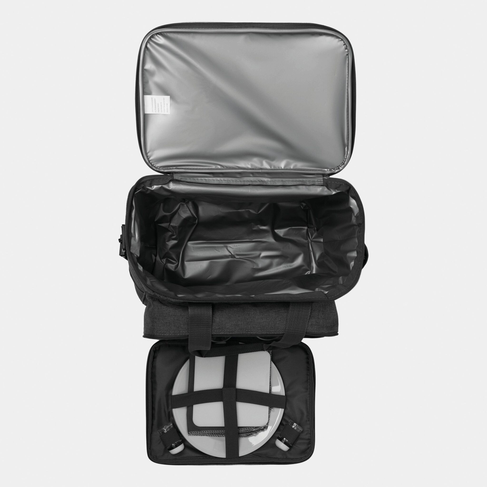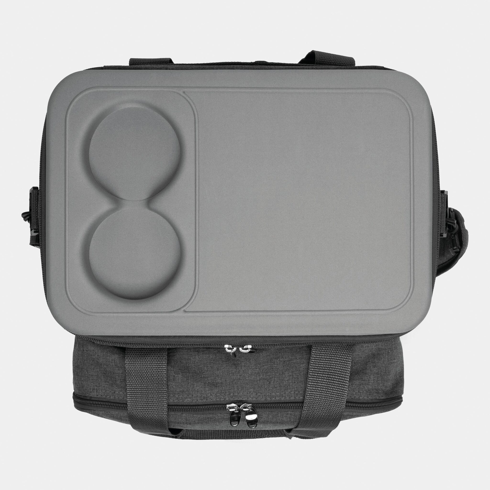 Сумка для пикника SIDE TRIP для 4 персон, изолированный основной отдел на молнии, крышка может послужить вместо столика, в переднем отделе на молнии: пластиковые тарелки, пластиковые бокалы для вина, нож-сомелье, салфетки из материала, набор для соли и перца, разделочная доска; 2 боковых кармана, регулируемый плечевой ремень, 2 ручки