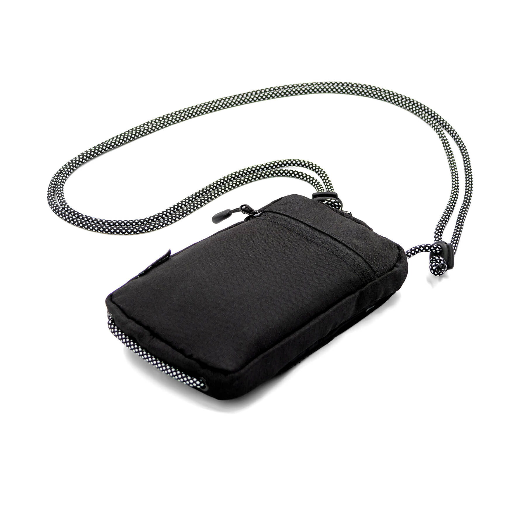 Компактная сумка из переработанных PET-бутылок (2 шт.) Изготовлена из водонепроницаемого ПЭТ материала, оснащена магнитным замком со шнуром-молнией и удобными отделениями для телефона, кошелька и ключей. Регулируемый ремень позволяет носить сумку через плечо или на груди.