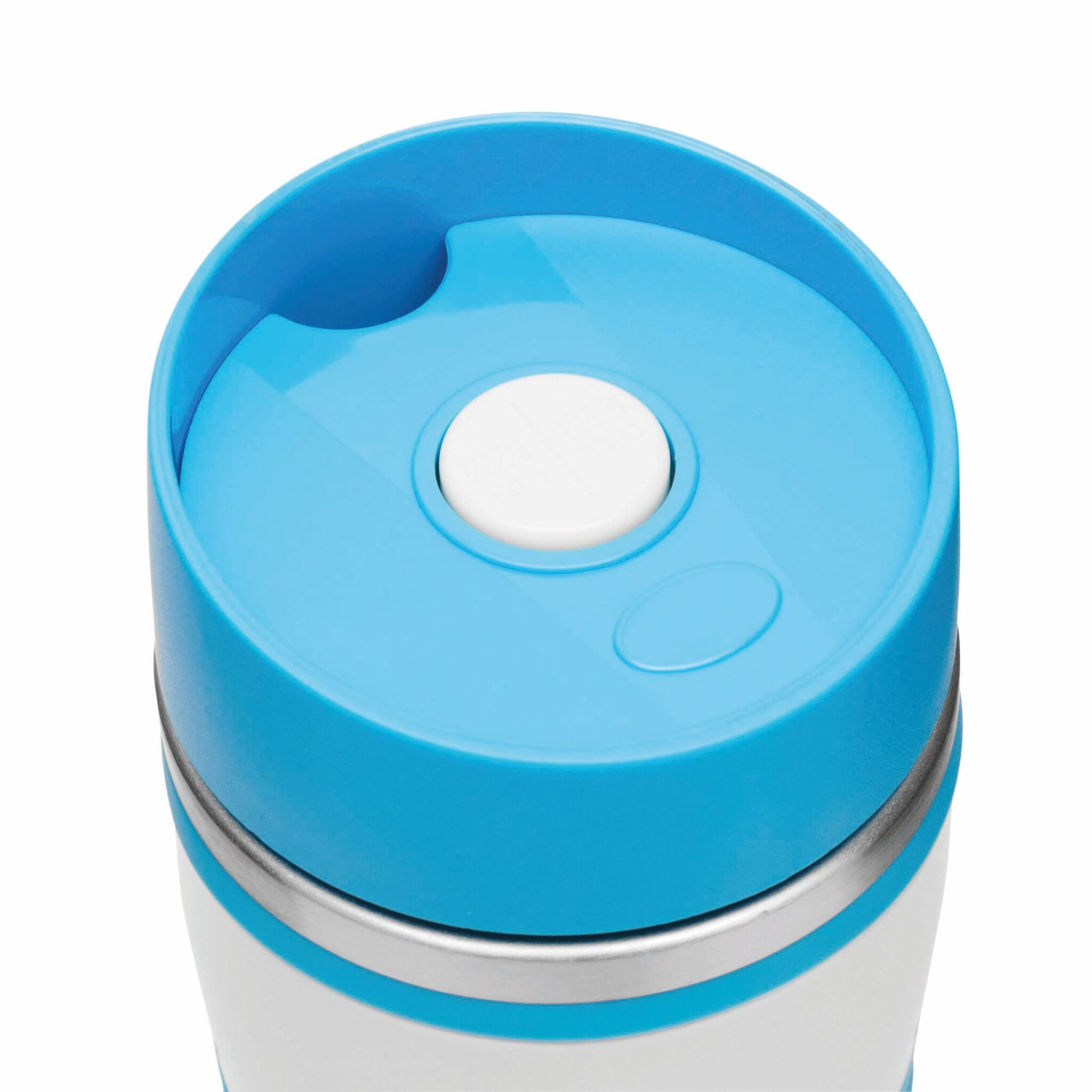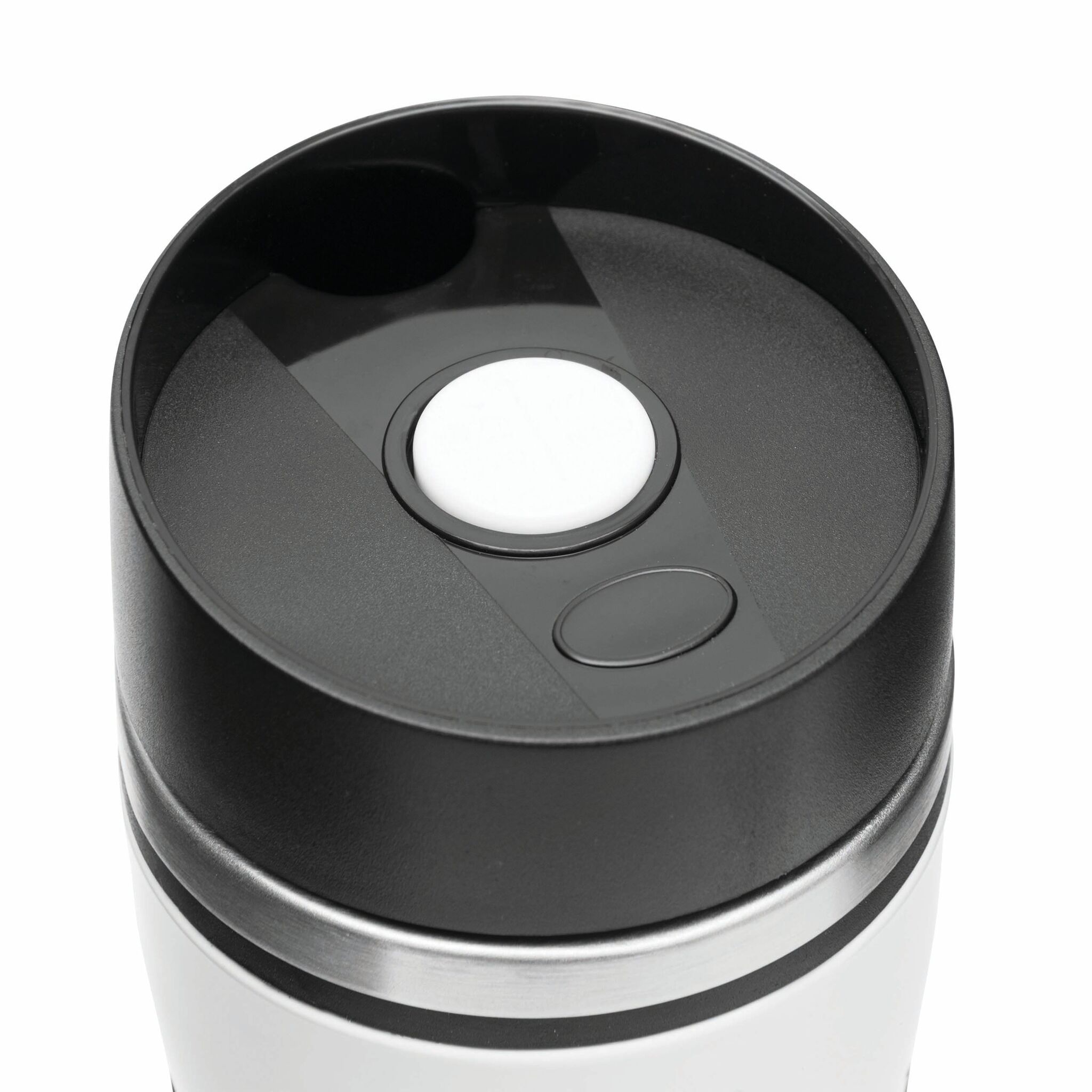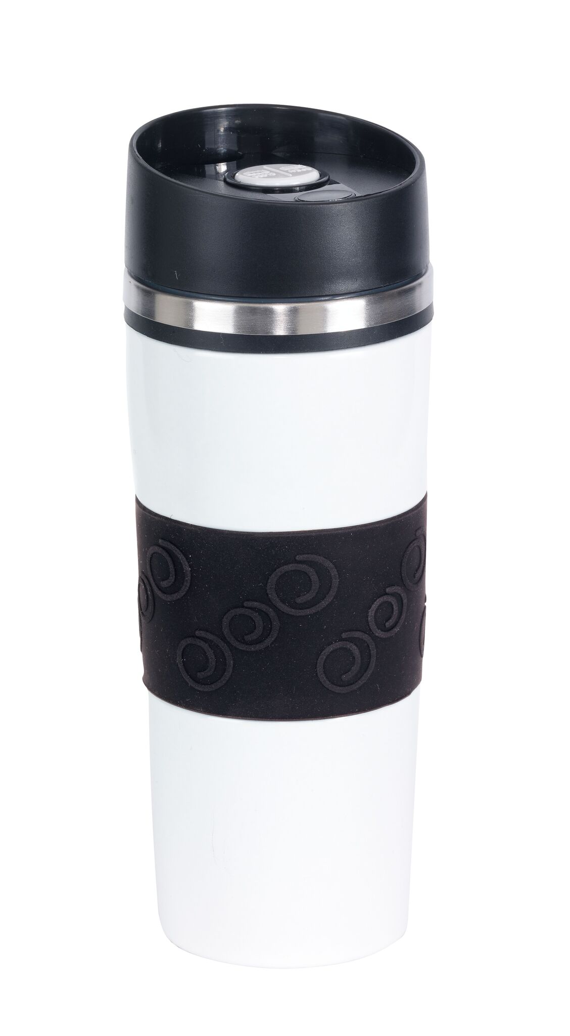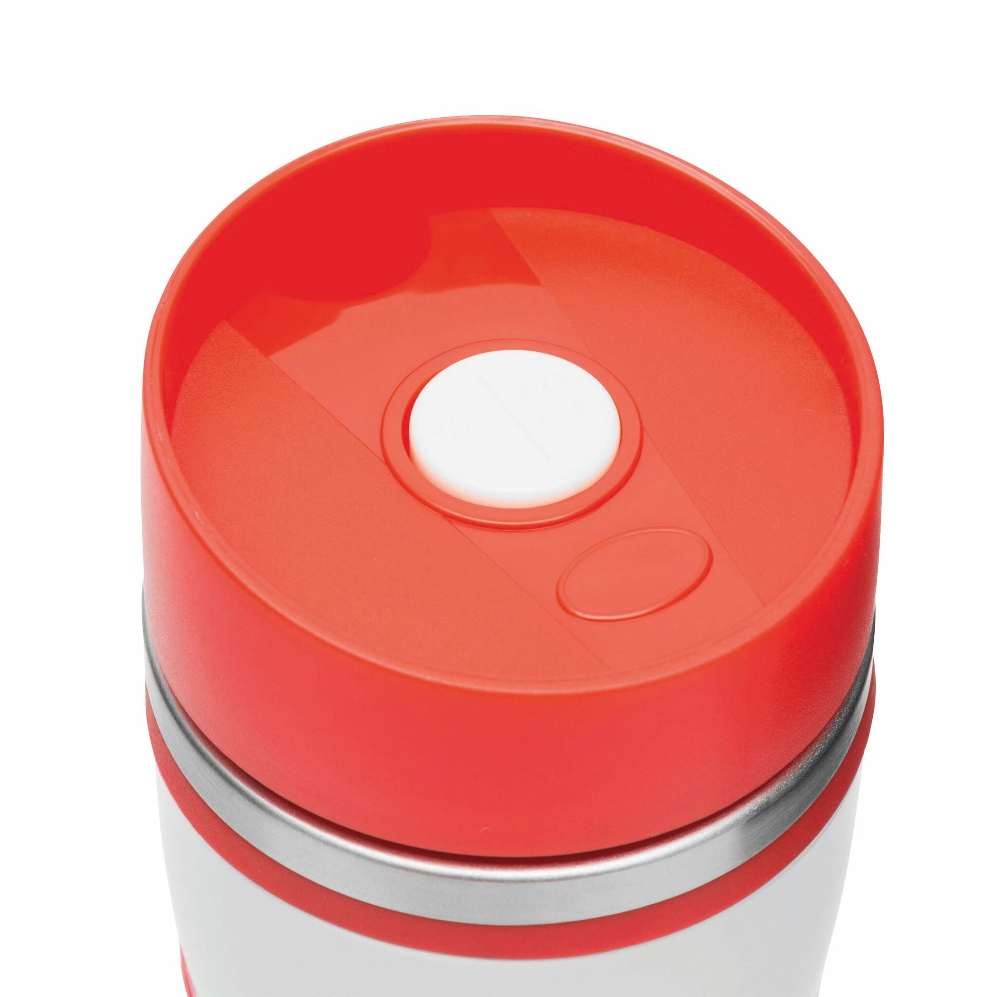 Термо кружка ARABICA с наружи и из нутри нержавеющая сталь, цветная откручивающаяся крышка, кнопка OPEN/CLOSE и отверстие для питья, цветной, силиконовый ободок и прорезиненное дно, объём 400 мл.