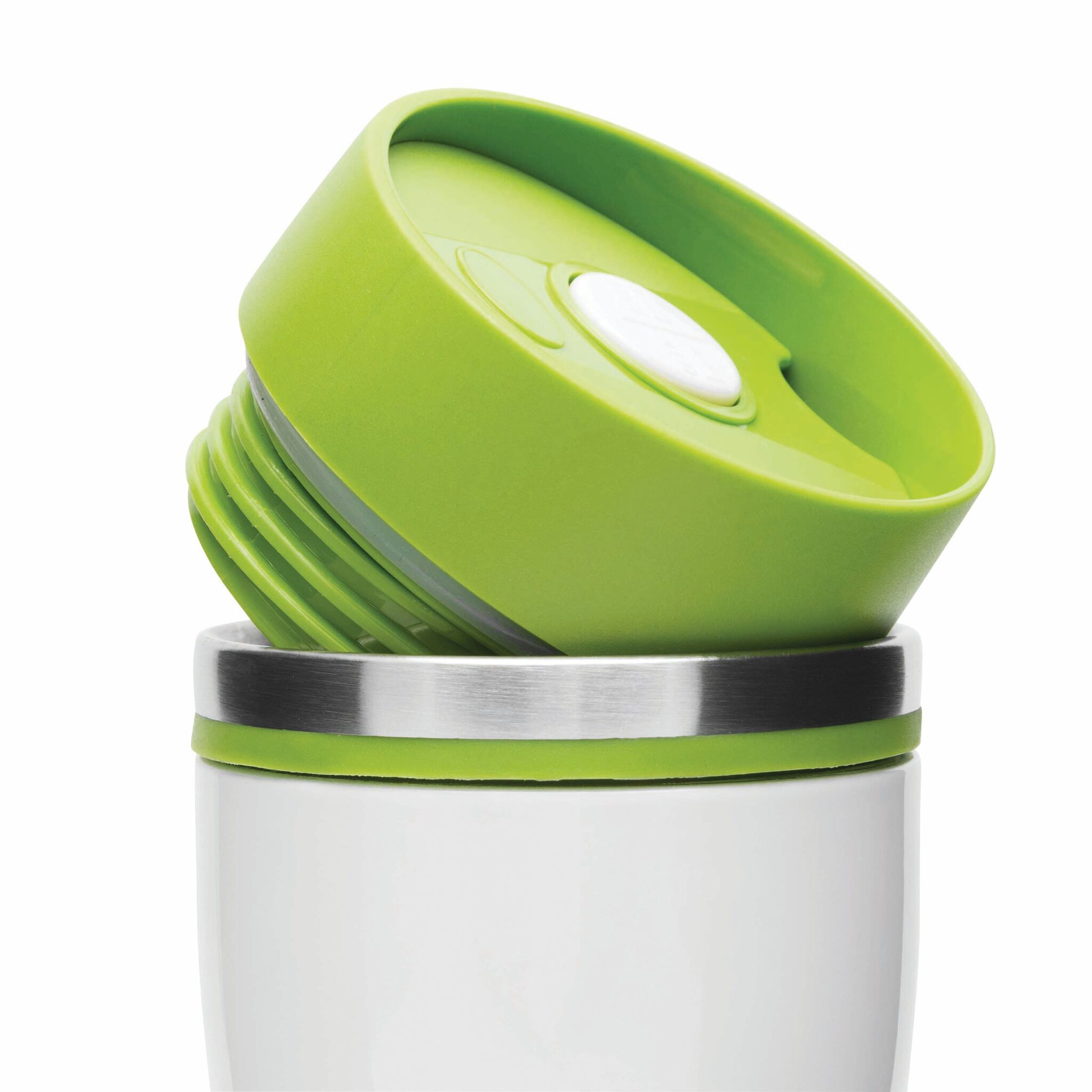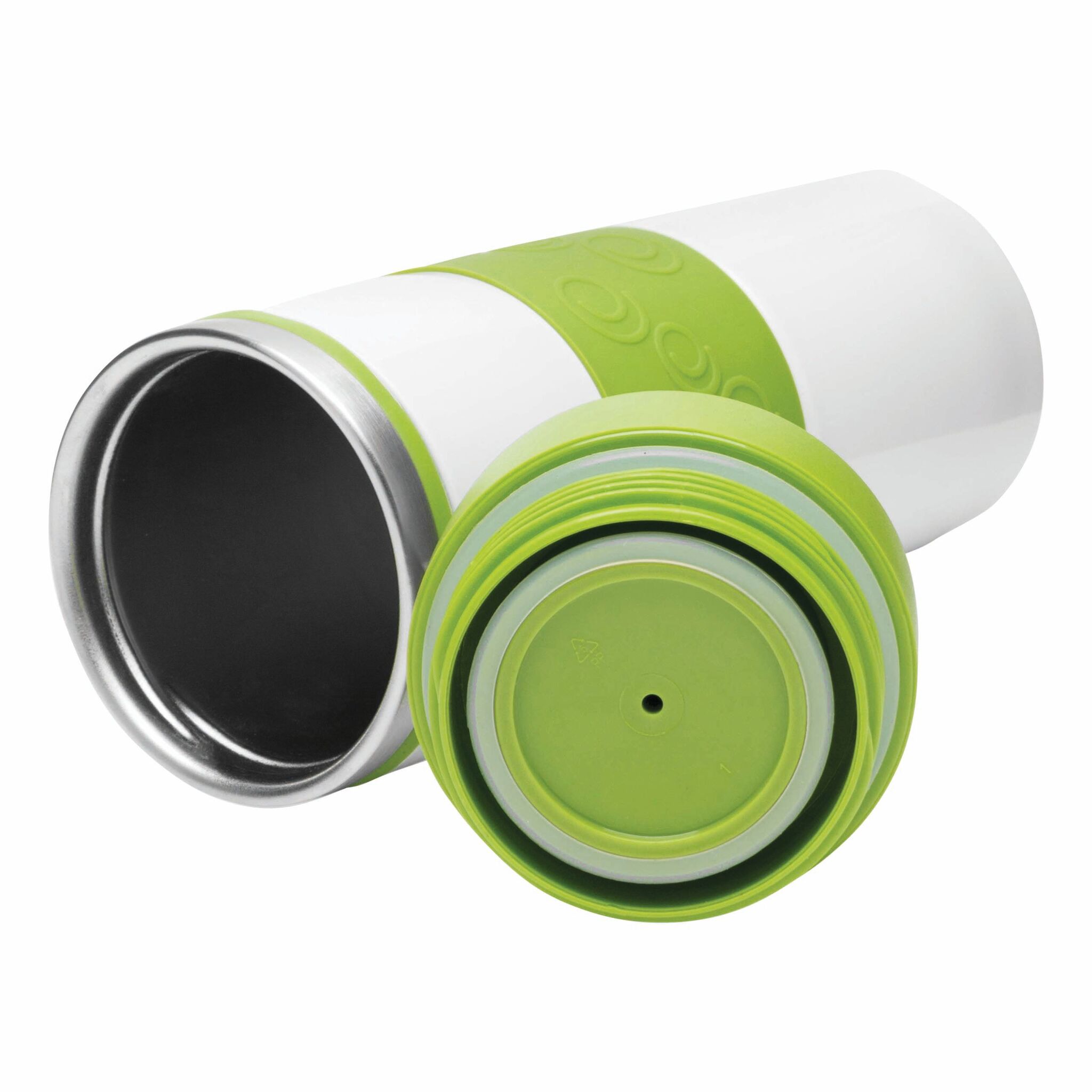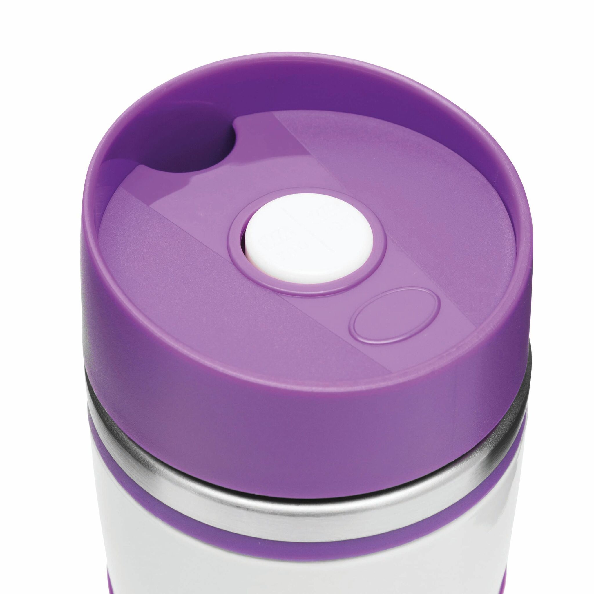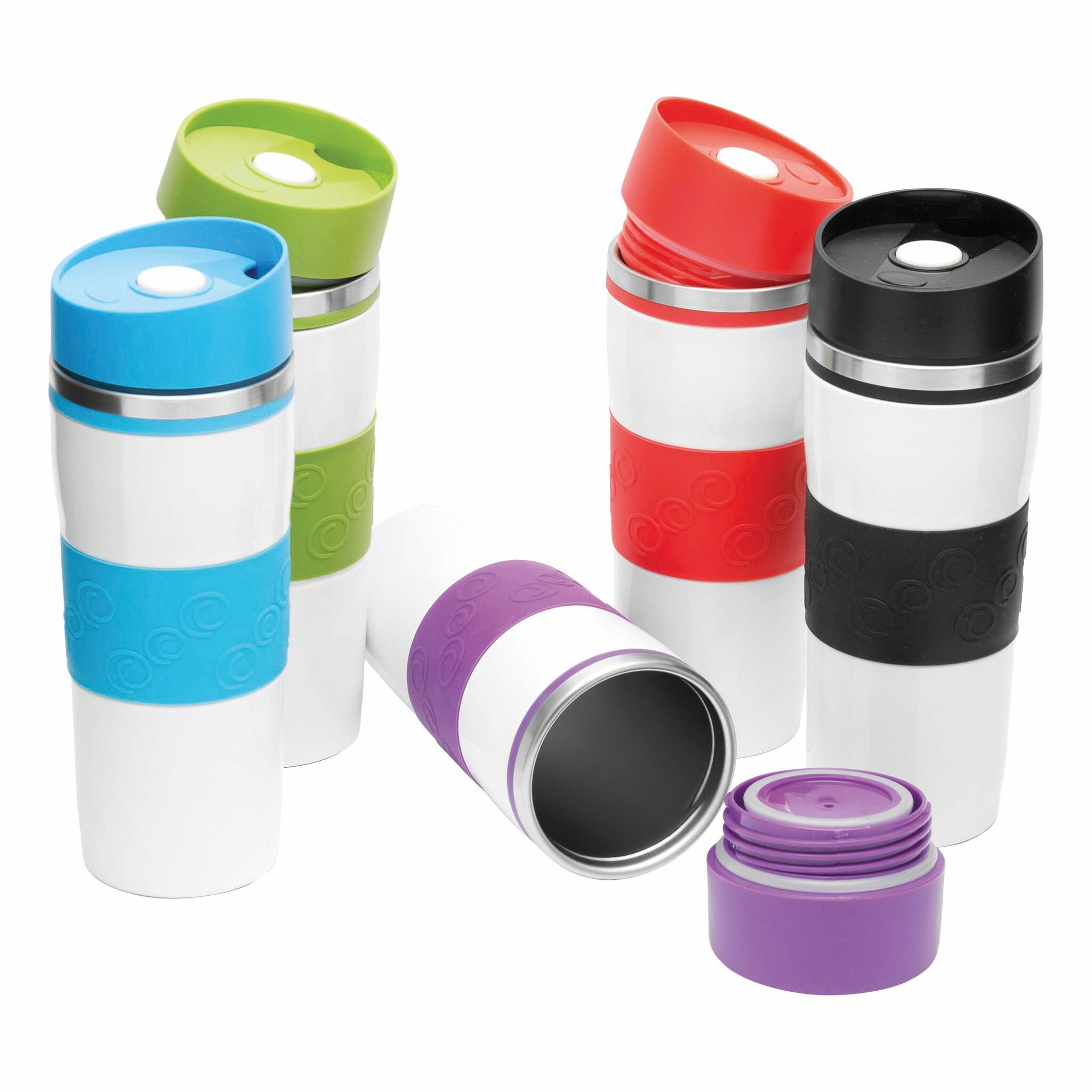 Термо кружка ARABICA с наружи и из нутри нержавеющая сталь, цветная откручивающаяся крышка, кнопка OPEN/CLOSE и отверстие для питья, цветной, силиконовый ободок и прорезиненное дно, объём 400 мл.