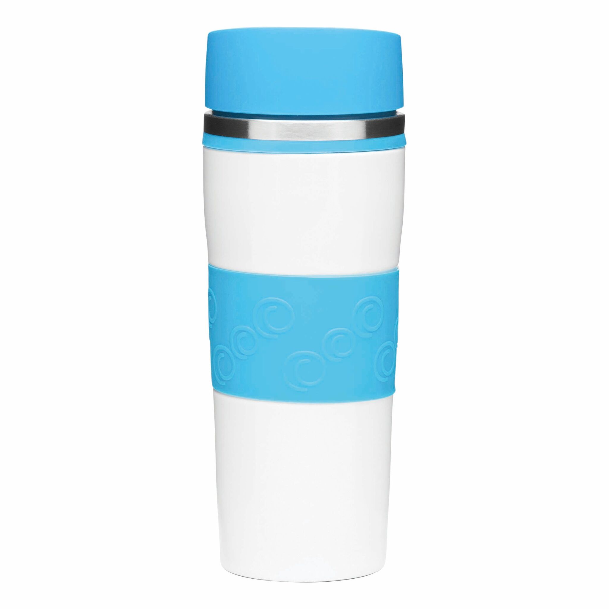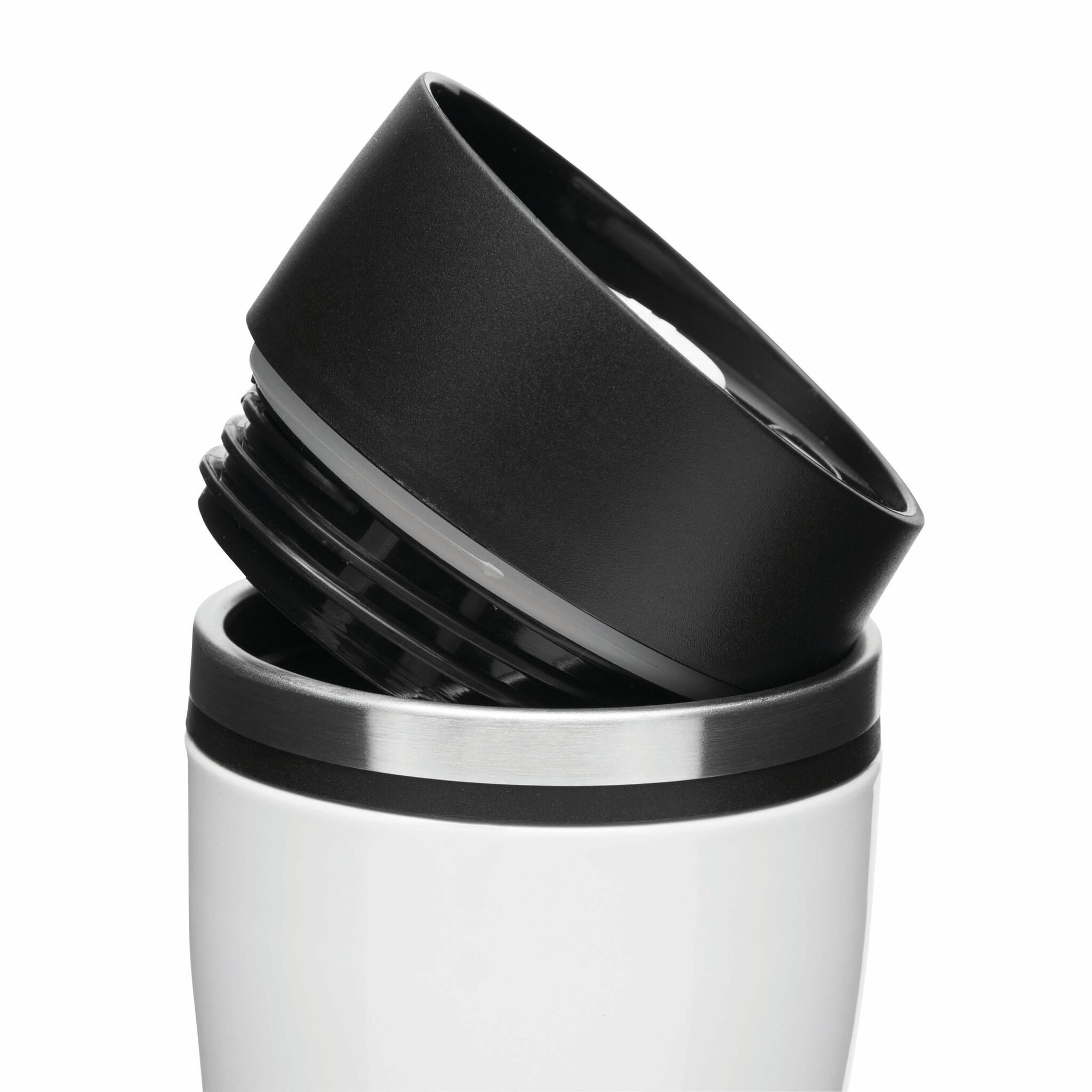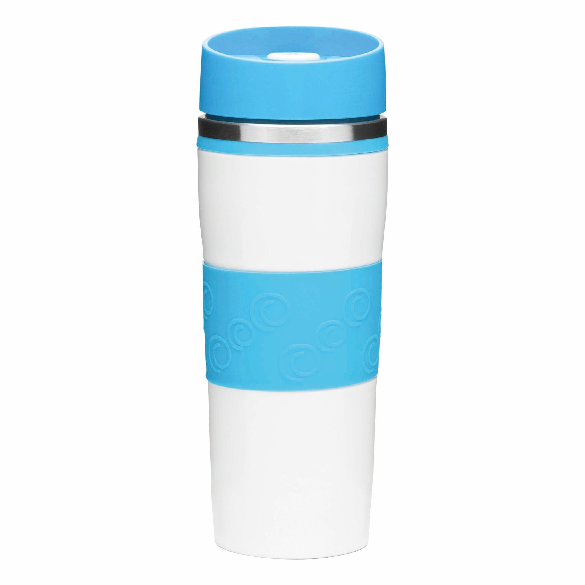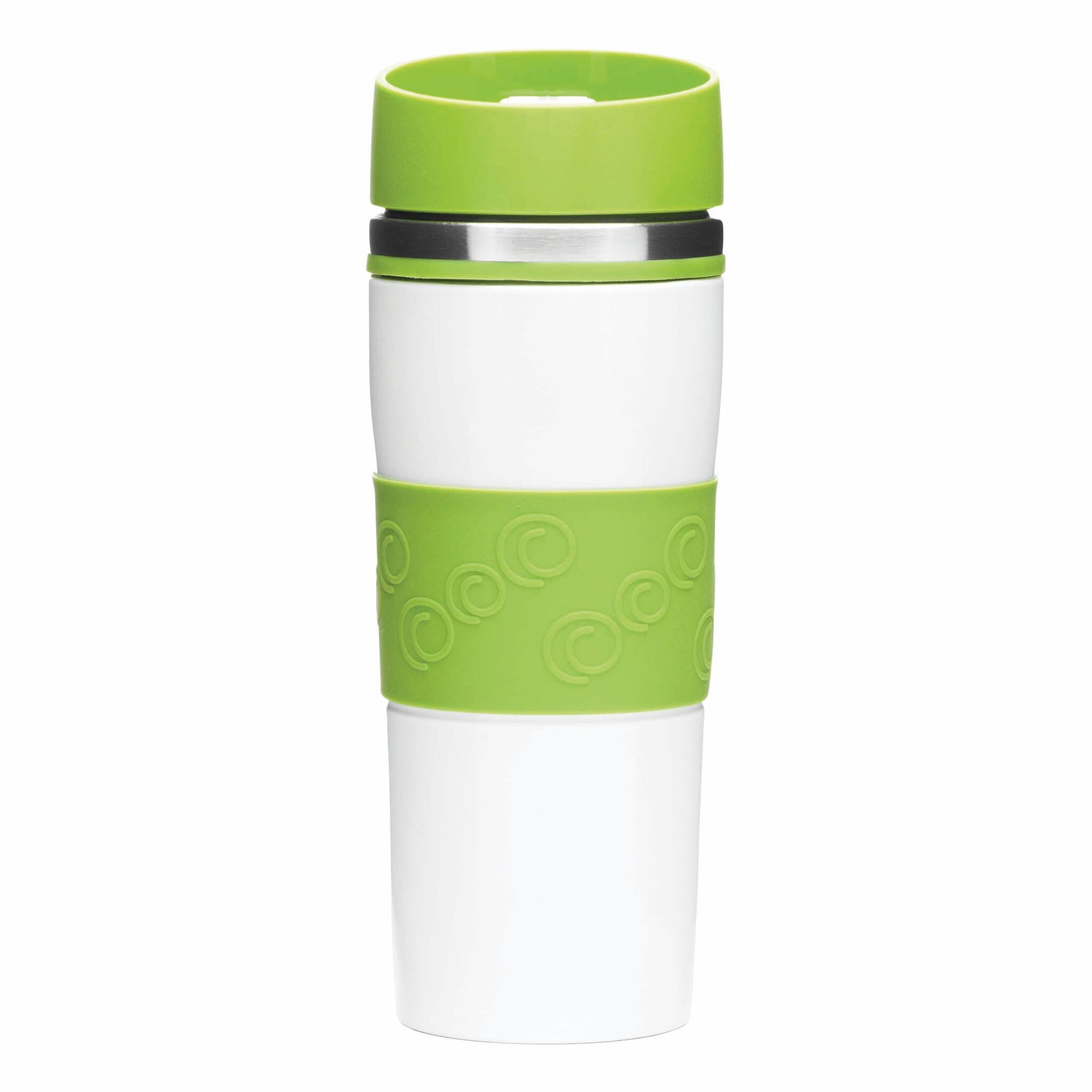 Термо кружка ARABICA с наружи и из нутри нержавеющая сталь, цветная откручивающаяся крышка, кнопка OPEN/CLOSE и отверстие для питья, цветной, силиконовый ободок и прорезиненное дно, объём 400 мл.