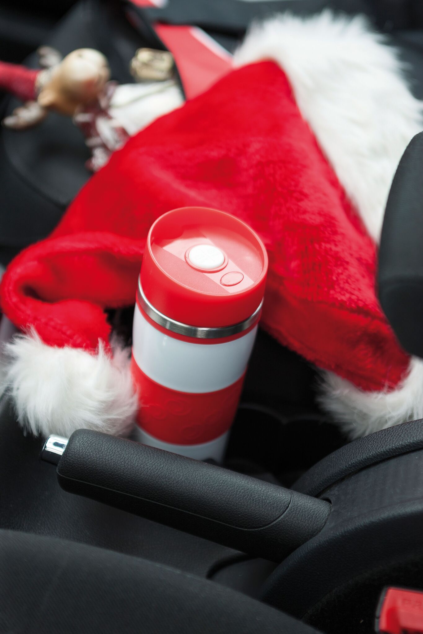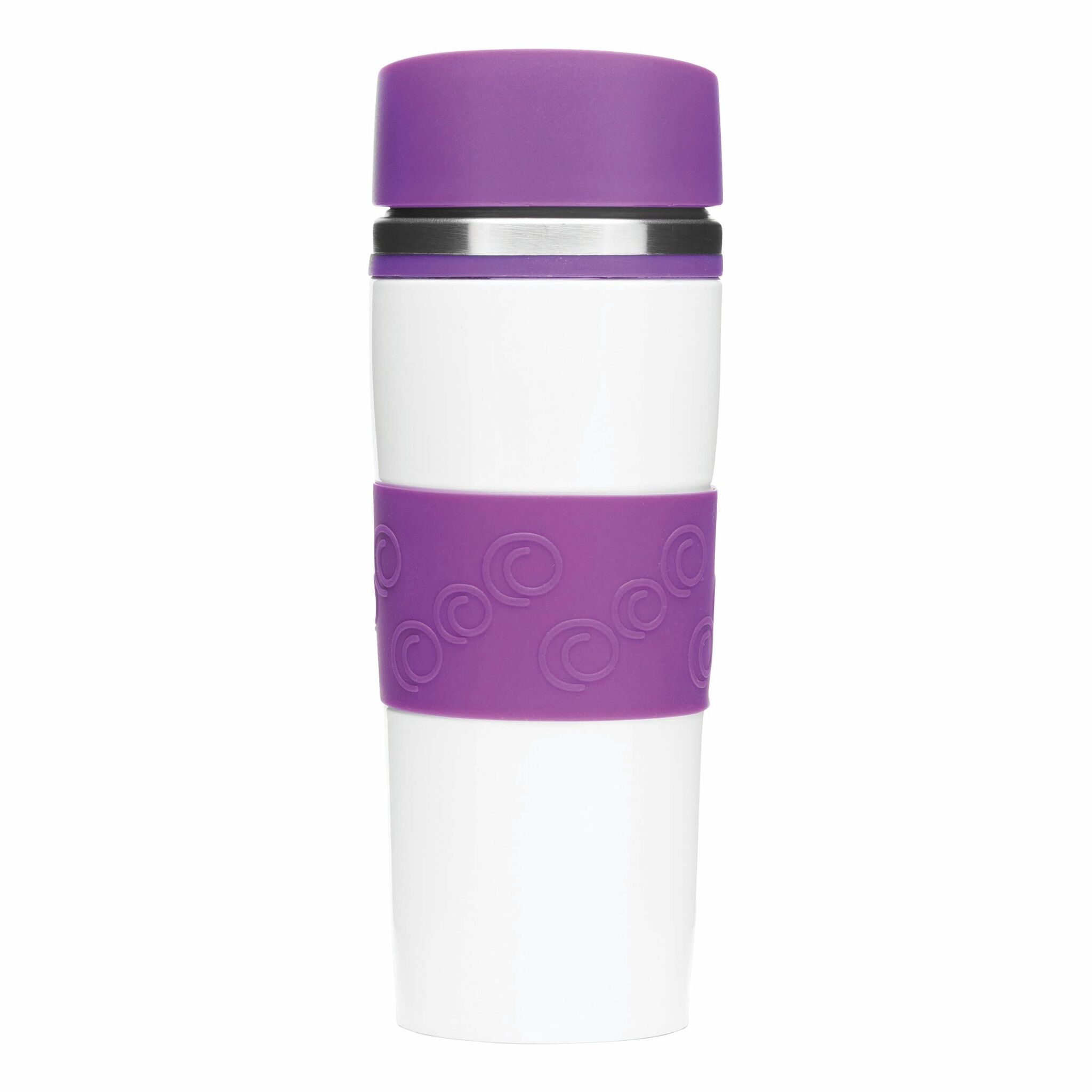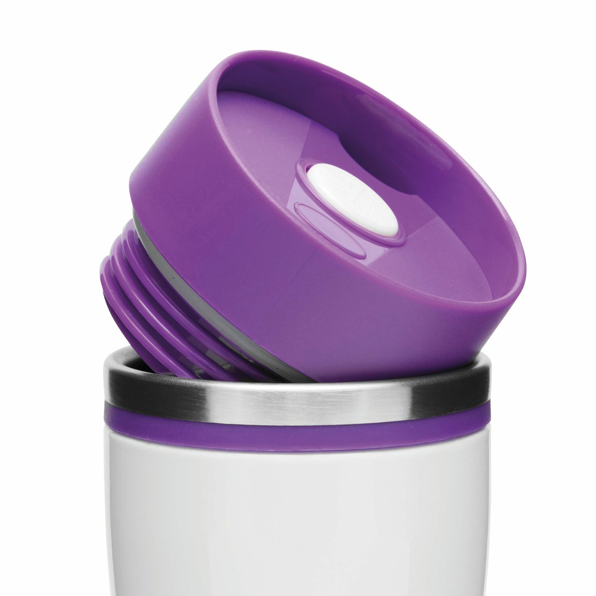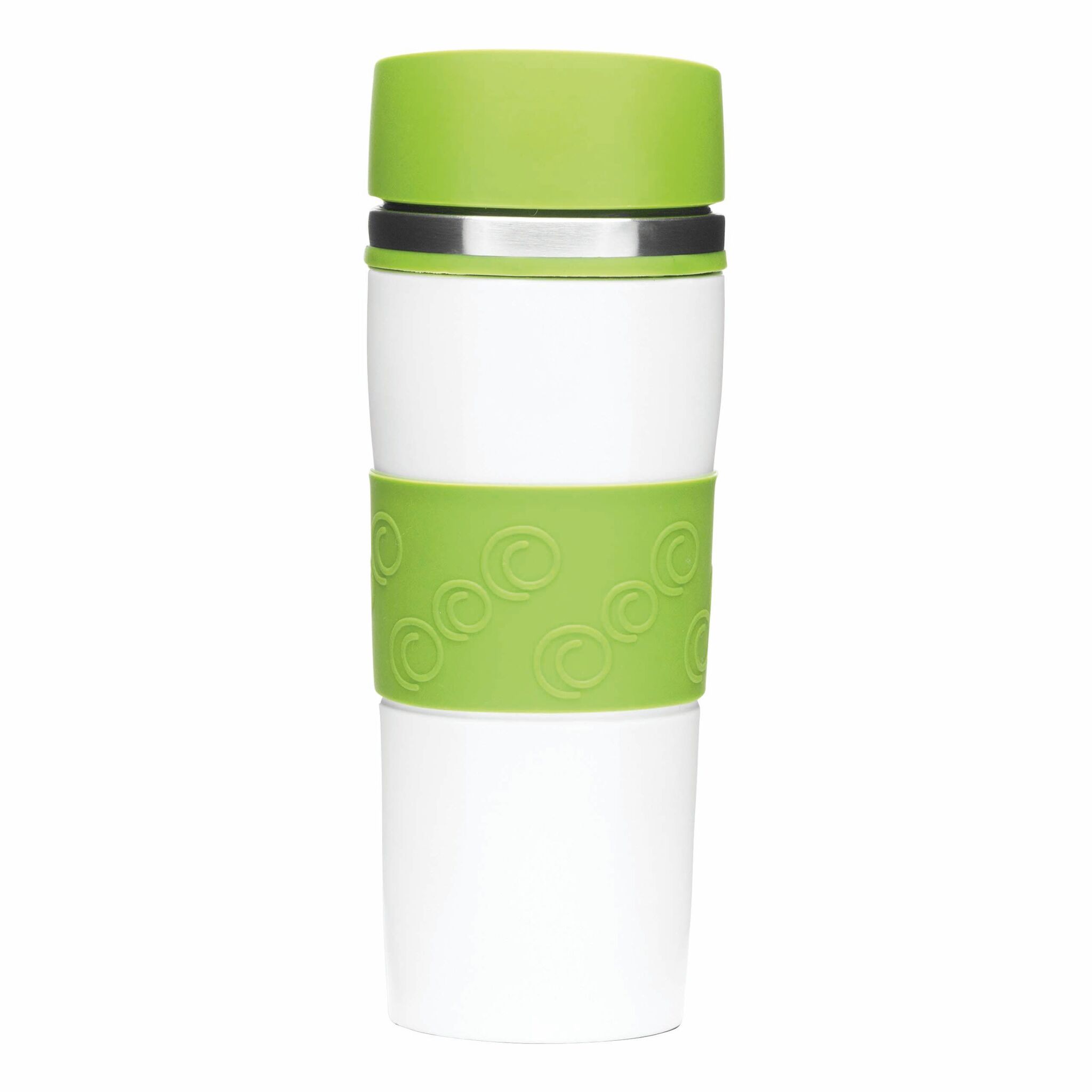 Термо кружка ARABICA с наружи и из нутри нержавеющая сталь, цветная откручивающаяся крышка, кнопка OPEN/CLOSE и отверстие для питья, цветной, силиконовый ободок и прорезиненное дно, объём 400 мл.