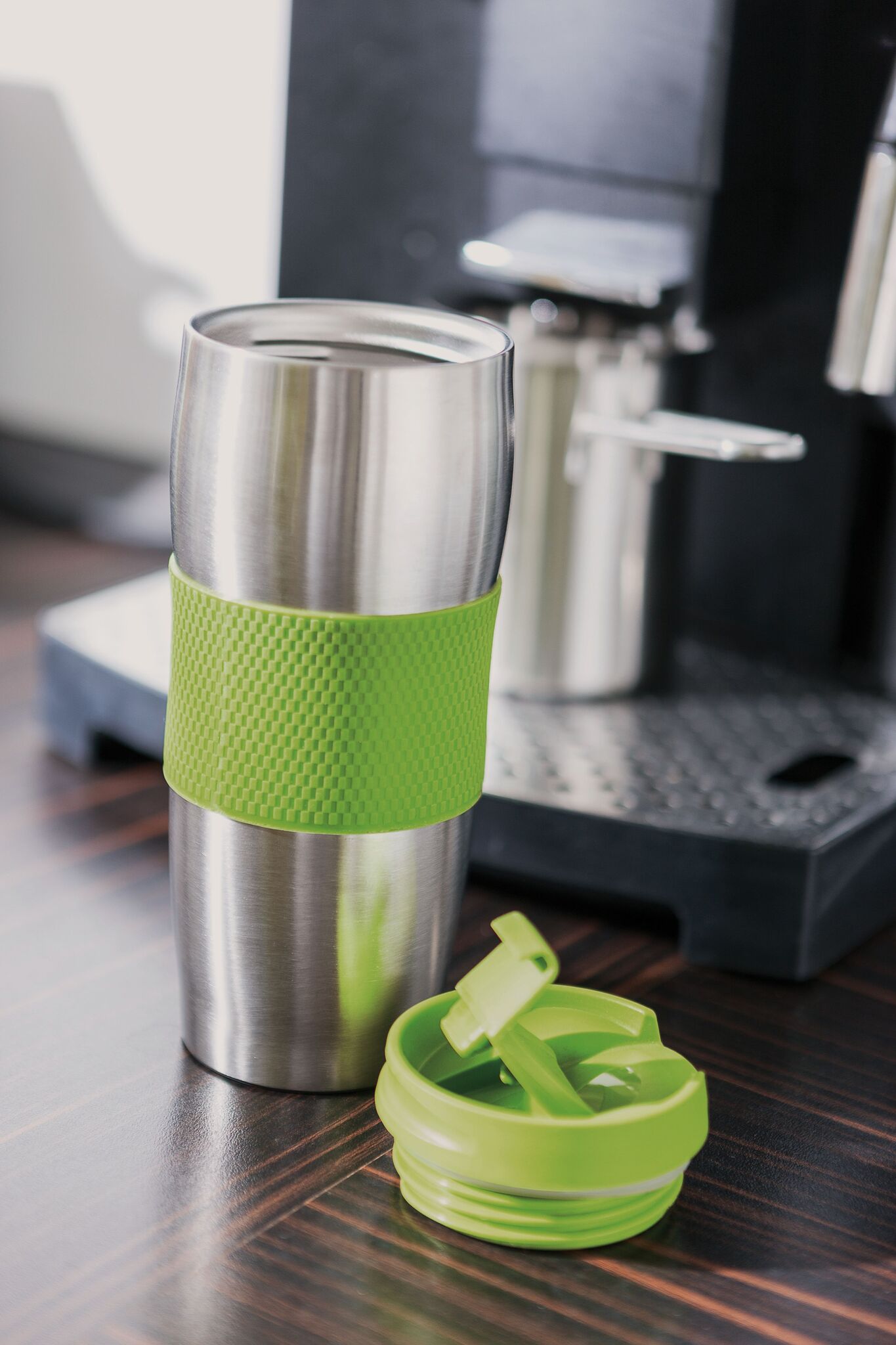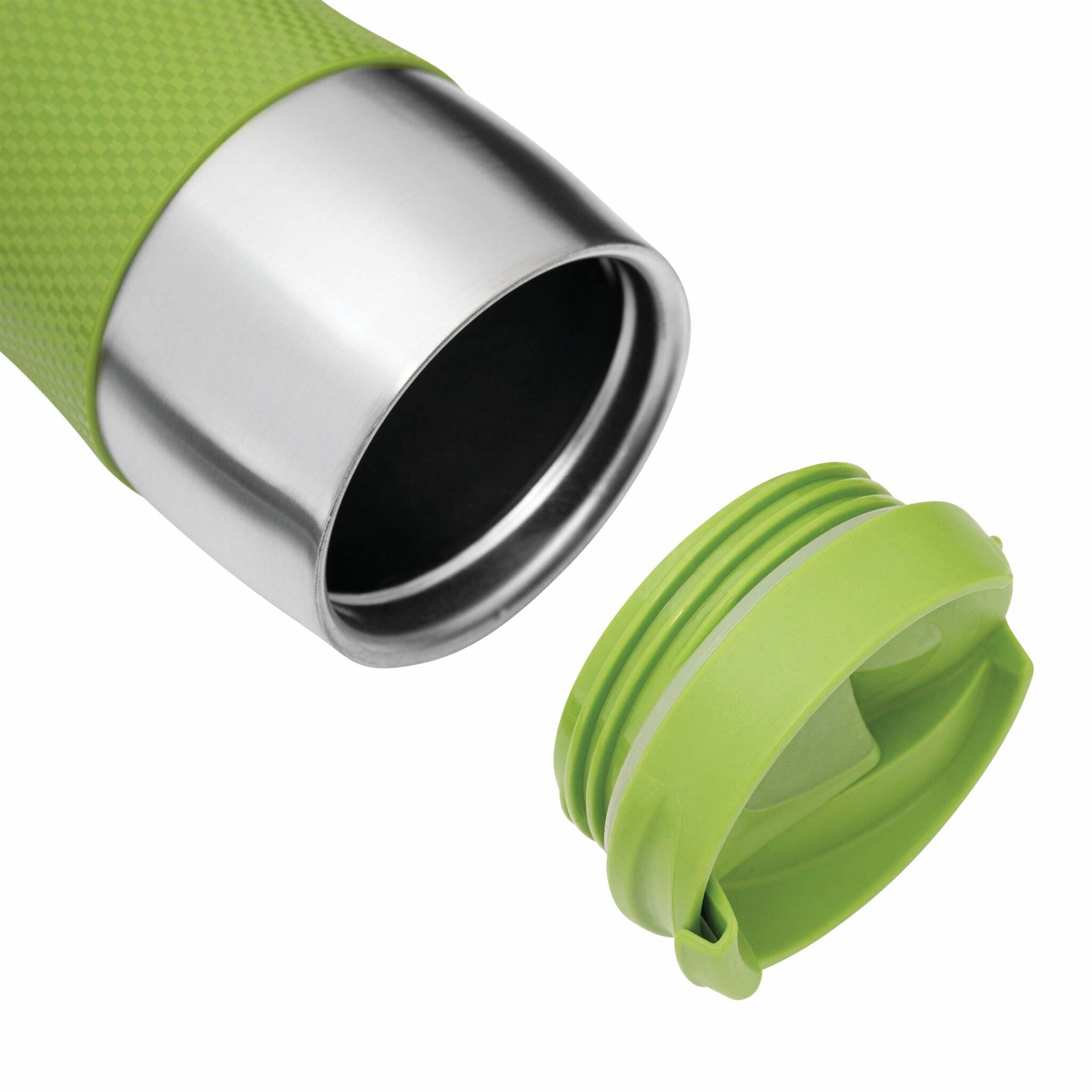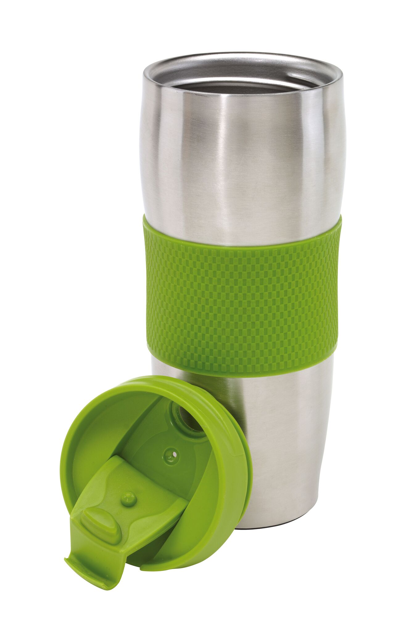 Термо кружка AU LAIT изготовлен из нержавеющей стали (внутри и снаружи), откручивающаяся крышка разных цветов с отверстием для питья, цветная пластмассовая ручка и резиновая подставка для лучшей устойчивости, объём ок. 380 мл., запакован в коробку
