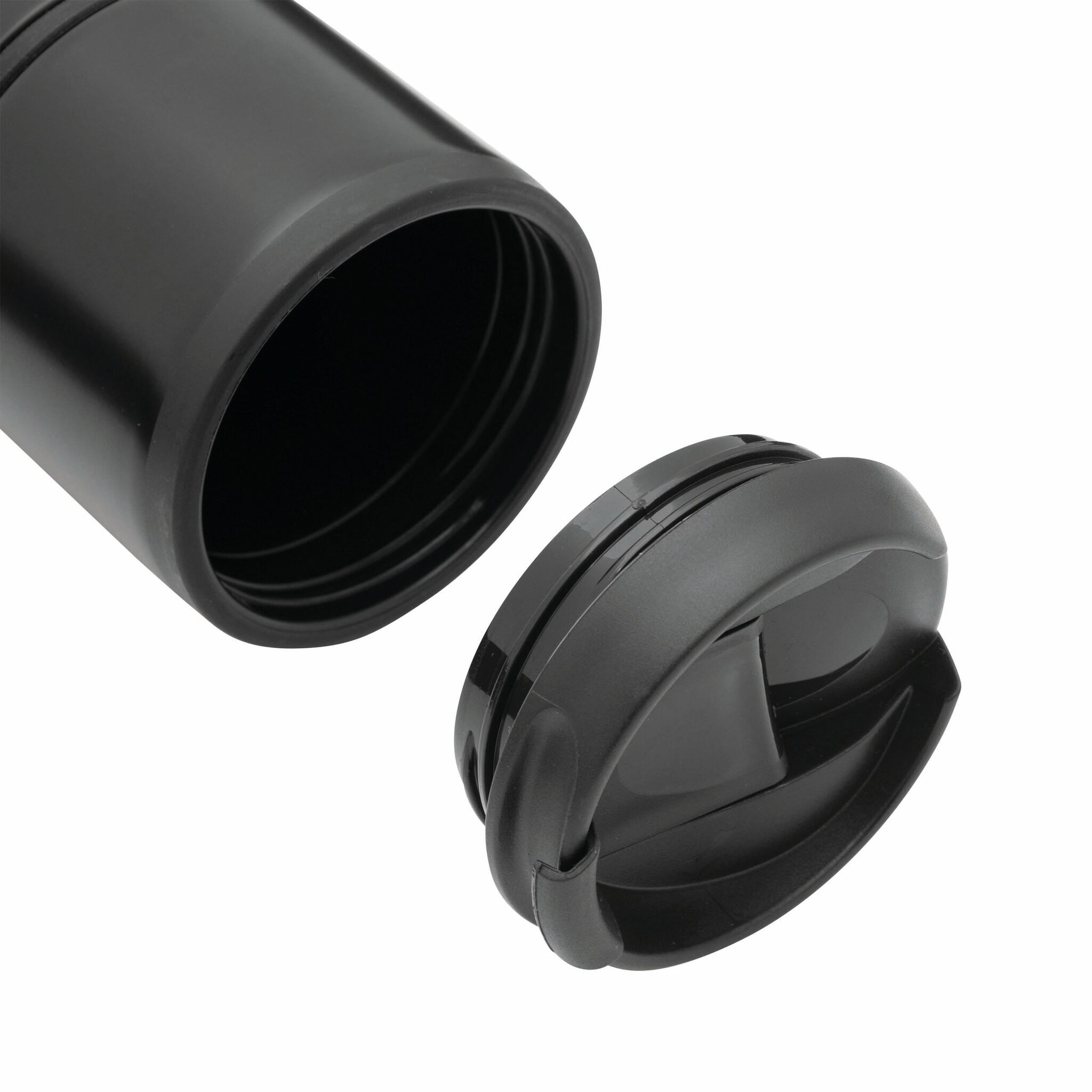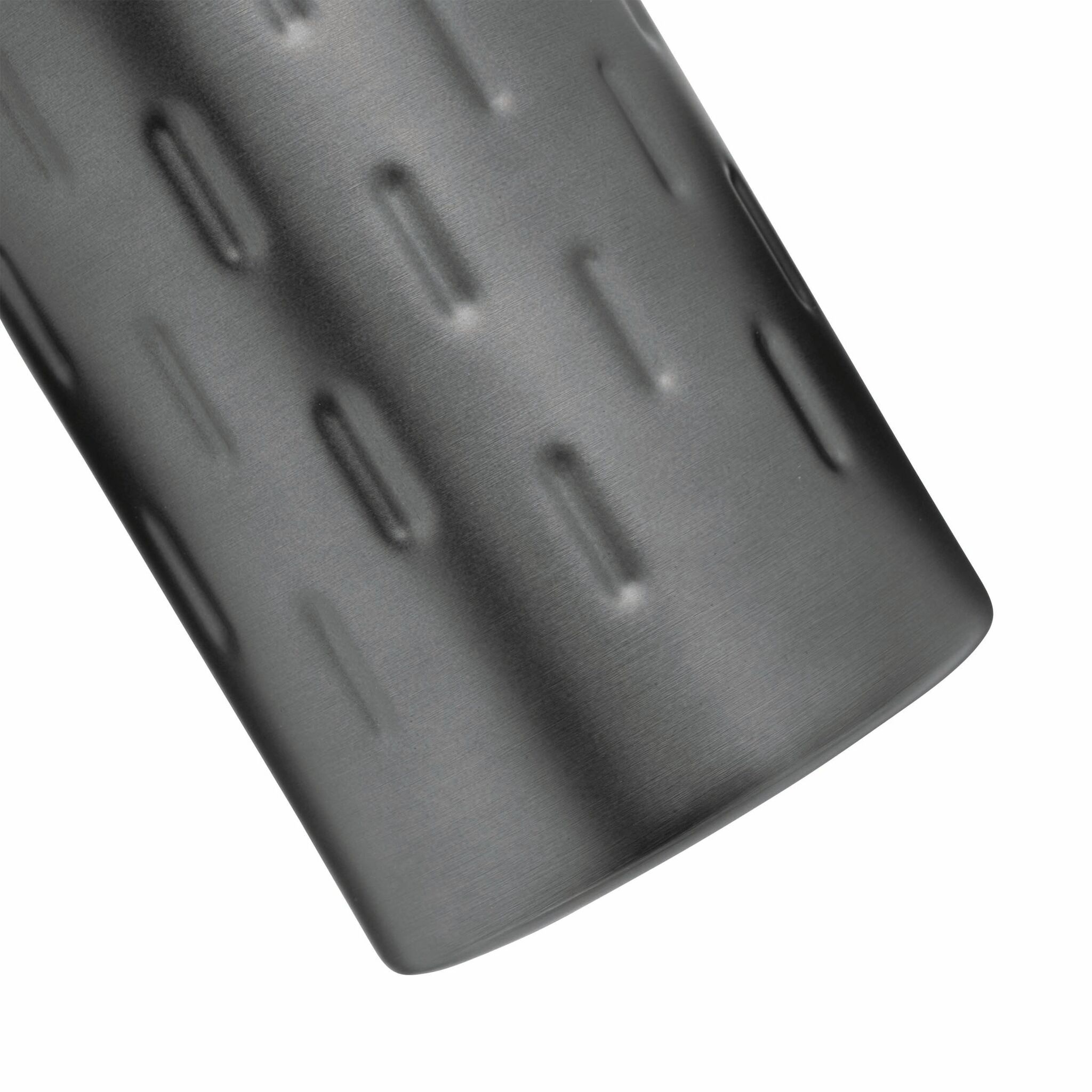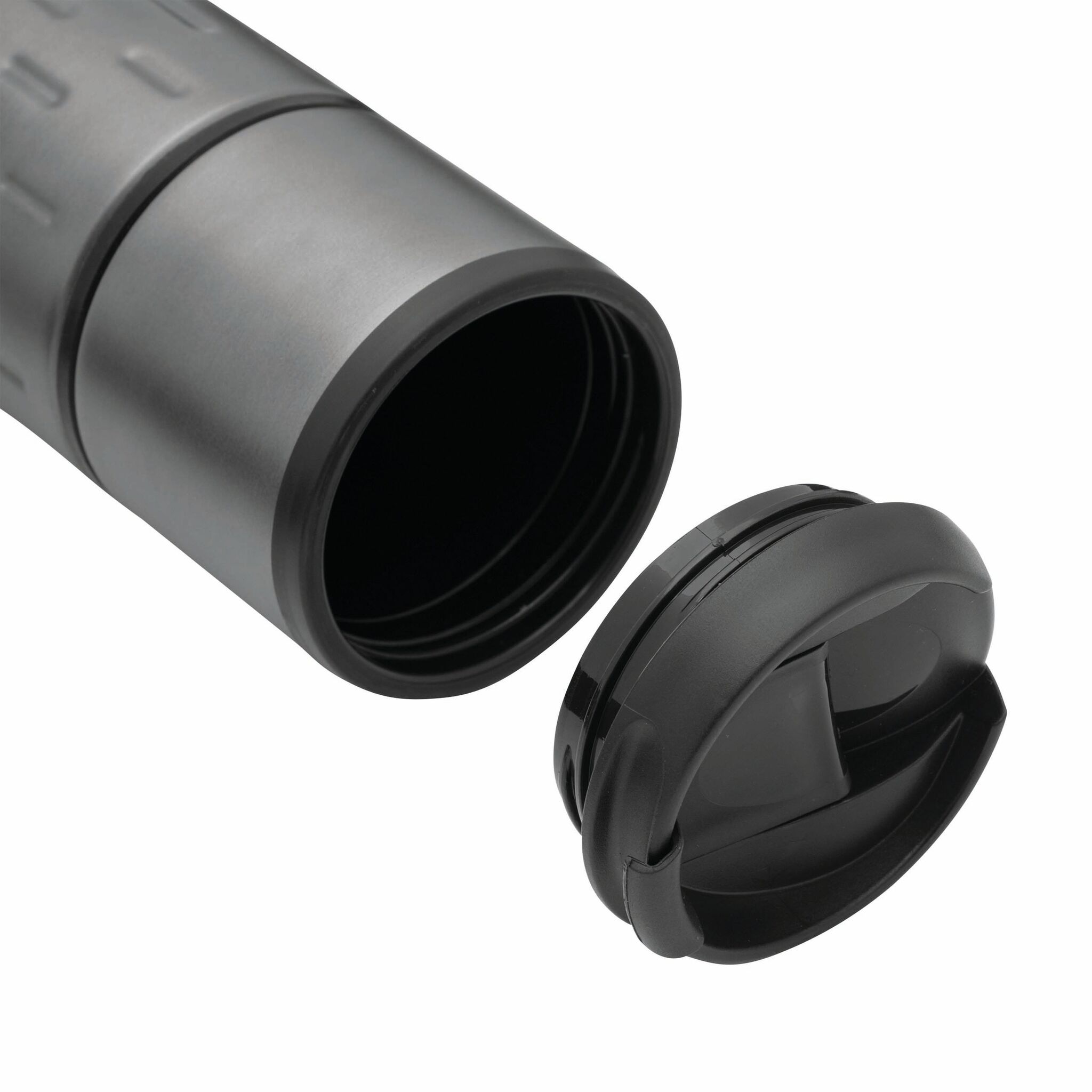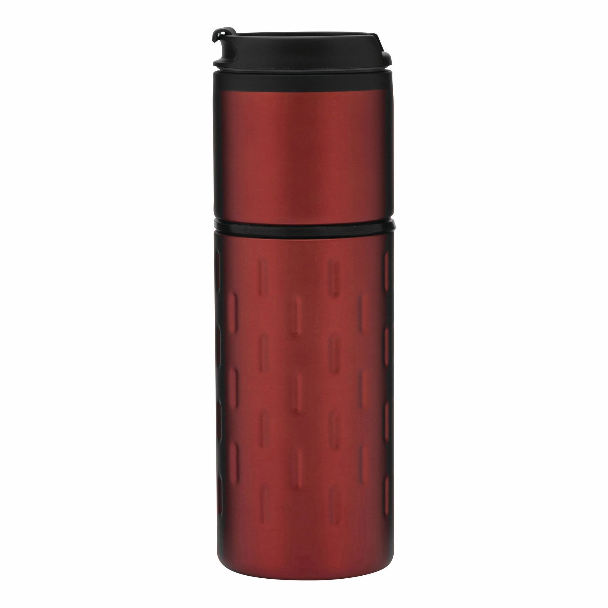 Термо кружка с дшойными EXCLUSIVE LIQUID снаружи из нержавеющей стали с футуристическим дизайном с цветным силиконовым, внутри пластик; съемная пластиковая крышка со складным отверстием для питья, прорезинена с низу для лучшего сцепления, объём ок. 400 мл.
