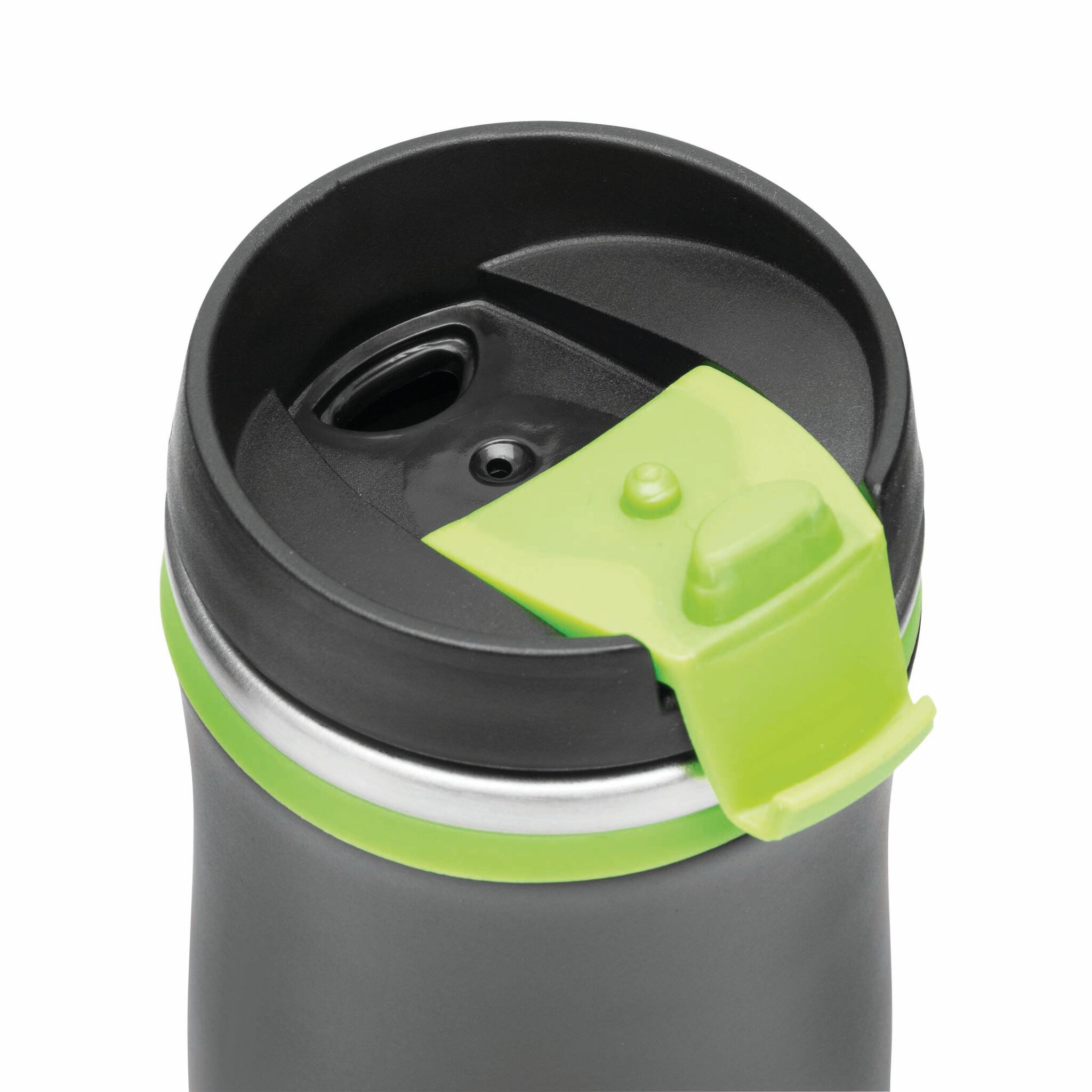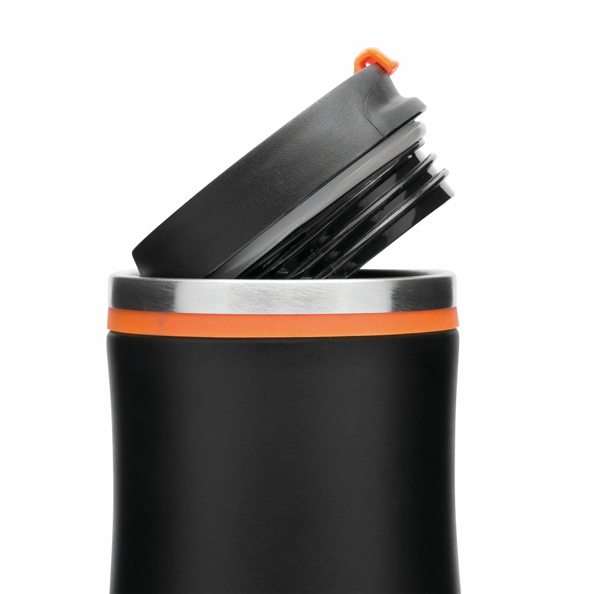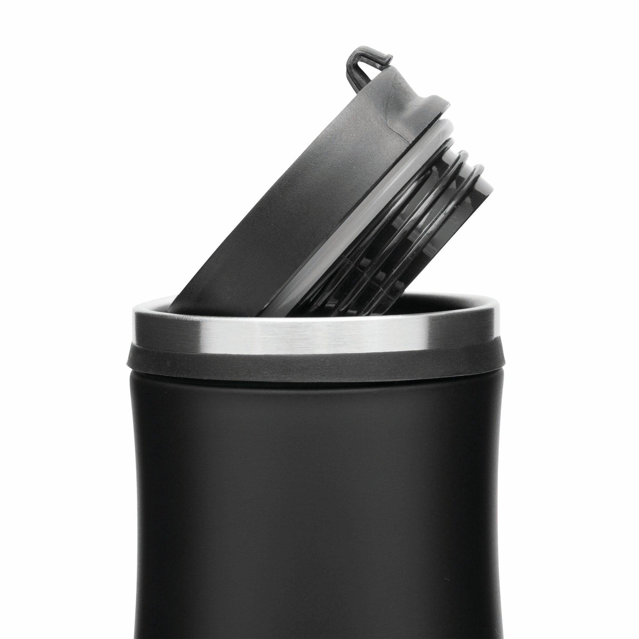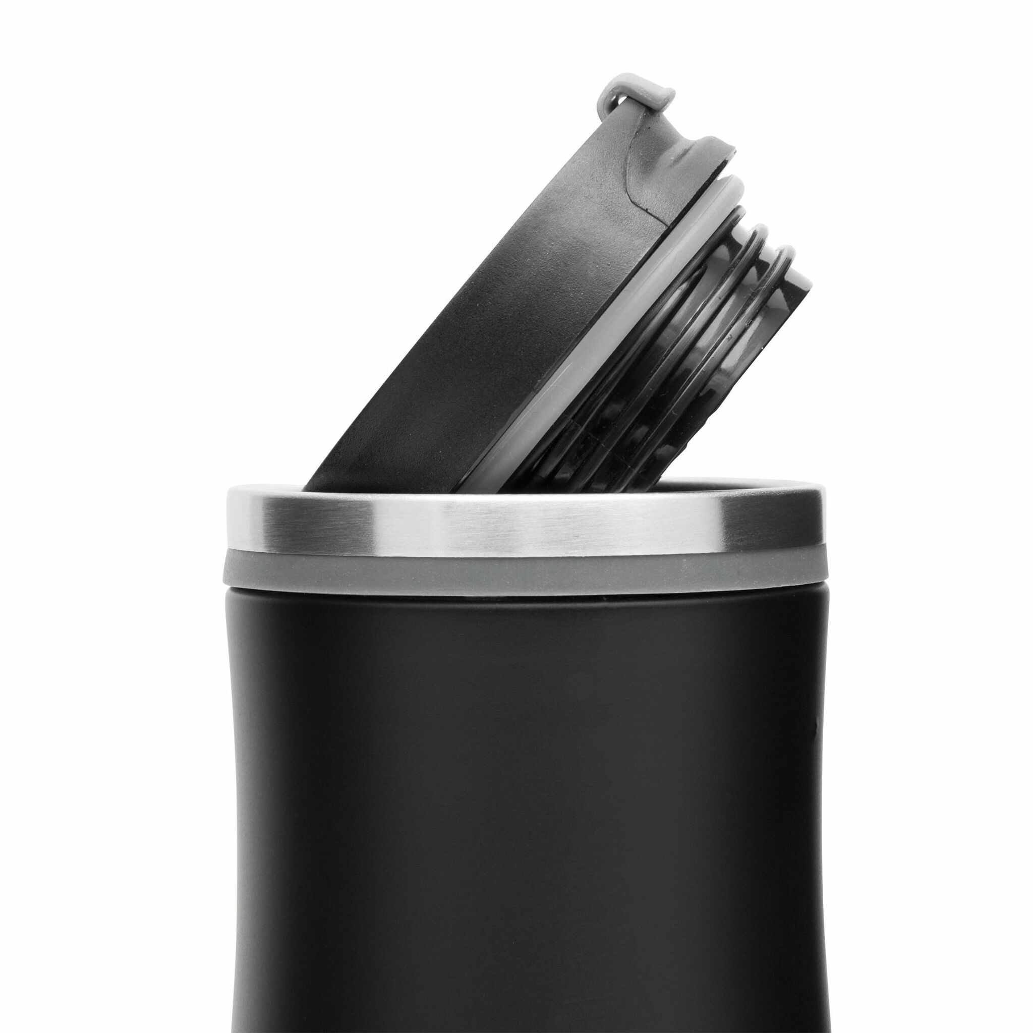Термо кружка с двойными стенками DARK CREMA внутри и снаружи из нержавеющей стали, съемная пластиковая крышка с открываящимся отверстием для питья, цветное резиновое кольцо вокруг отверстия и прорезиненная нижняя часть для улучшения адгезии, прибл. 400 мл.