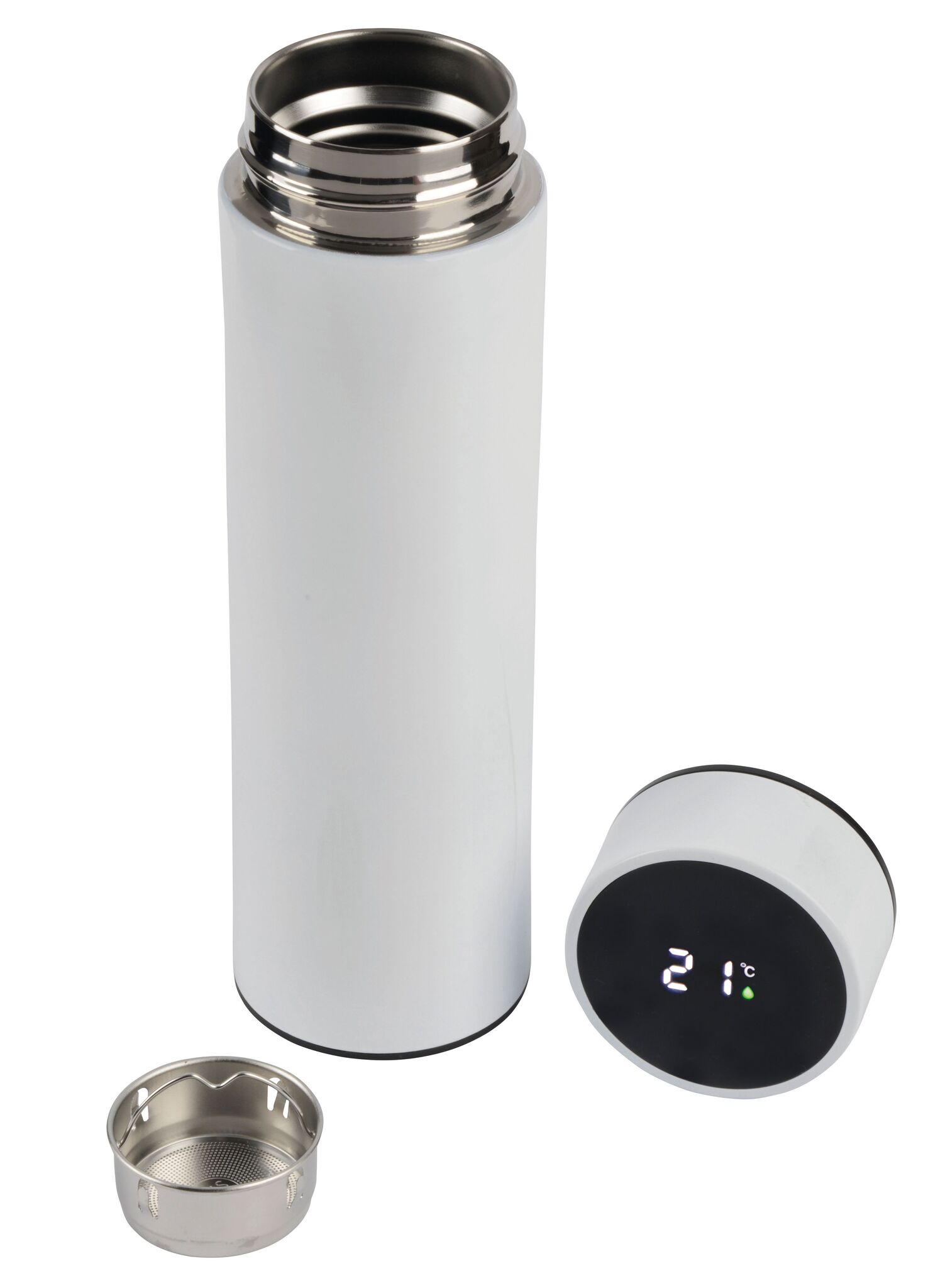 Термос EXQUISITE с двойными стенками : внутри и снаружи изготовлен из нержавеющей стали, закручивающаяся крышка с цифровым термометром, съемное ситечко для чая, объем ок. 500 ml