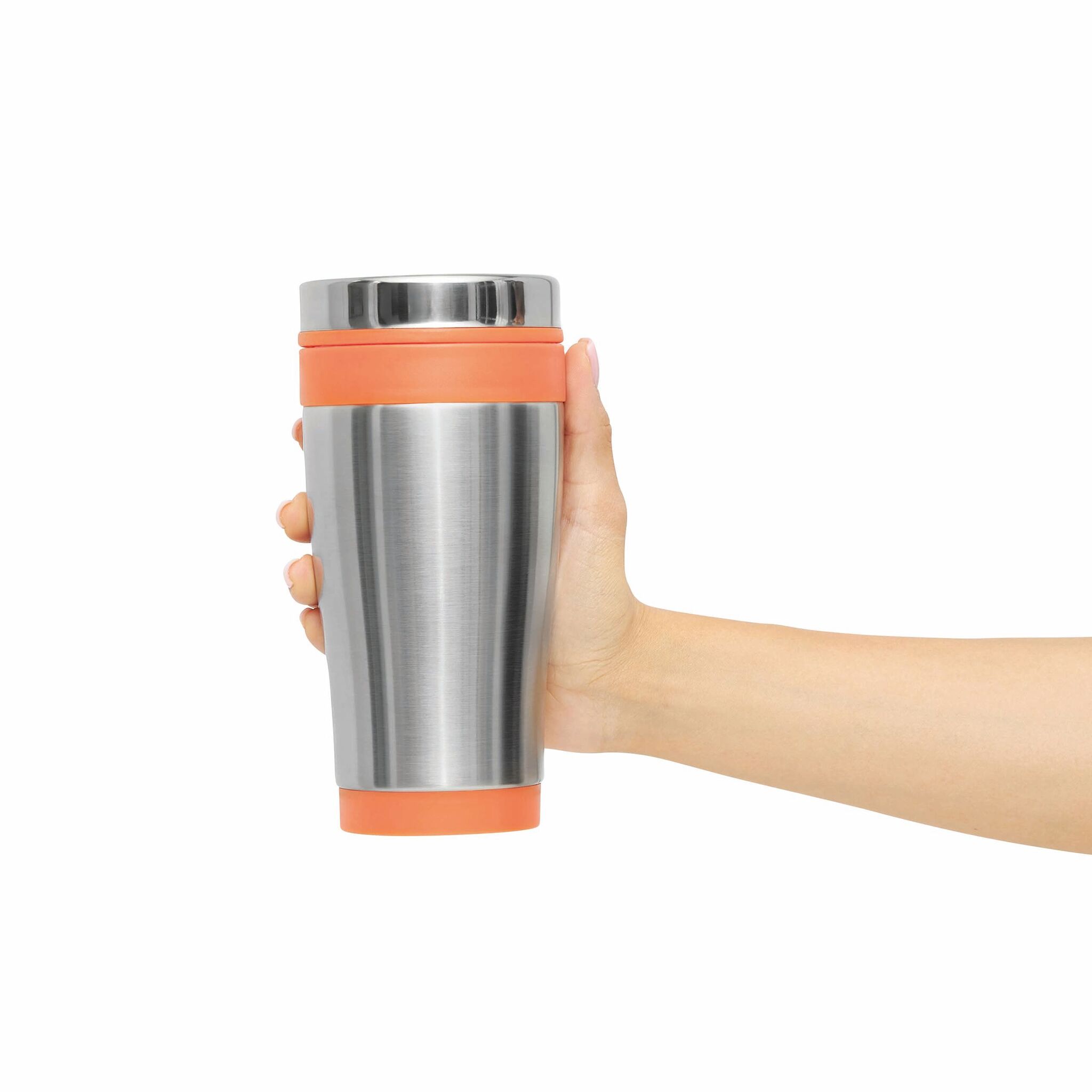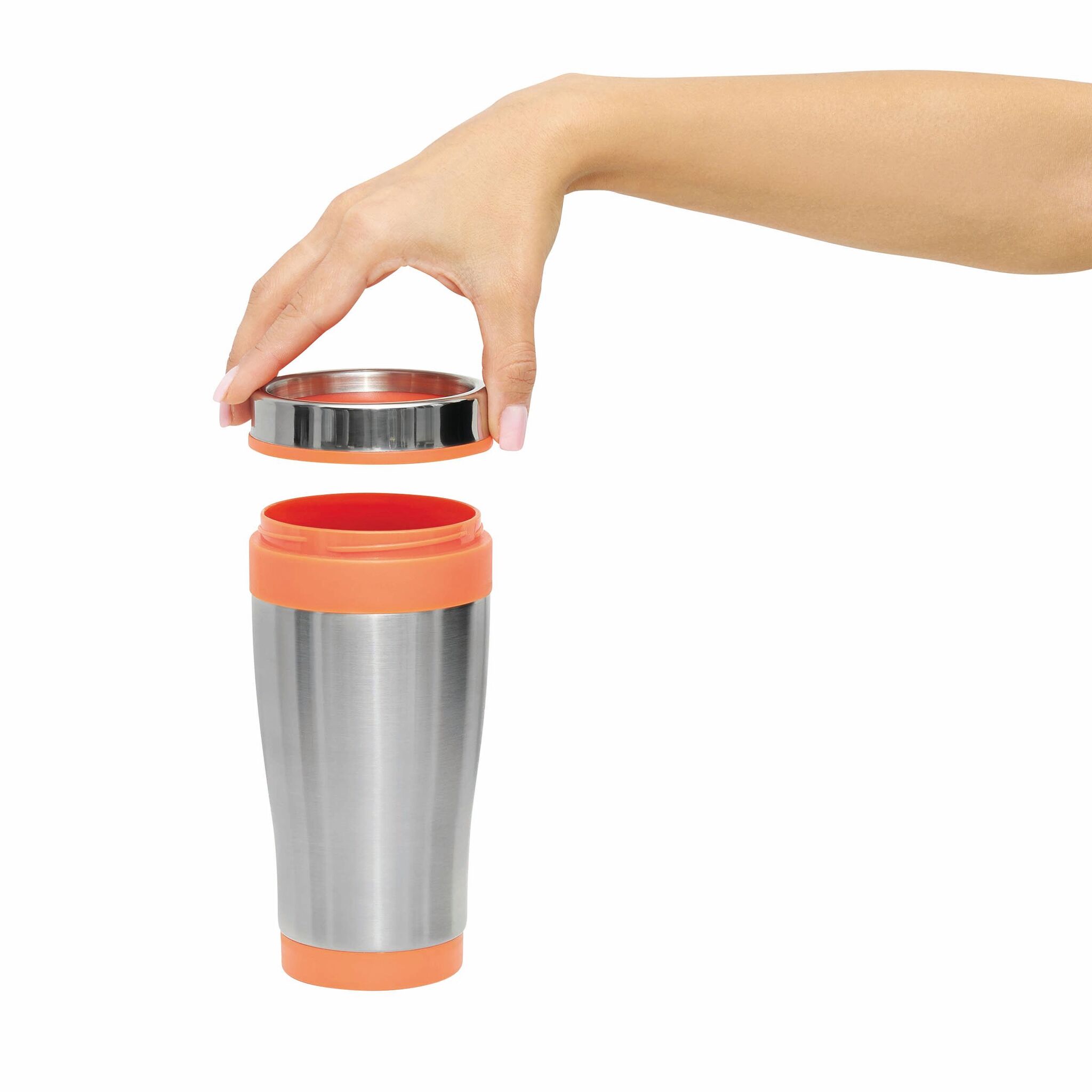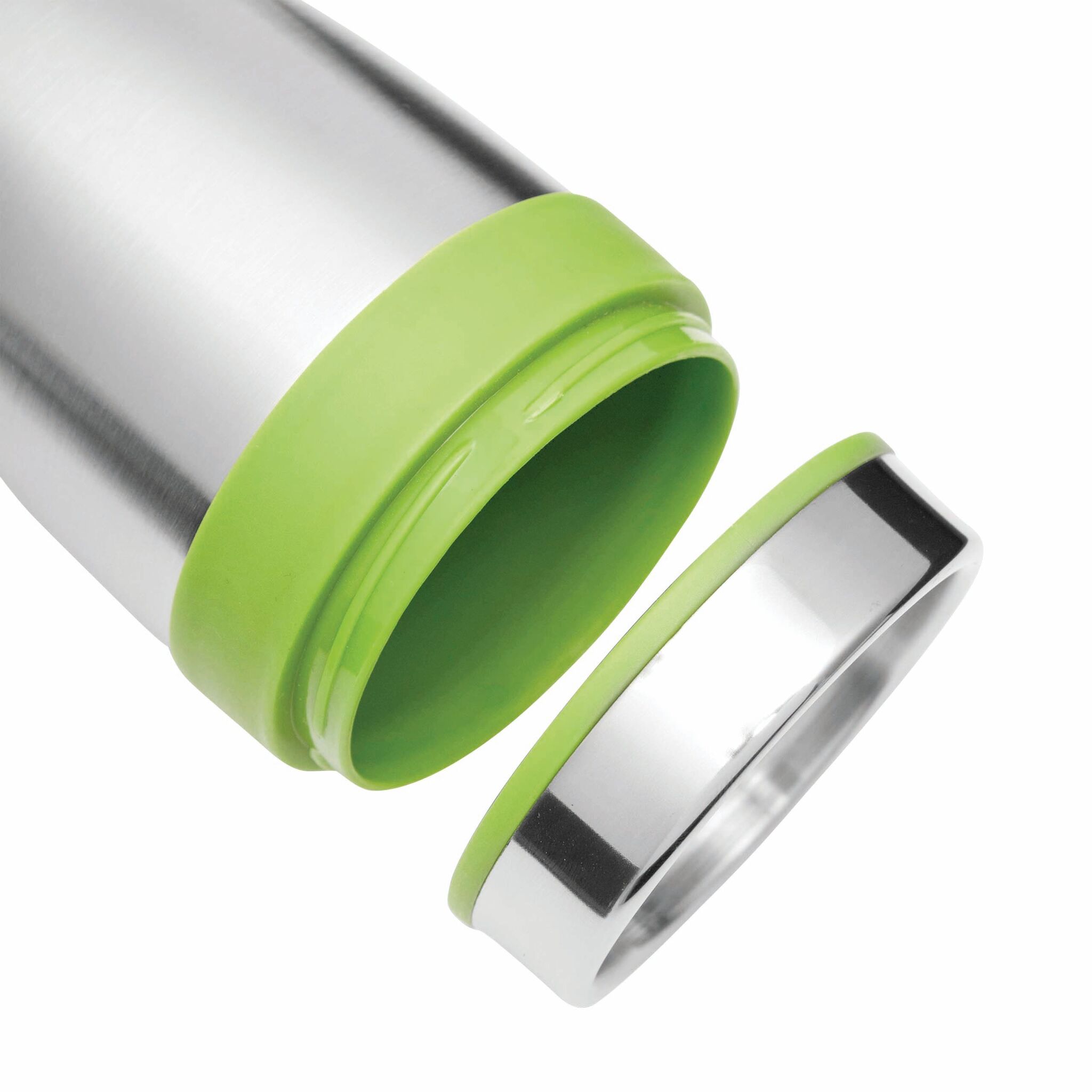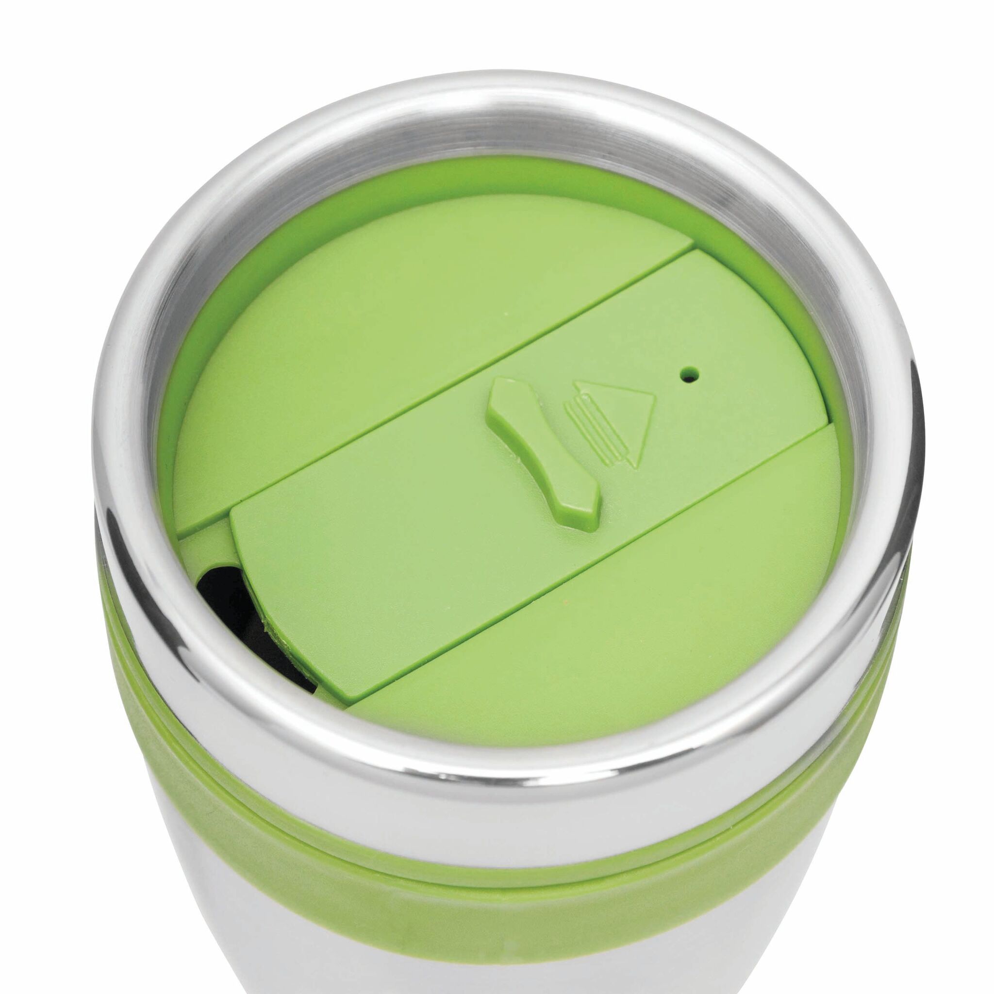 Термос-кружка LUNGO , с двойной стенкой из нержавеющей стали снаружи и пластика внутри: плотно закручивающаяся крышка с закрывающимся отверстием для питья, с цветной пластиковой окантовкой, ёмкость 400 мл