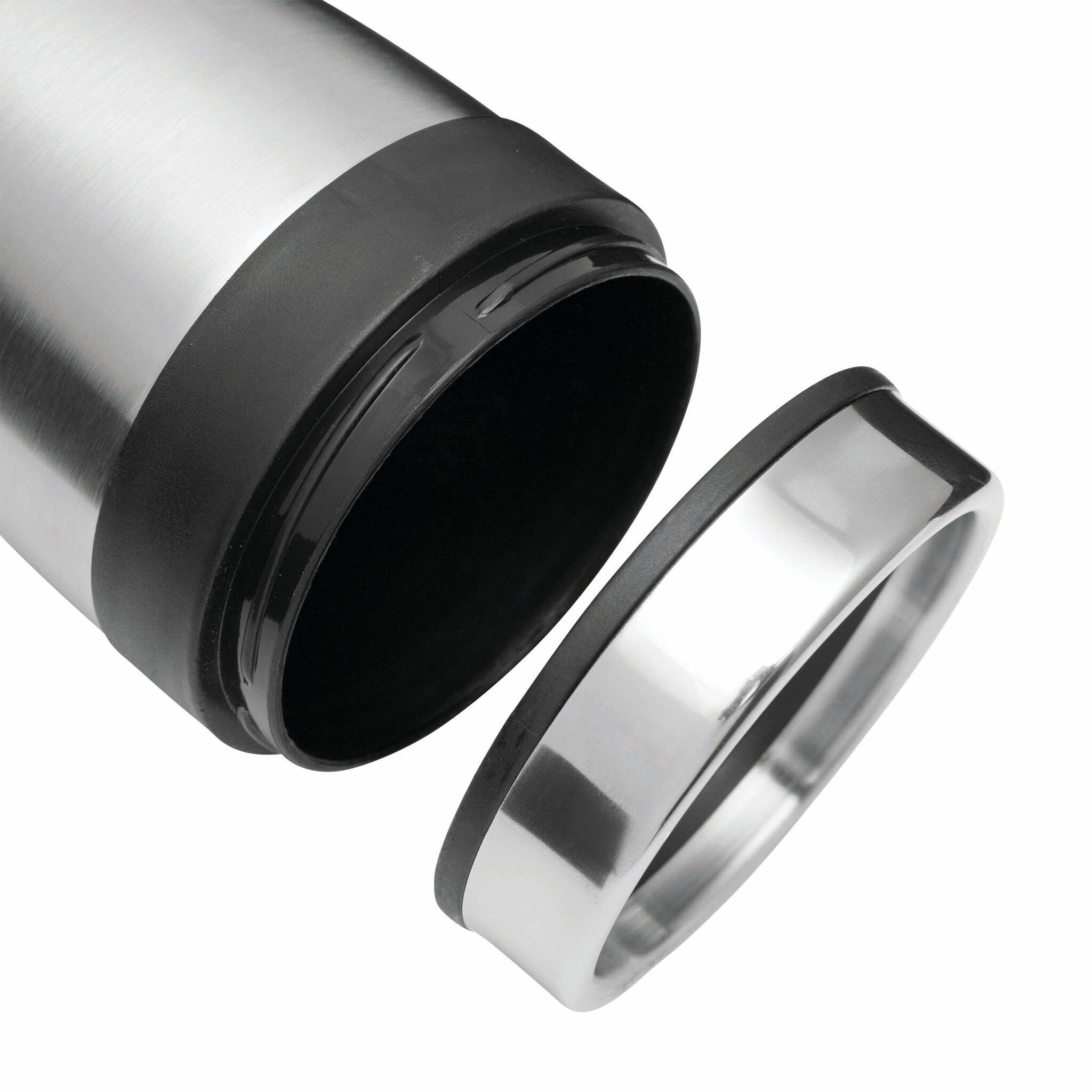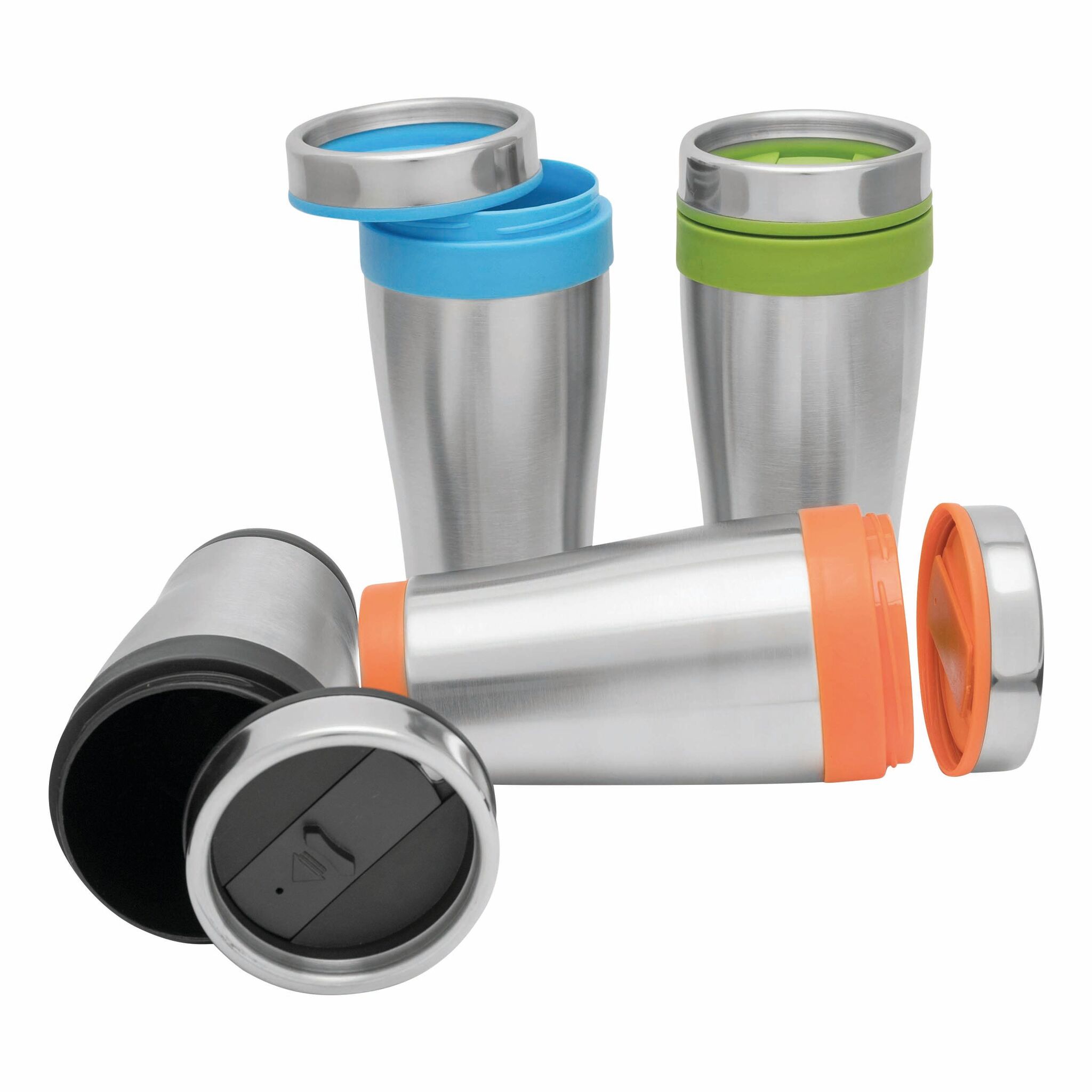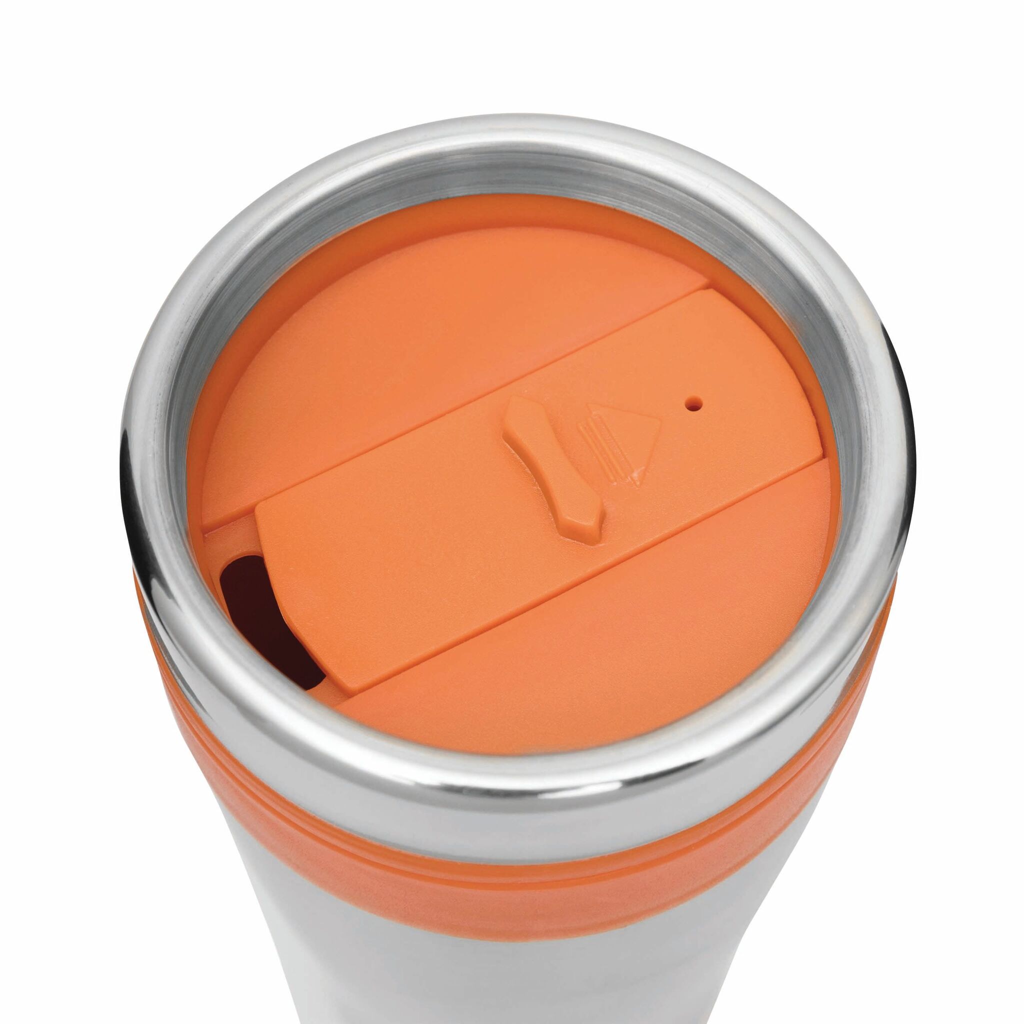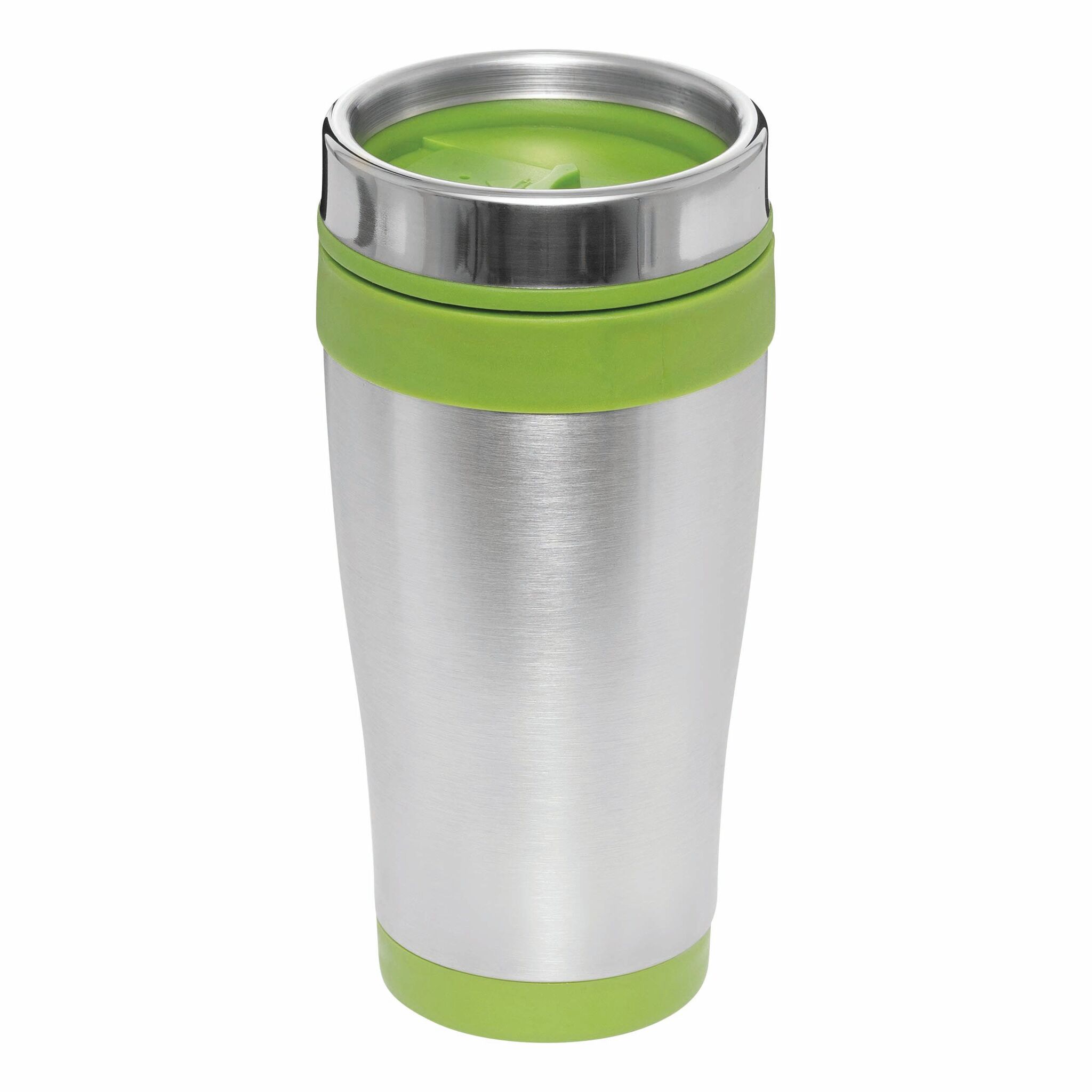 Термос-кружка LUNGO , с двойной стенкой из нержавеющей стали снаружи и пластика внутри: плотно закручивающаяся крышка с закрывающимся отверстием для питья, с цветной пластиковой окантовкой, ёмкость 400 мл