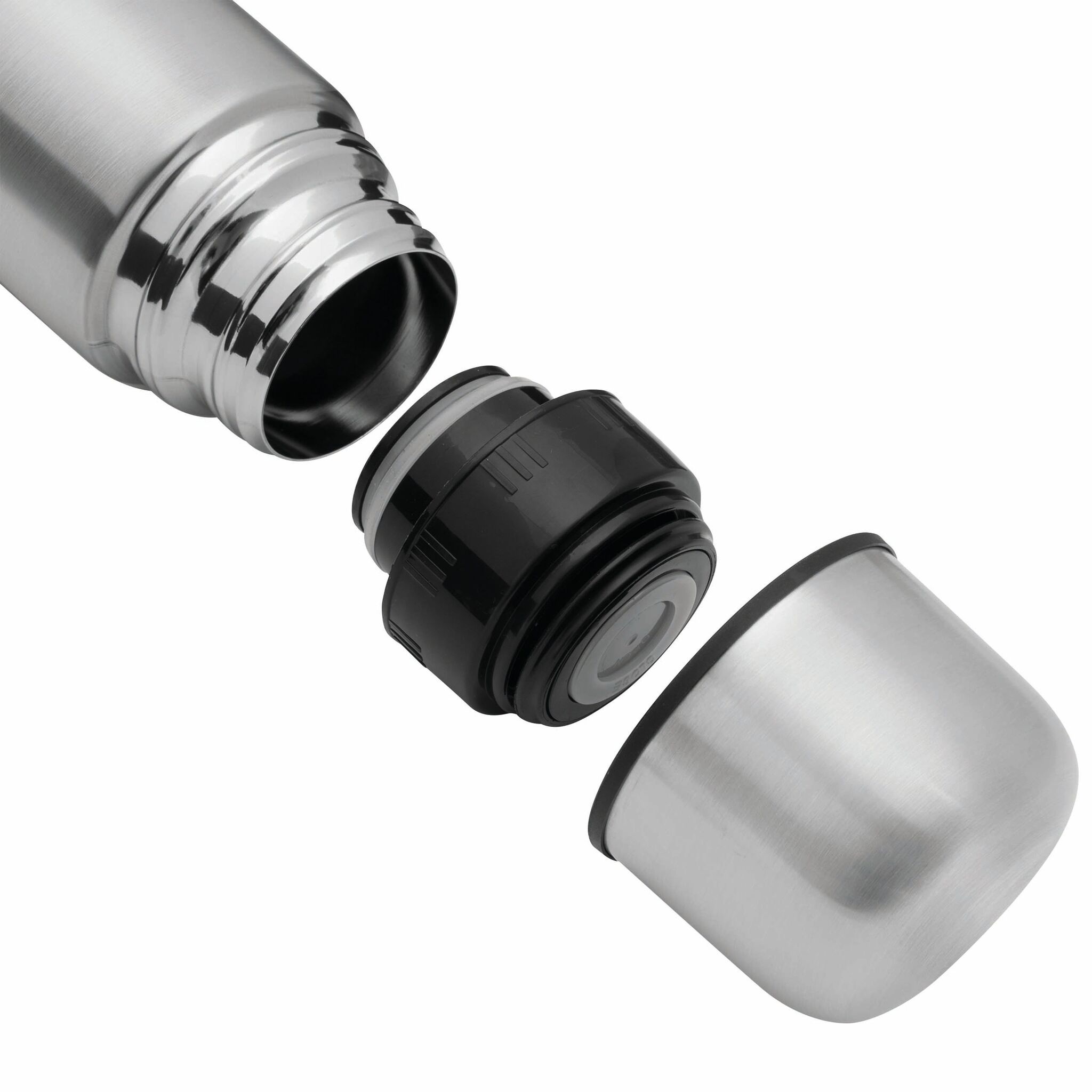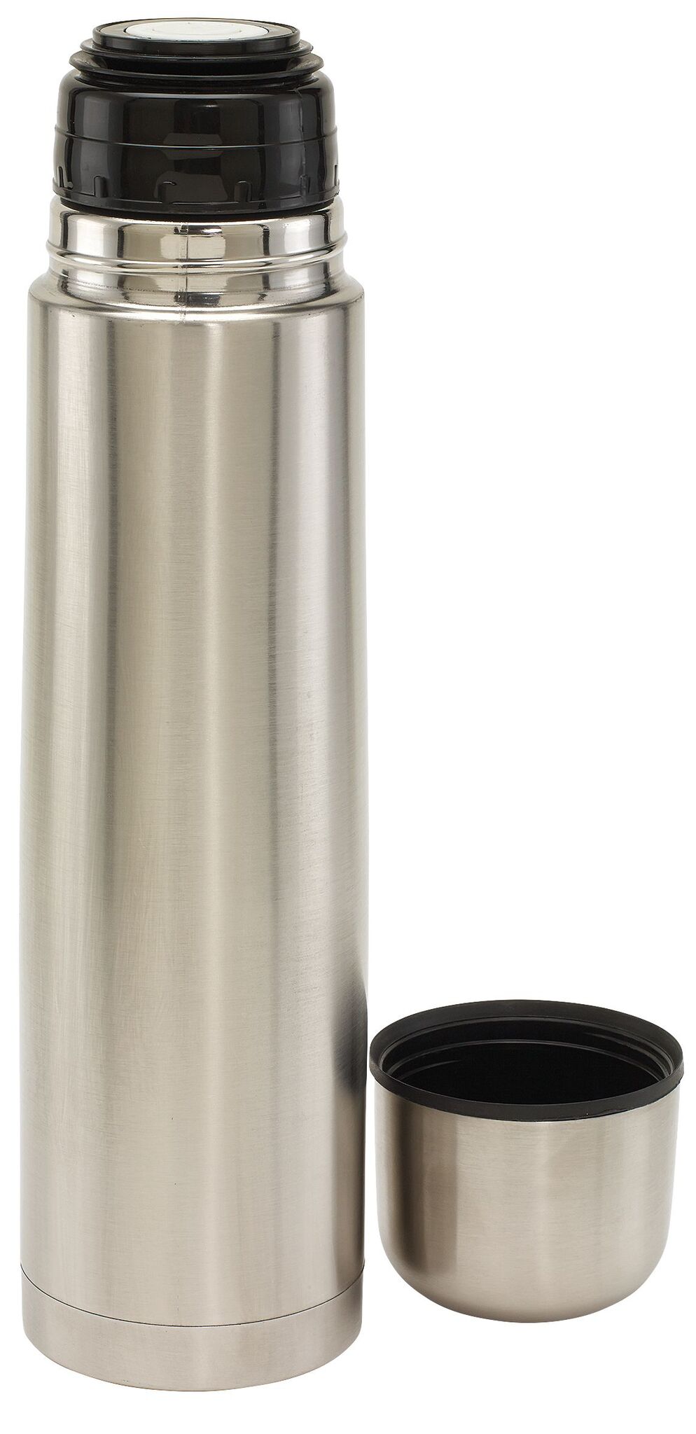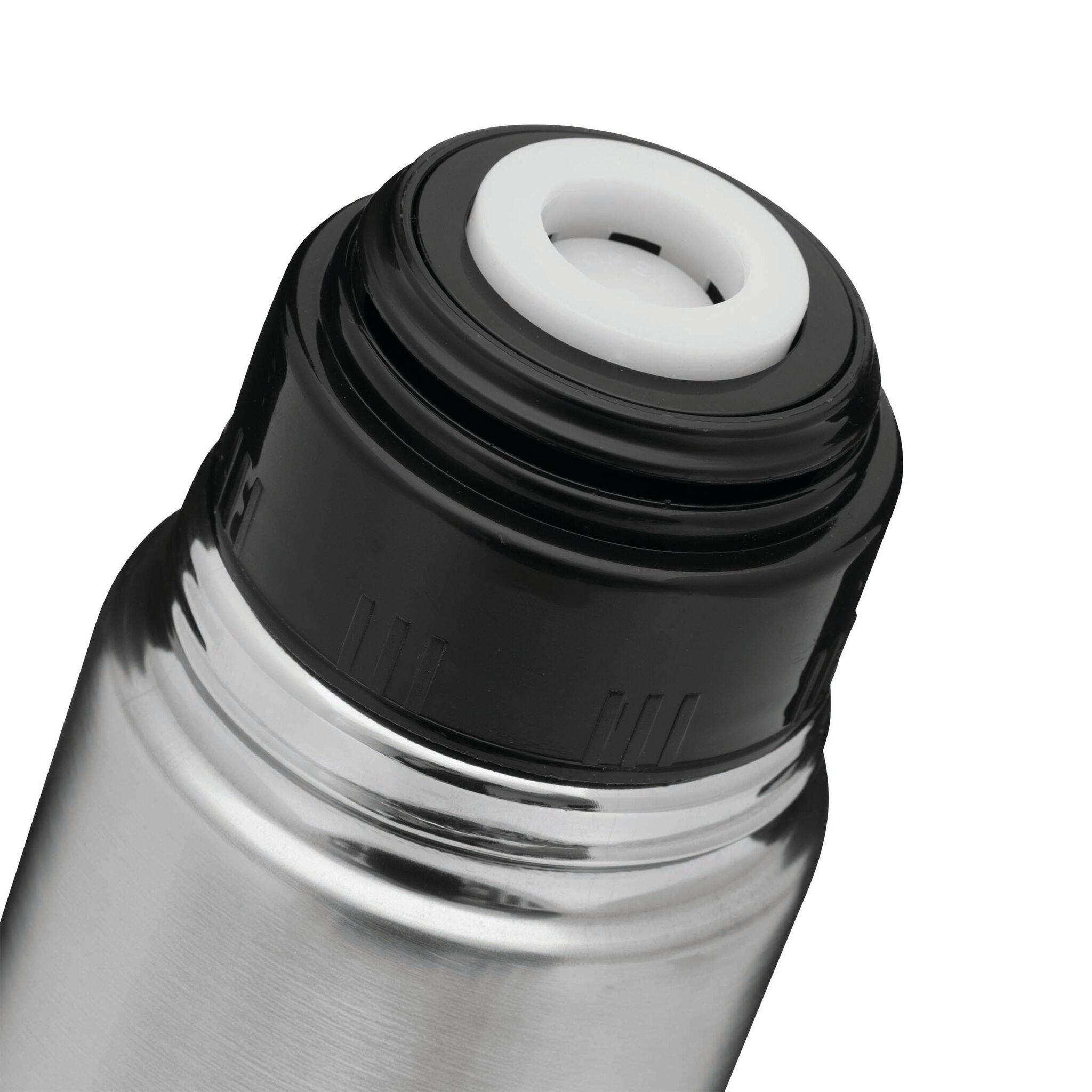 Термос с двойными стенками WARM SOUL L внутри и снаружи из нержавеющей стали, крышка (внутри пластиковая), которую можно использовать в качестве стаканчика, пластиковая, откручивающаяся пробка с кнопкой, объём ок. 1 литр, упакован в коробку.