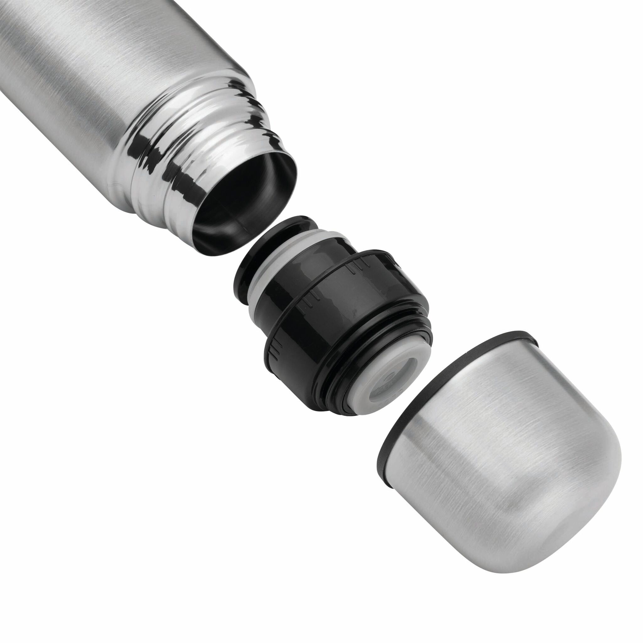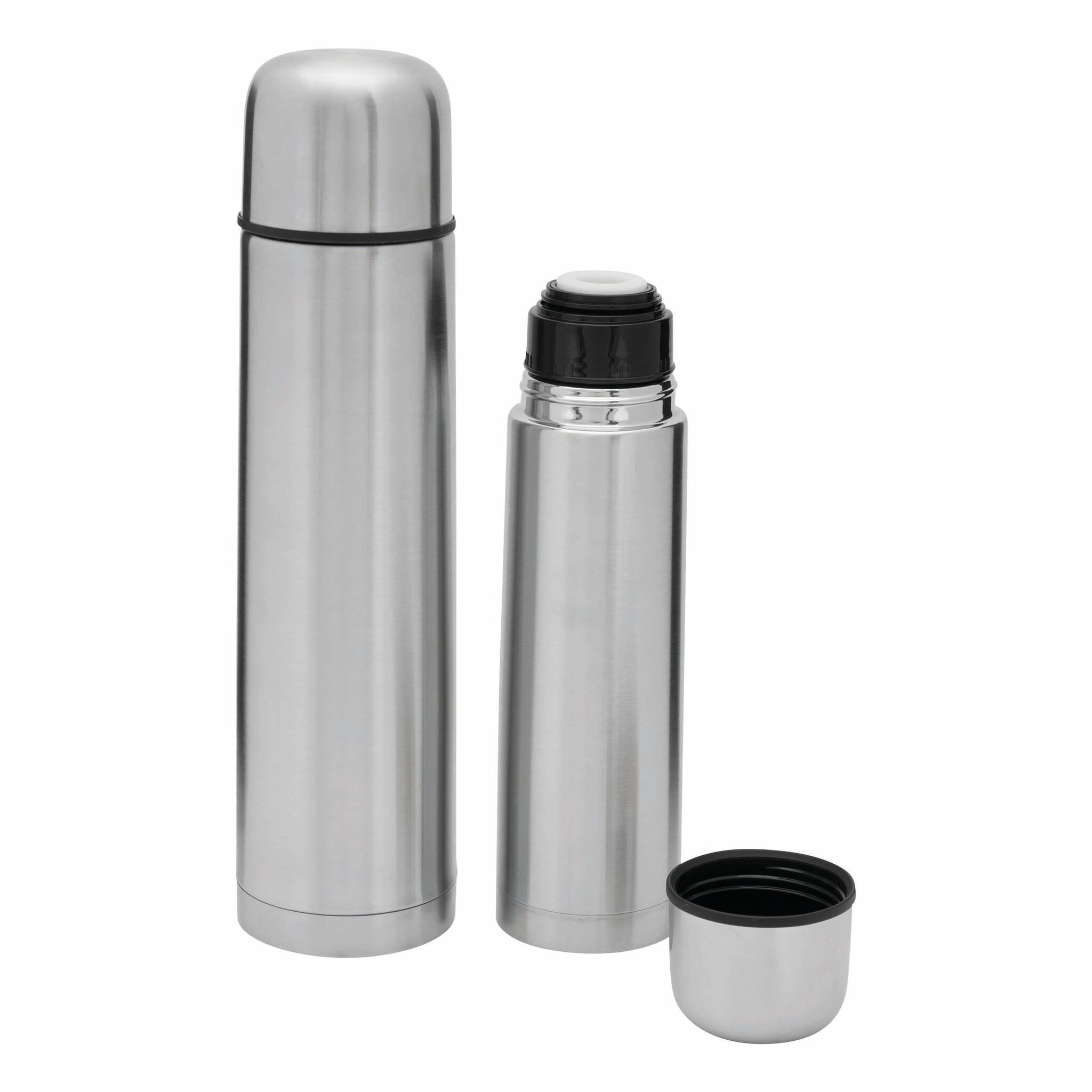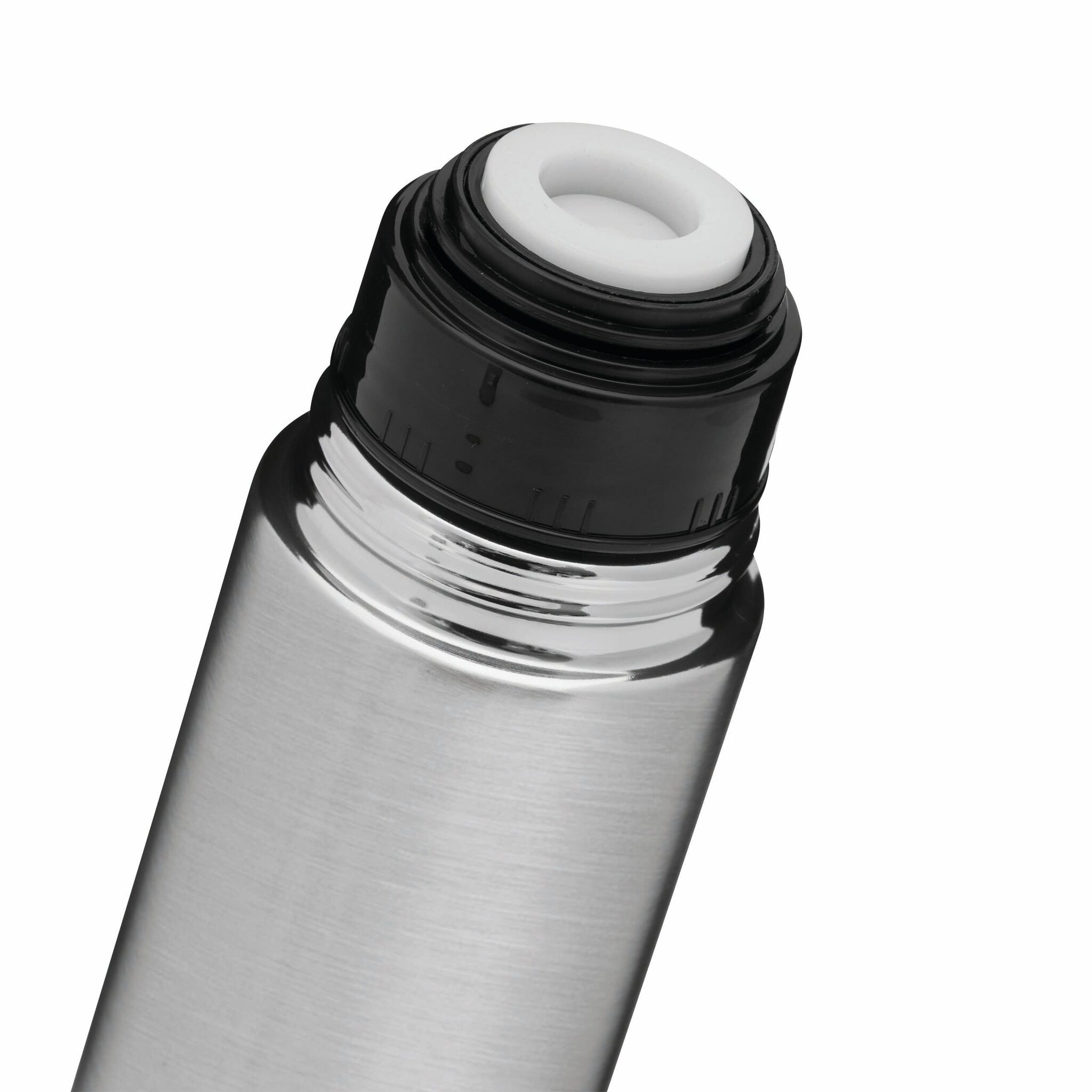 Термос с двойными стенками WARM SOUL M внутри и снаружи из нержавеющей стали, крышка (внутри пластиковая), которую можно использовать в качестве стаканчика, пластиковая, откручивающаяся пробка с кнопкой, объём ок. 500 мл, упакован в коробку.