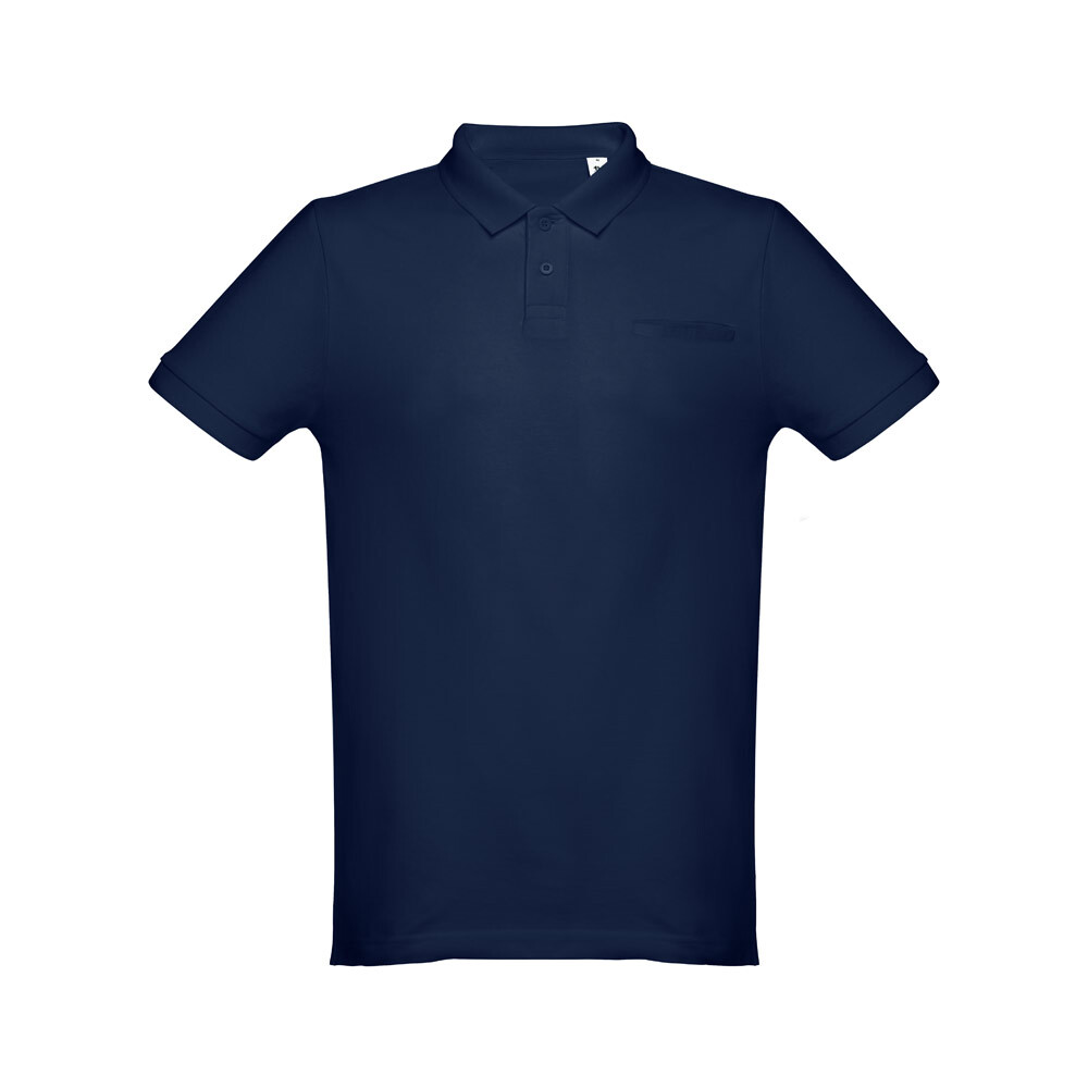 Мужское поло с короткими рукавами из 100% хлопка-кардигана (195 г/м²) (цвет 183: 85% хлопок/15% вискоза). Ребристый воротник и рукава, воротник усилен тесьмой пике. Усиленная планка с 2 пуговицами в тон (запасная пуговица вставлена во внутренний шов). Современный крой с простым карманом на груди. Покрой и прошив с небольшими боковыми разрезами на нижней части поло. Размеры: S, M, L, XL, XXL