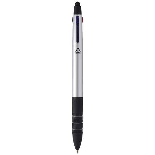 Шариковая ручка Trine «3 в 1» — это универсальный пишущий инструмент, изготовленный из сертифицированного RCS пластика ABS с современным металлическим покрытием и встроенным стилусом для использования с сенсорным экраном. Она оснащена нажимно-слайдерным механизмом для легкого переключения между черными, синими и красными чернилами. Эргономичная рукоятка с черной нескользящей резиной и серыми кольцевыми деталями обеспечивает удобство использования. Компактная, функциональная и идеально подходящая для брендинга ручка Trine прекрасно подходит для создания заметок, презентаций и цифрового взаимодействия.