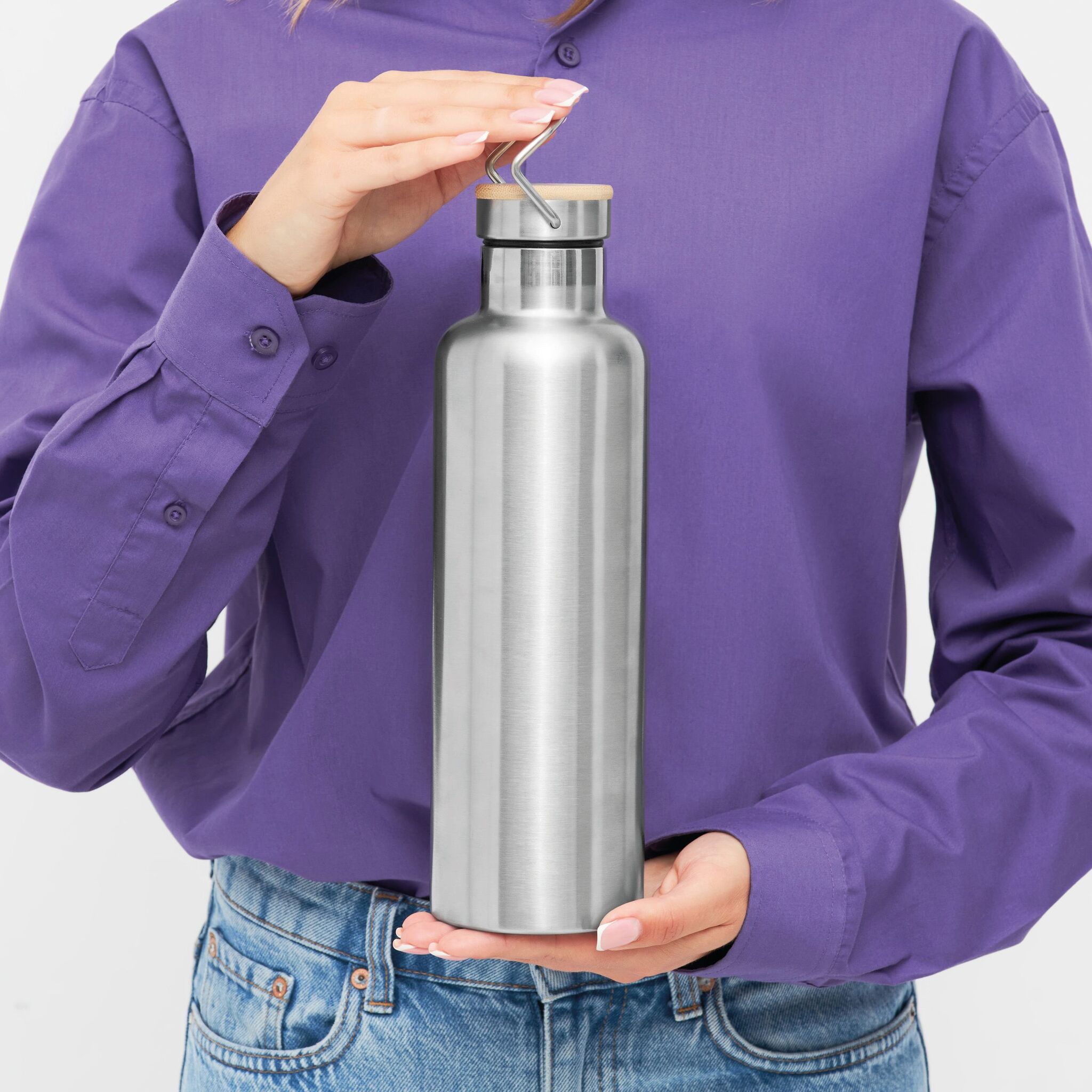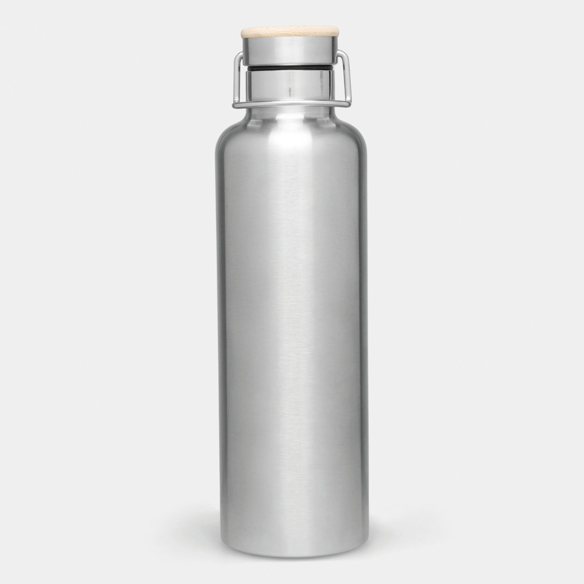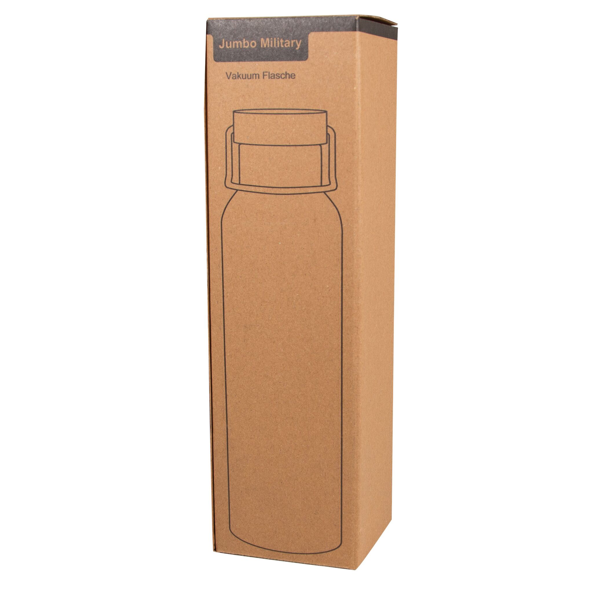 Вакуумная бутылка для питья JUMBO MILITARY , с двойными стенками: внутри и снаружи из нержавеющей стали, защитная завинчивающаяся крышка с бамбуковым верхом, емкость: около 1000 мл, сохраняет тепло около 8 часов и холод до 12 часов