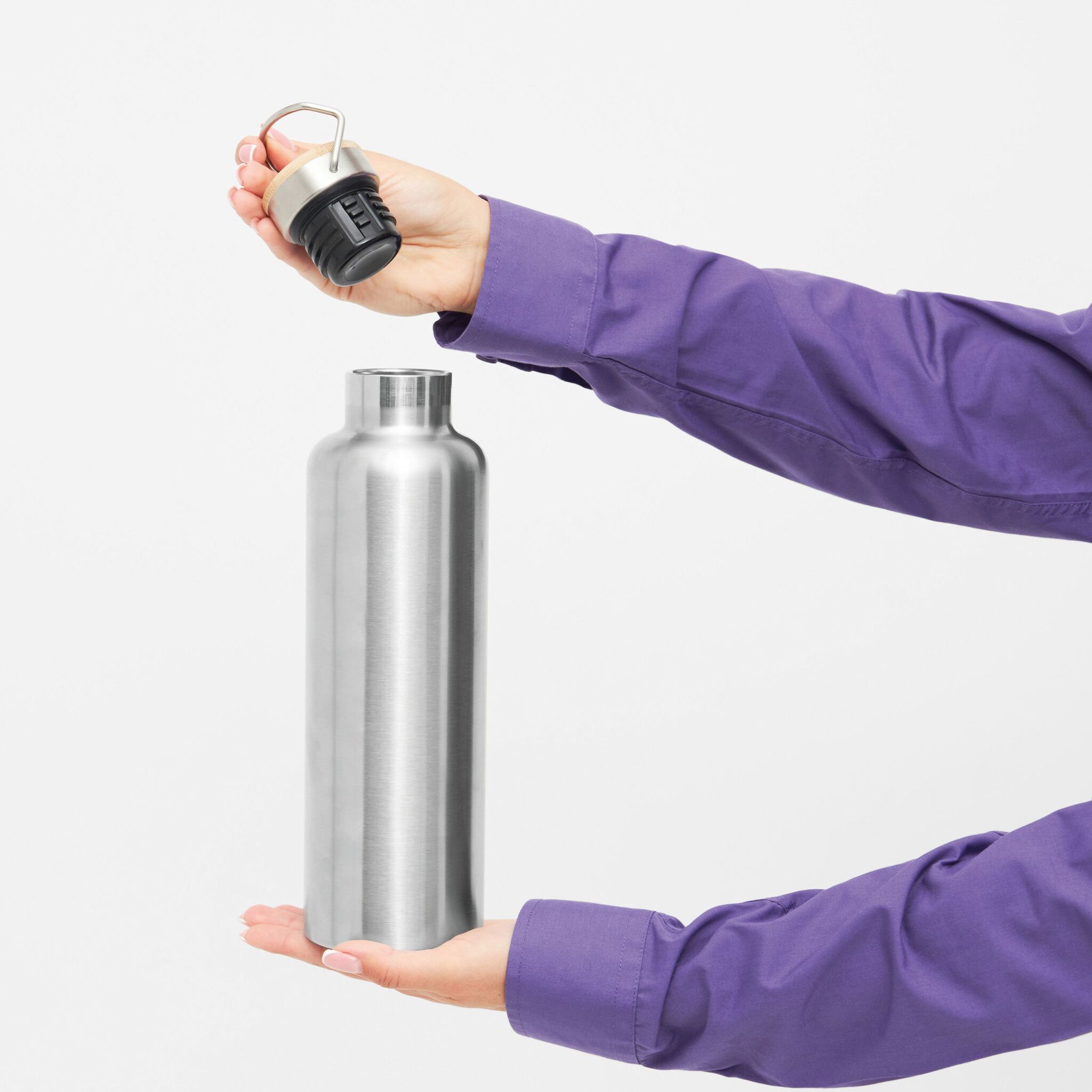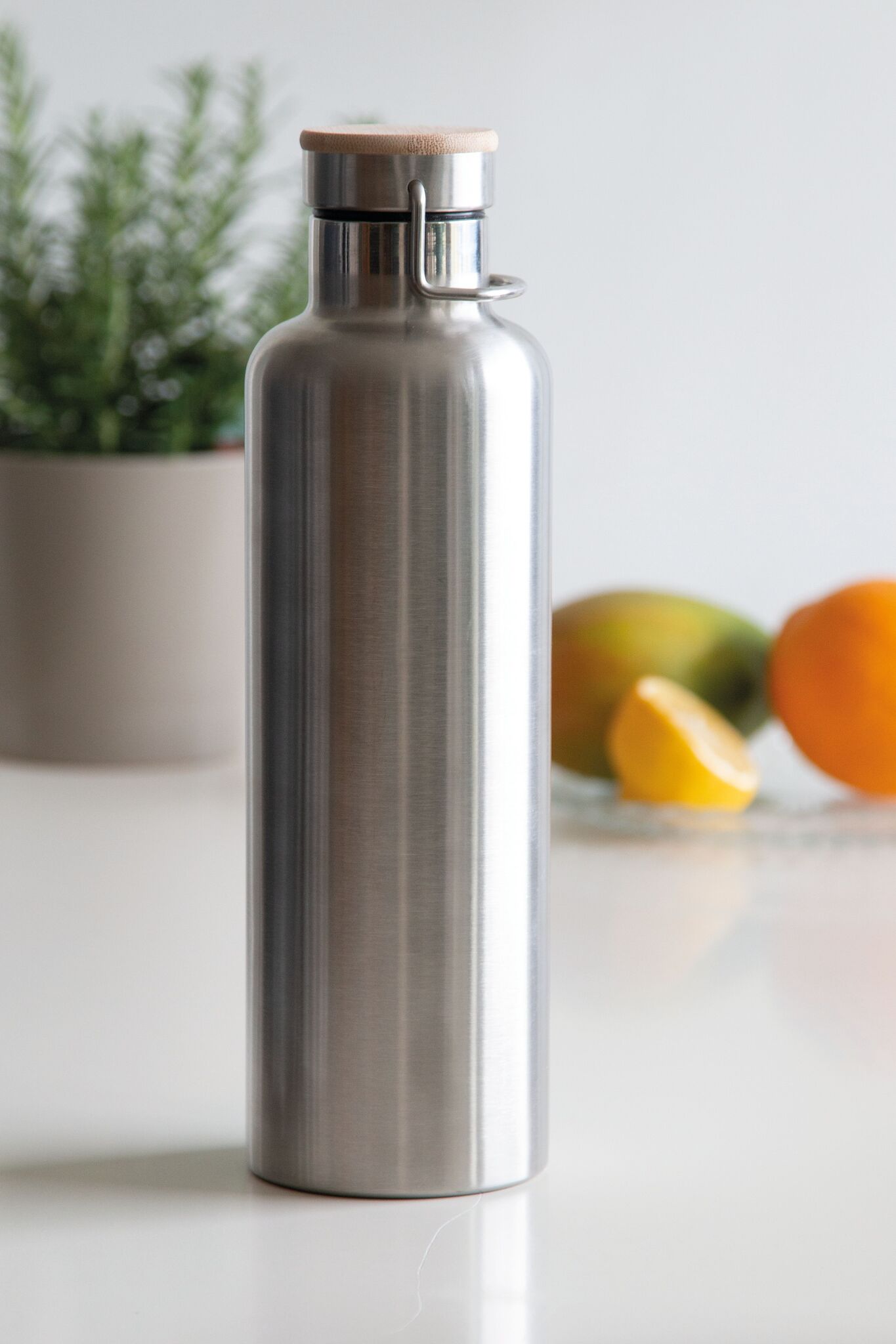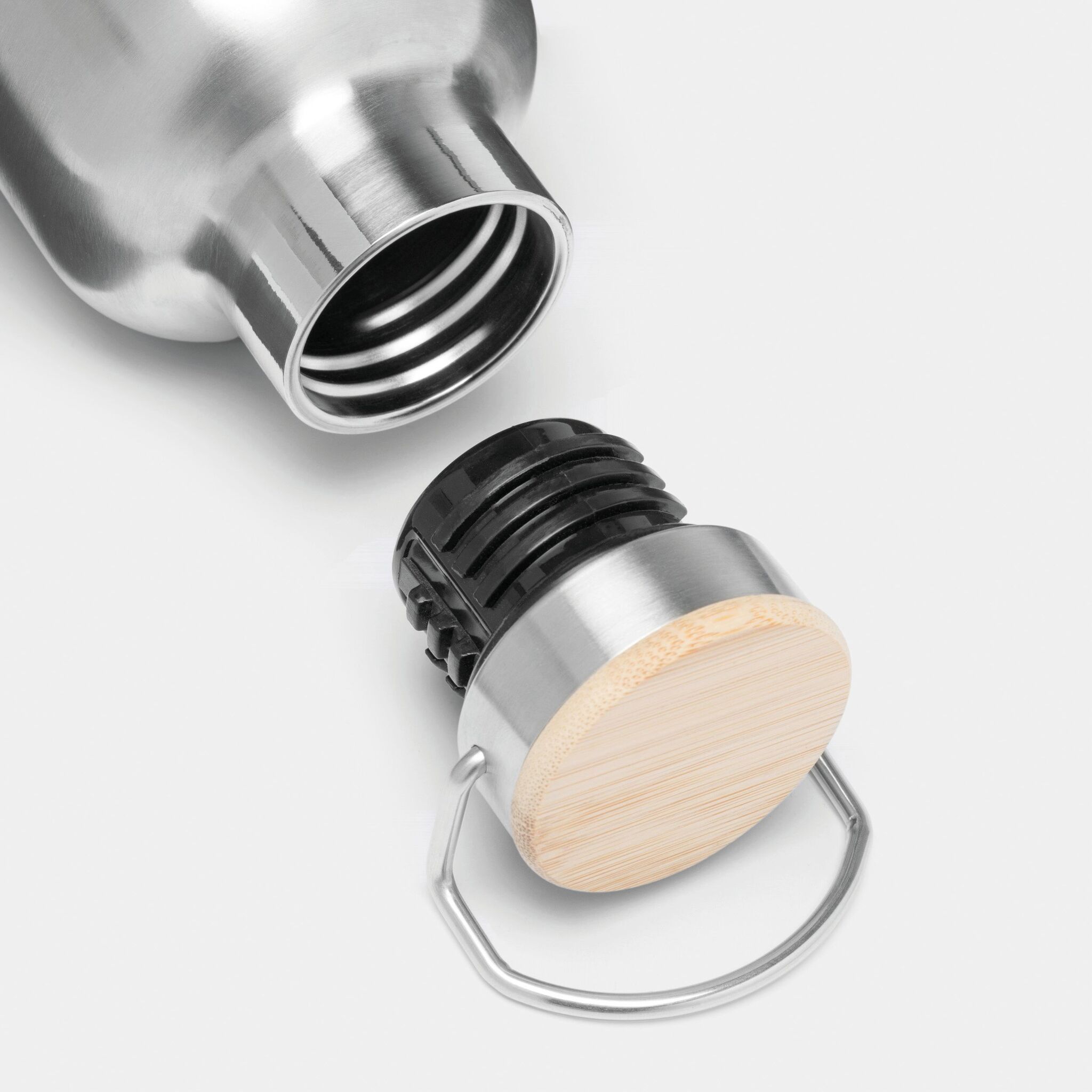 Вакуумная бутылка для питья JUMBO MILITARY , с двойными стенками: внутри и снаружи из нержавеющей стали, защитная завинчивающаяся крышка с бамбуковым верхом, емкость: около 1000 мл, сохраняет тепло около 8 часов и холод до 12 часов