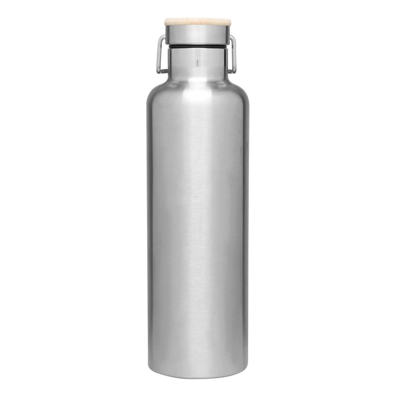 Вакуумная бутылка для питья JUMBO MILITARY, с двойными стенками: внутри и снаружи из нержавеющей стали, защитная завинчивающаяся крышка с бамбуковым верхом, емкость: около 1000 мл, сохраняет тепло около 8 часов и холод до 12 часов