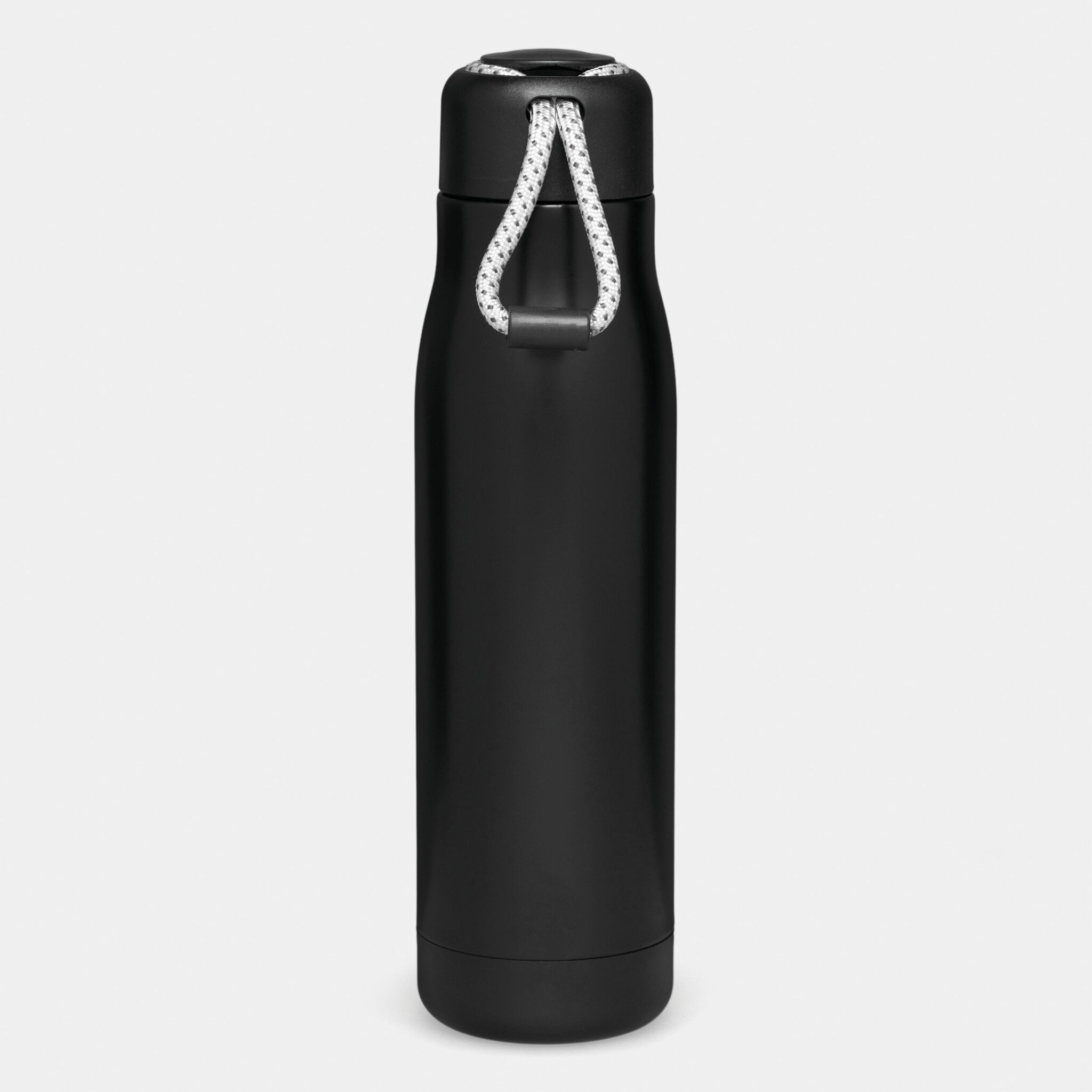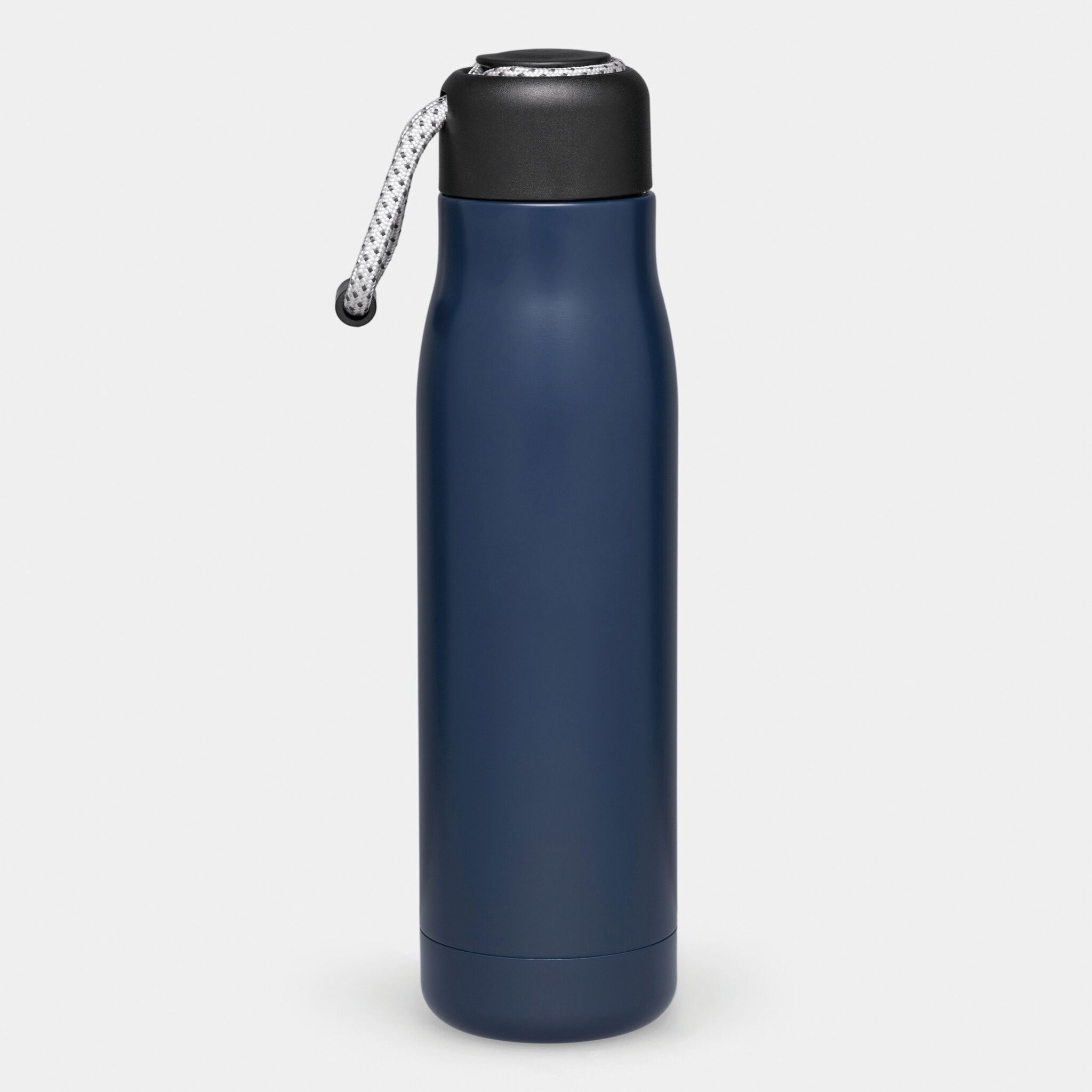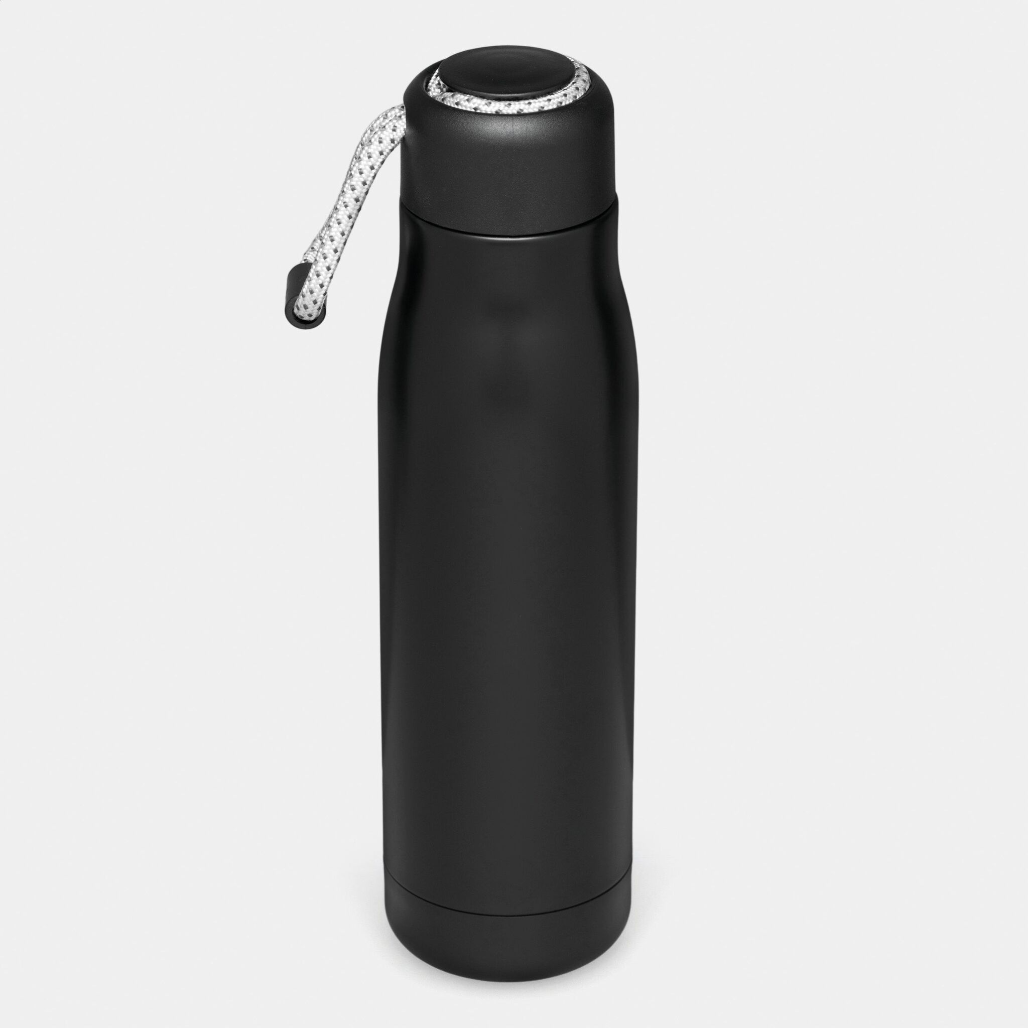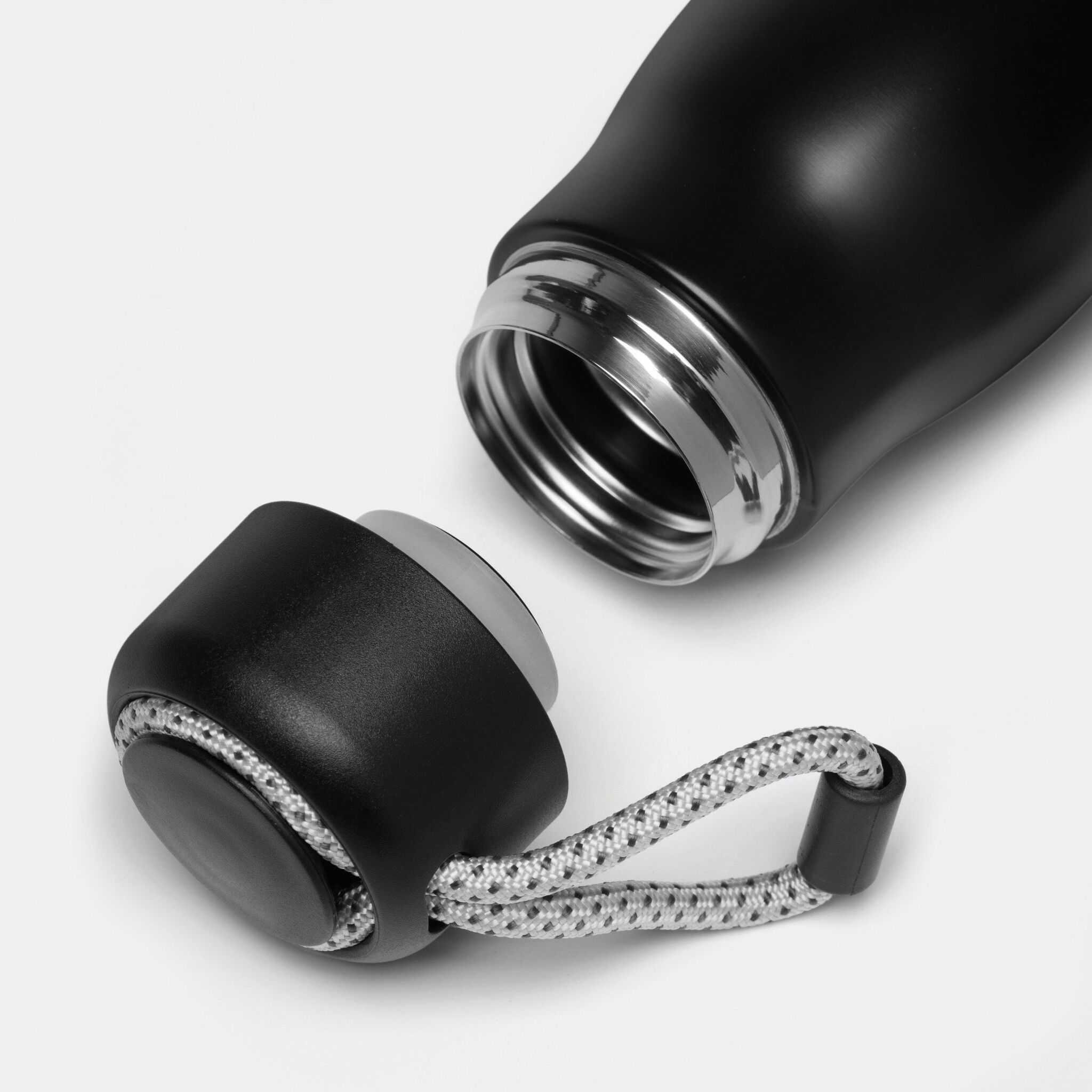 Вакуумная бутылка для питья ROBUSTA , с двойными стенками: внутри и снаружи из нержавеющей стали, завинчивающаяся черная крышка с декоративным ремнем для переноски, емкость: ок. 500 мл, сохраняет тепло ок. 8 часов и холод до 12 часов