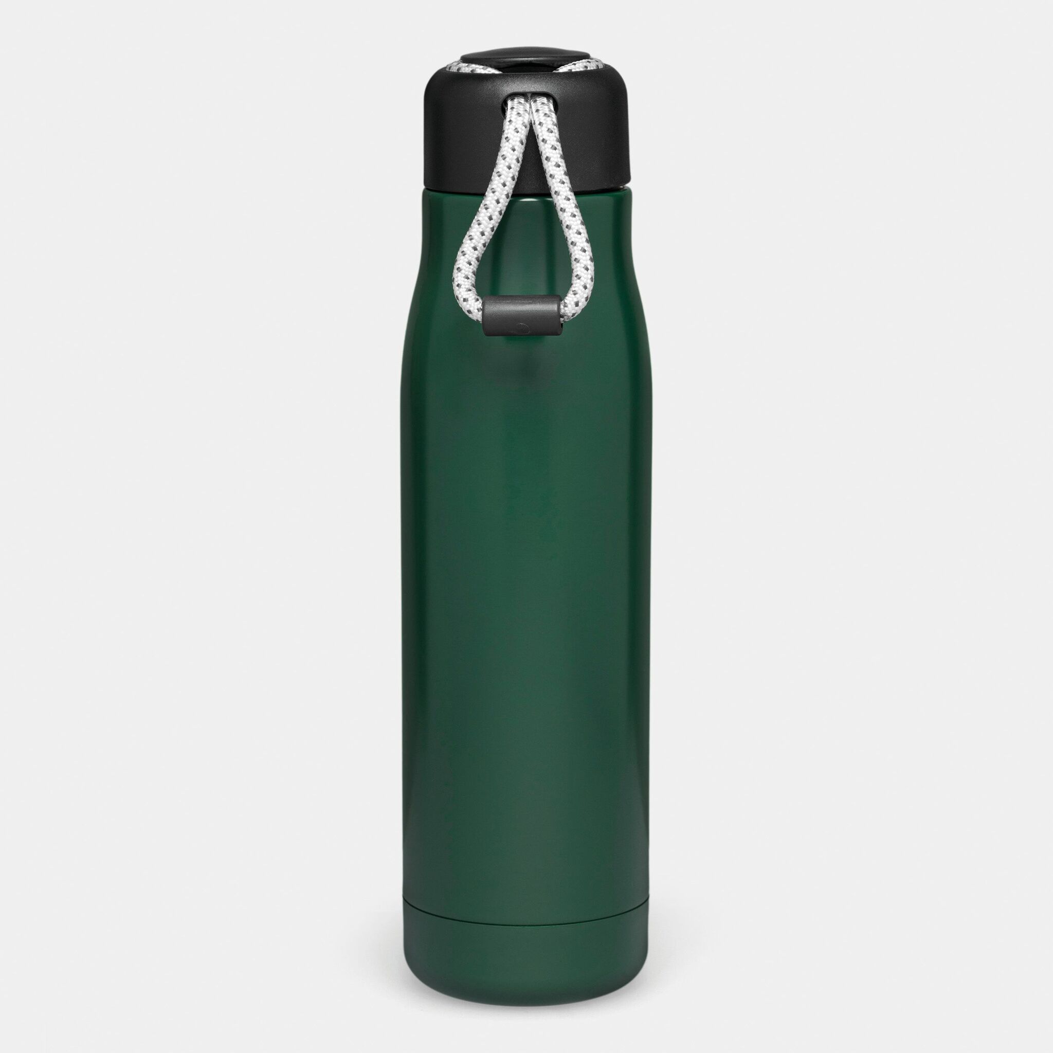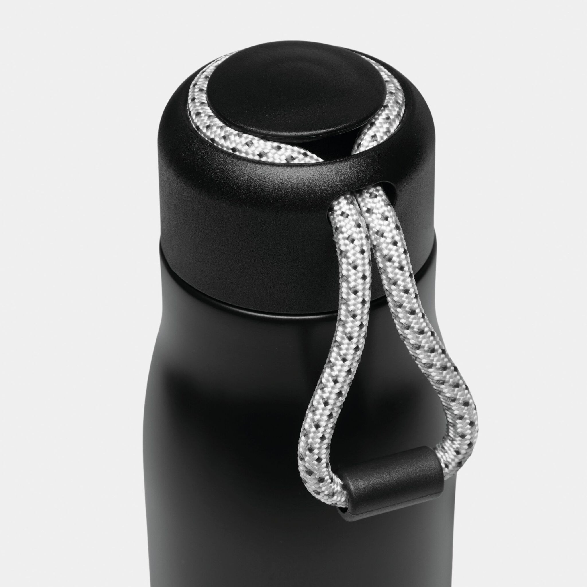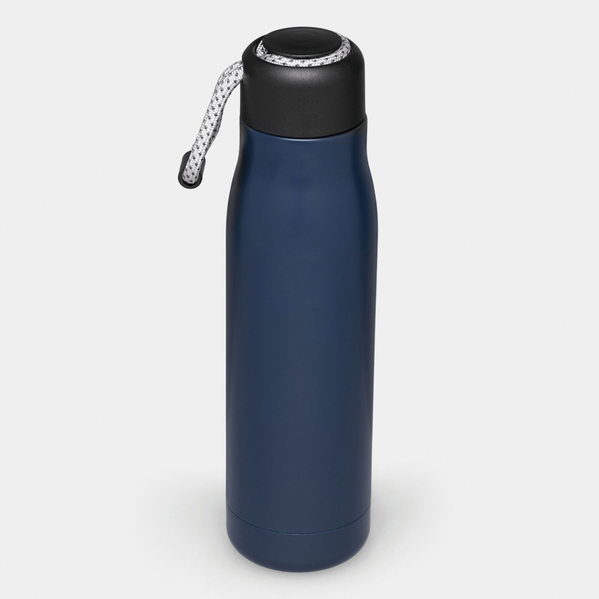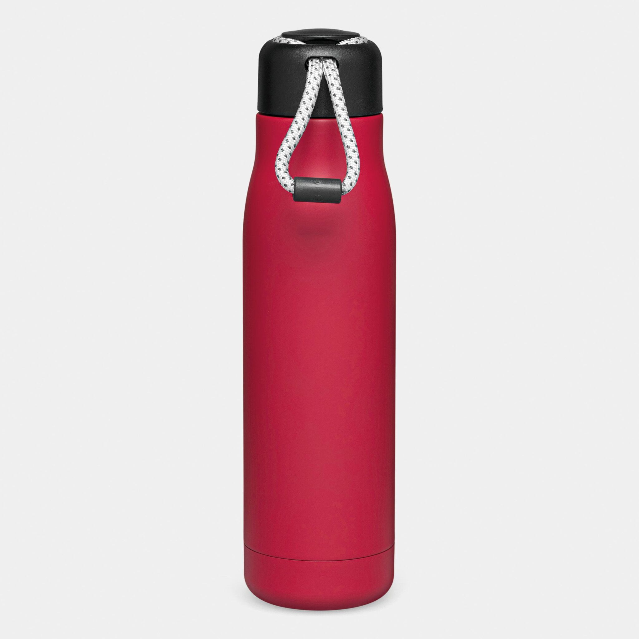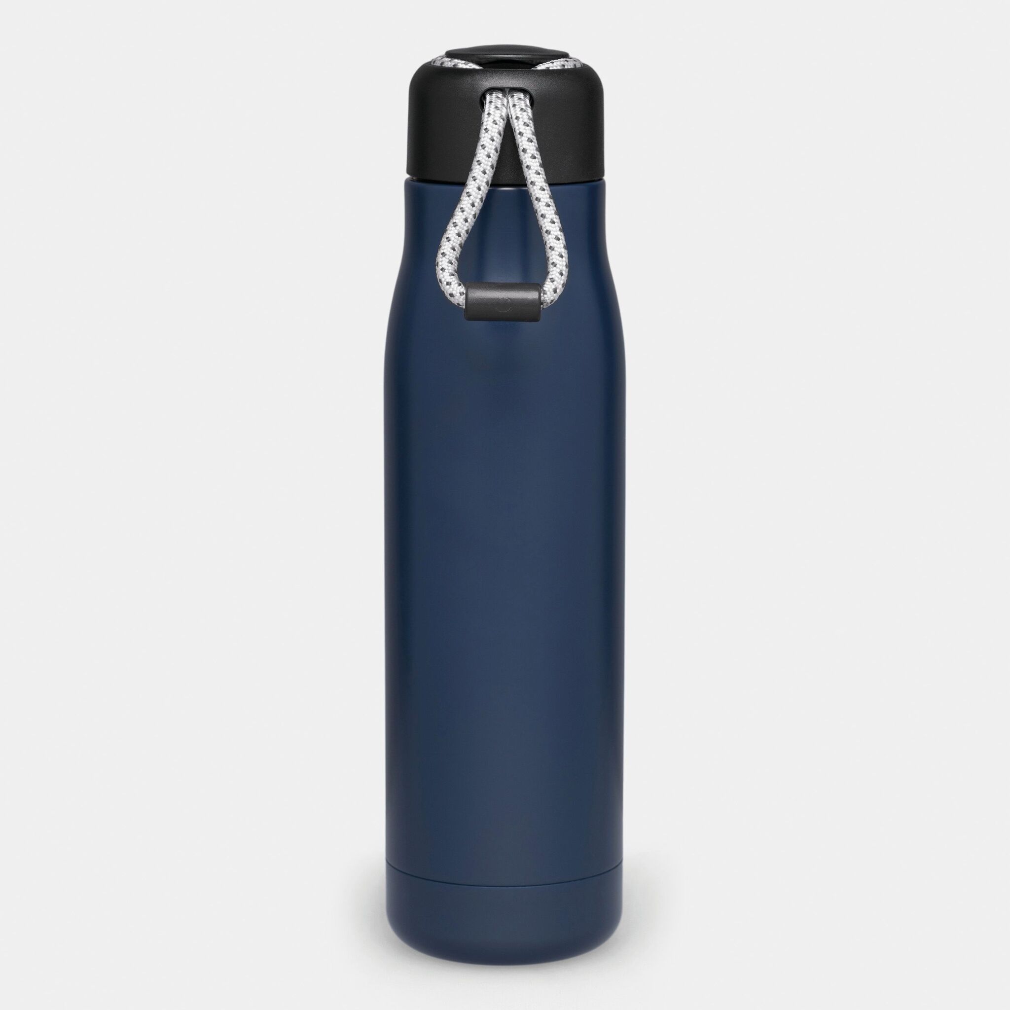 Вакуумная бутылка для питья ROBUSTA , с двойными стенками: внутри и снаружи из нержавеющей стали, завинчивающаяся черная крышка с декоративным ремнем для переноски, емкость: ок. 500 мл, сохраняет тепло ок. 8 часов и холод до 12 часов