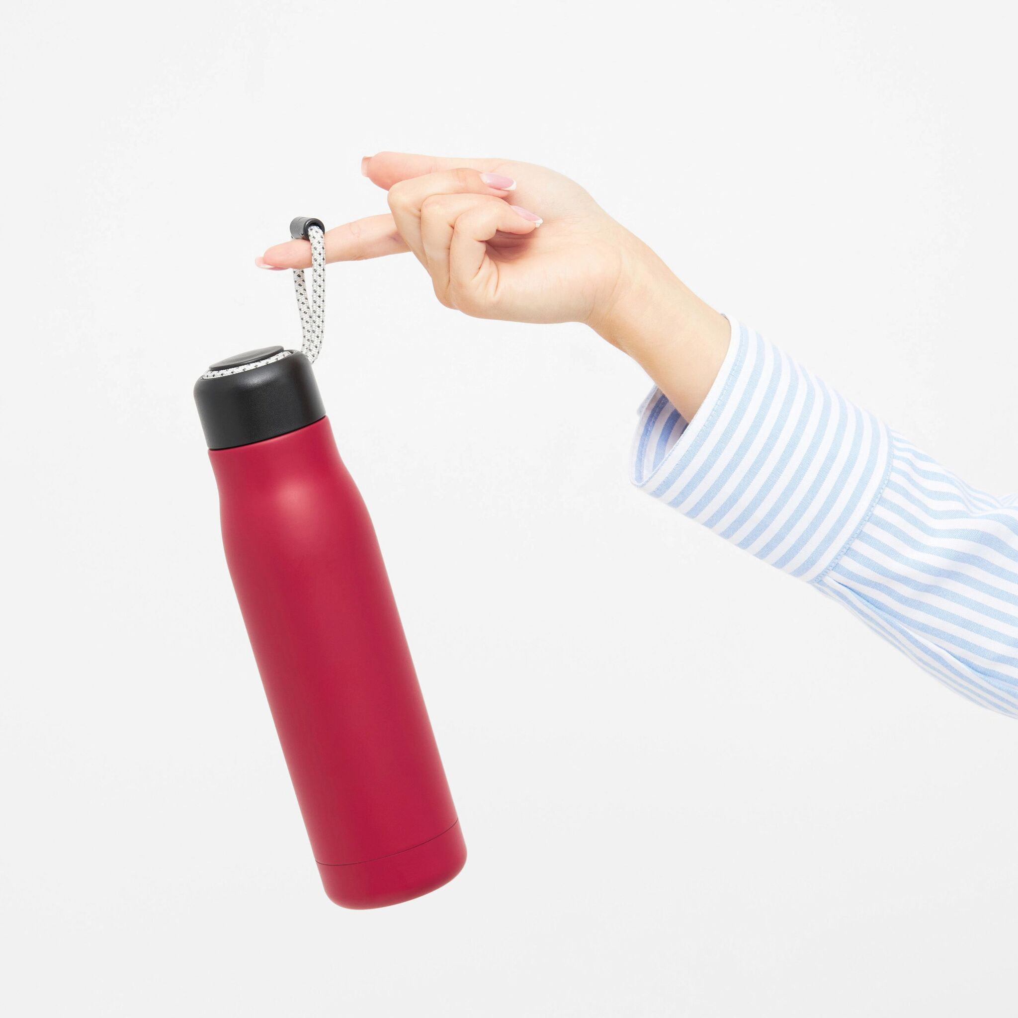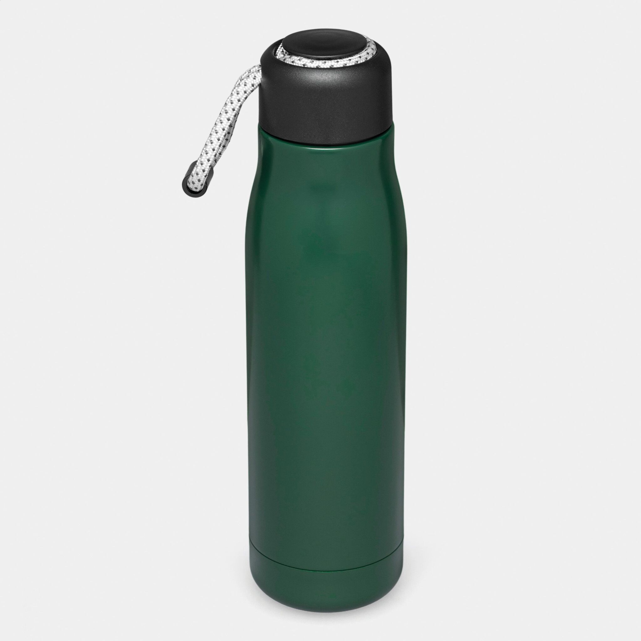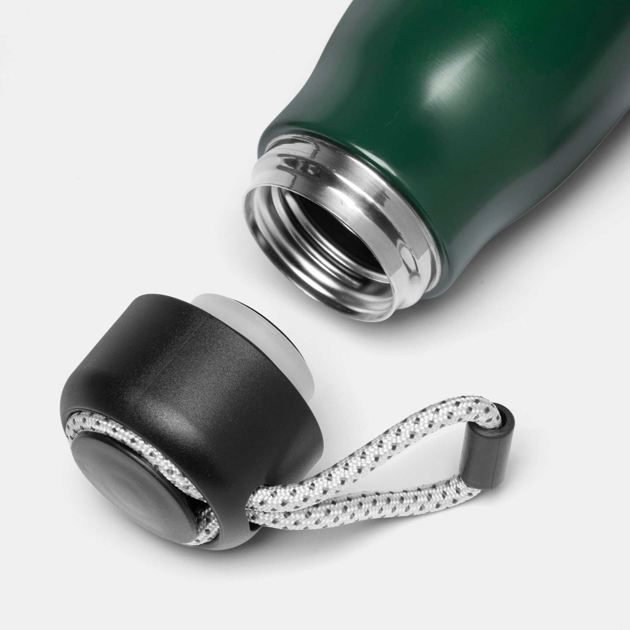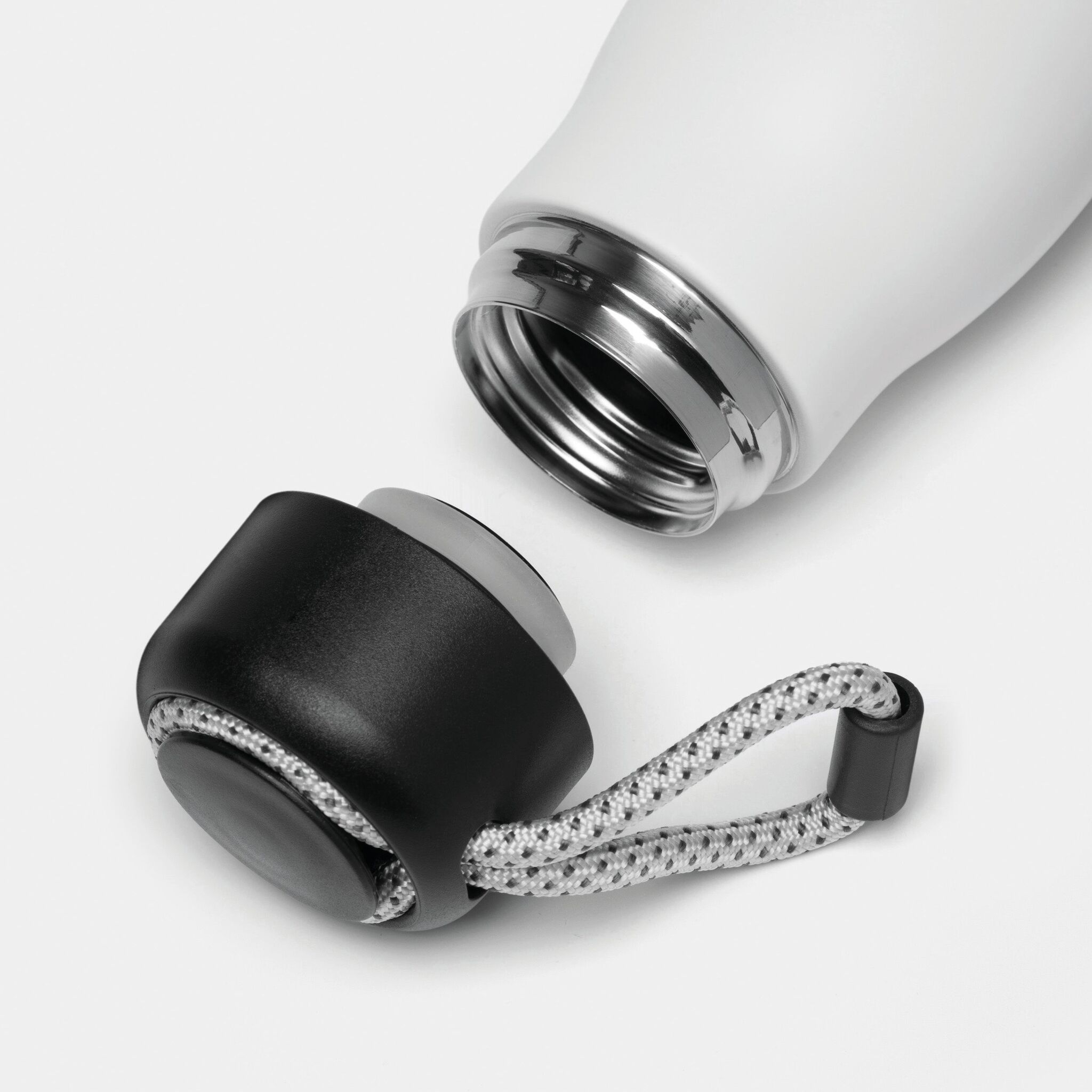 Вакуумная бутылка для питья ROBUSTA , с двойными стенками: внутри и снаружи из нержавеющей стали, завинчивающаяся черная крышка с декоративным ремнем для переноски, емкость: ок. 500 мл, сохраняет тепло ок. 8 часов и холод до 12 часов