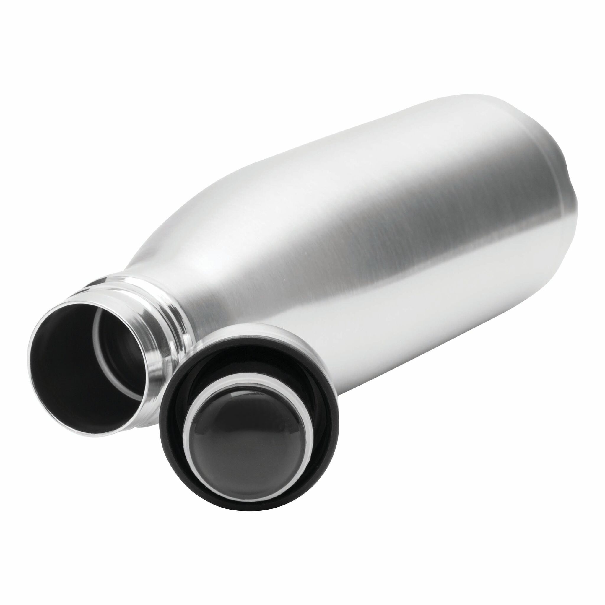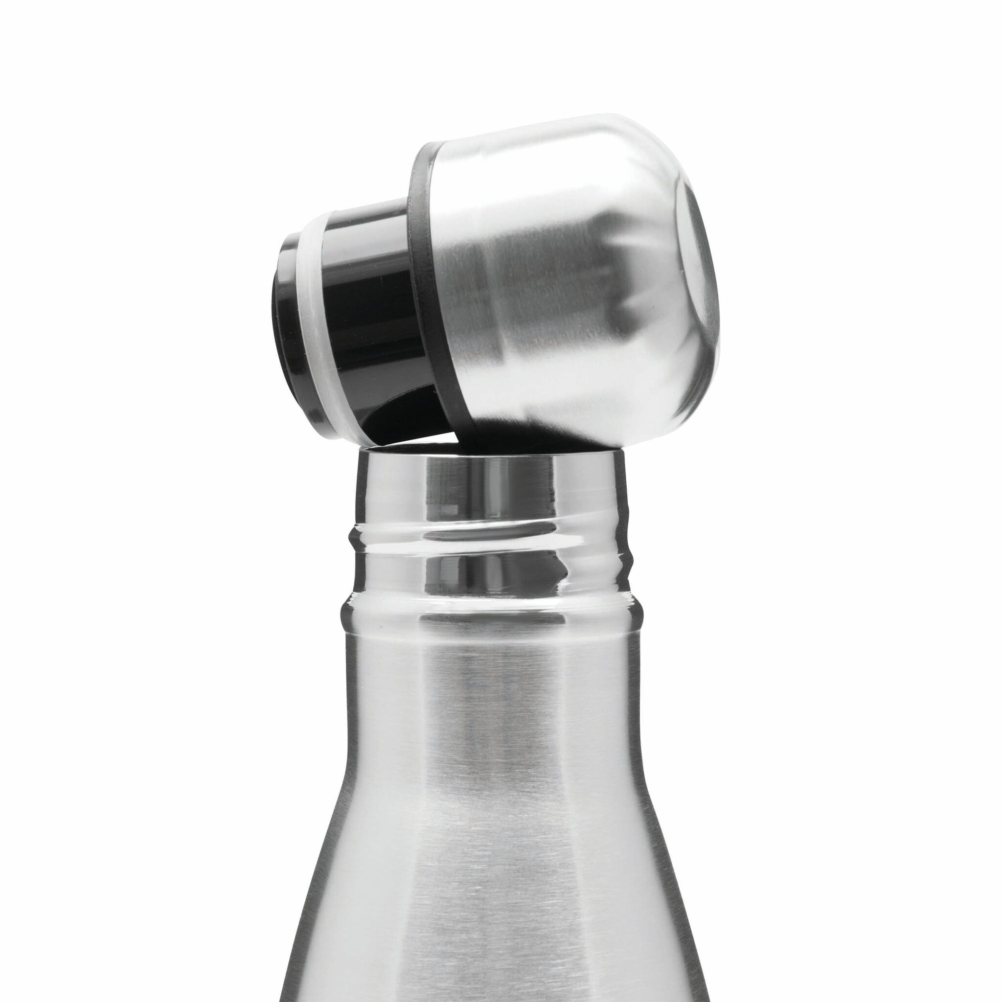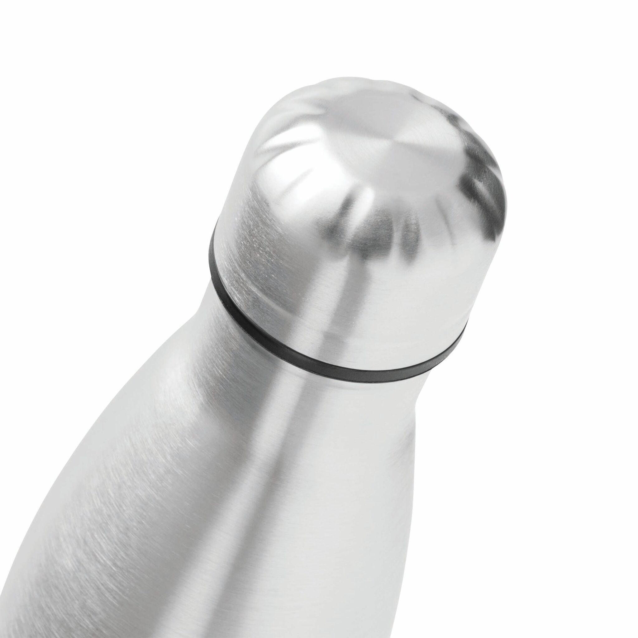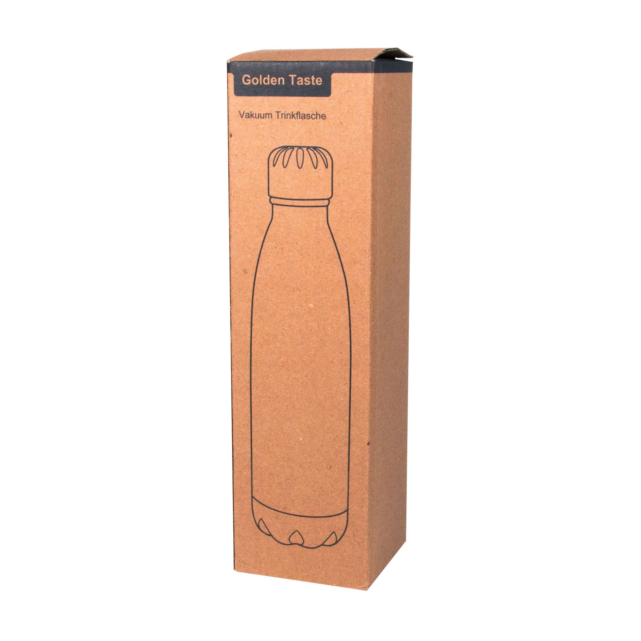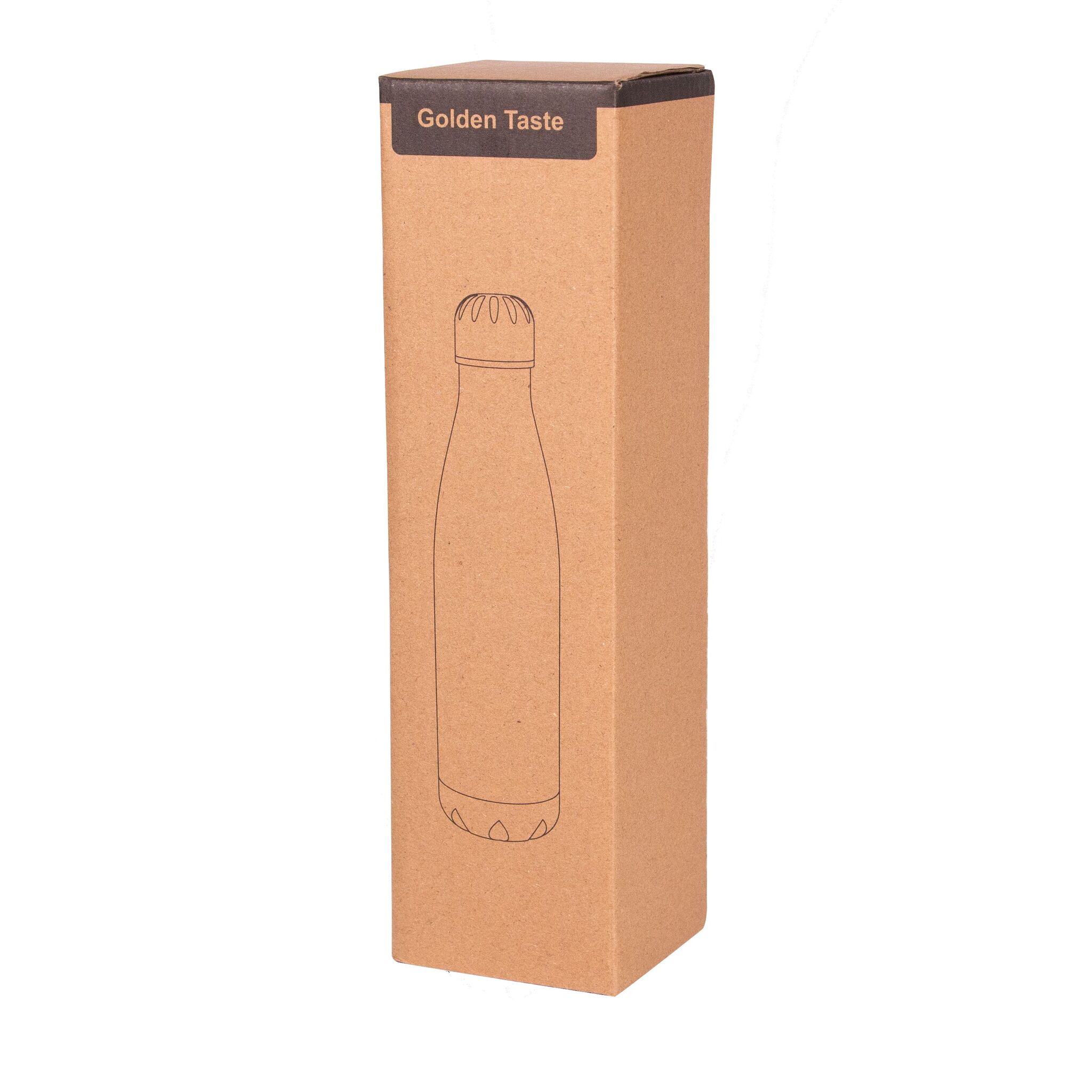 Вакуумная бутылка с двойными стенками GOLDEN TASTE : внутри и снаружи изготовлена из нержавеющей стали, надежная закручивающаяся крышка серебряного цвета, объем ок. 500 ml