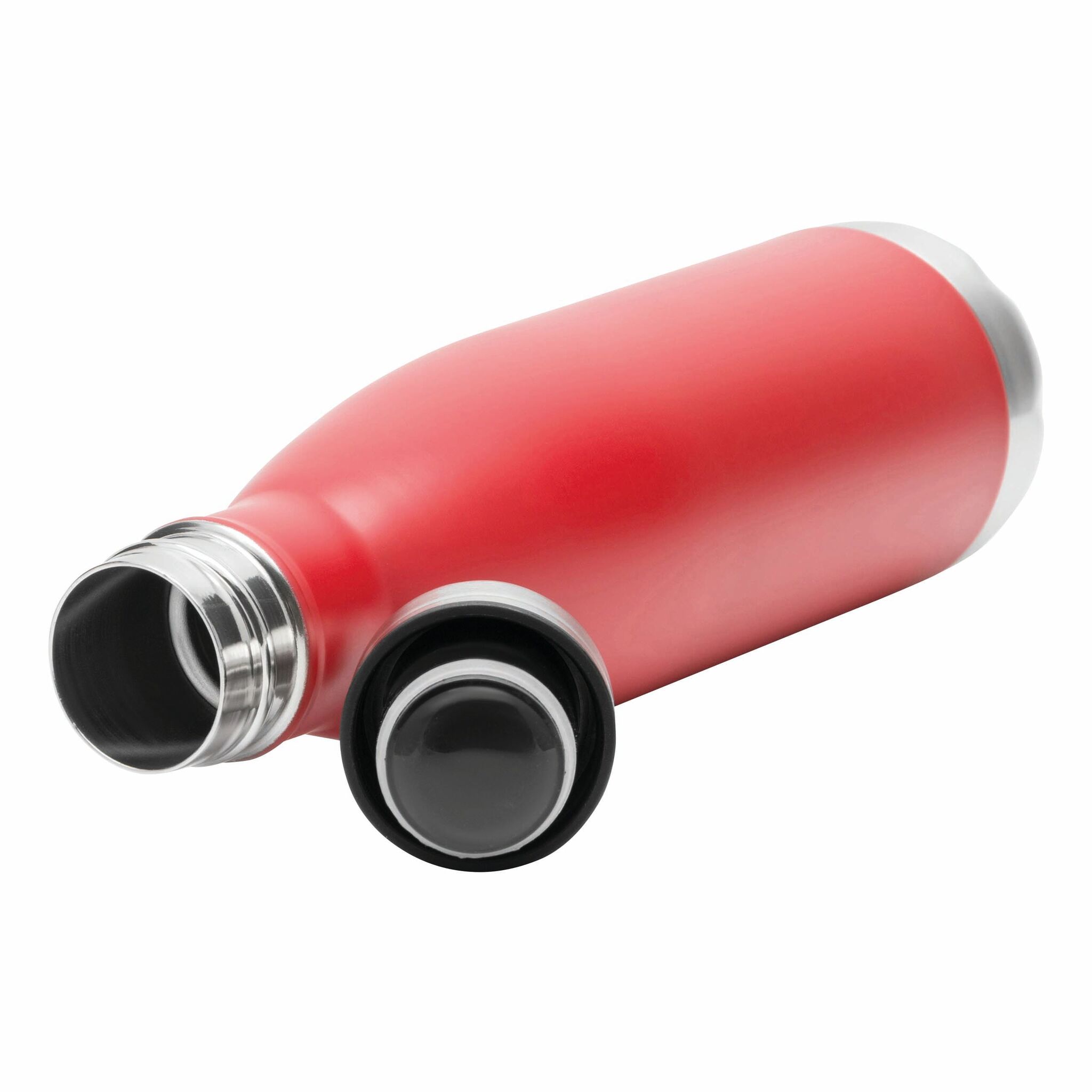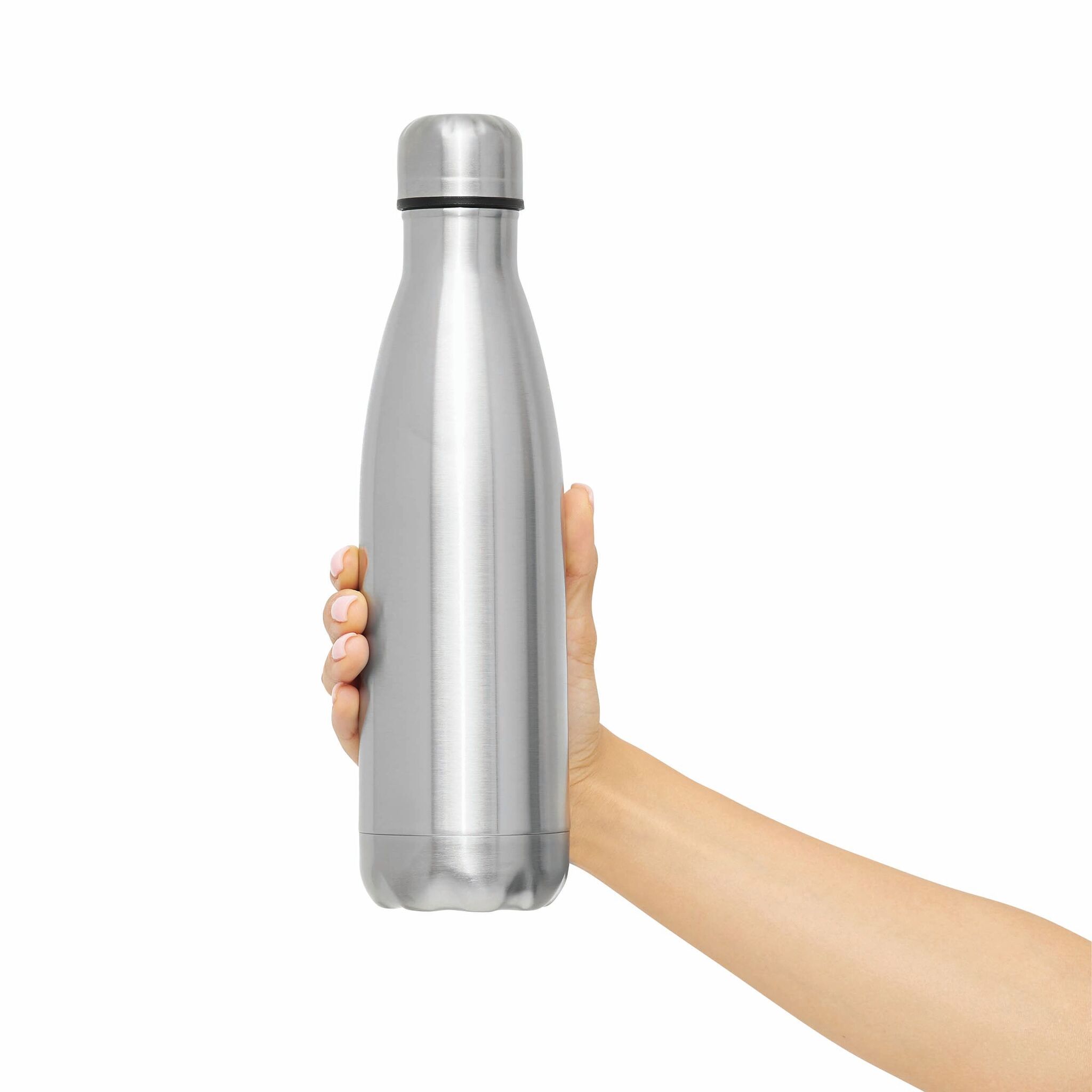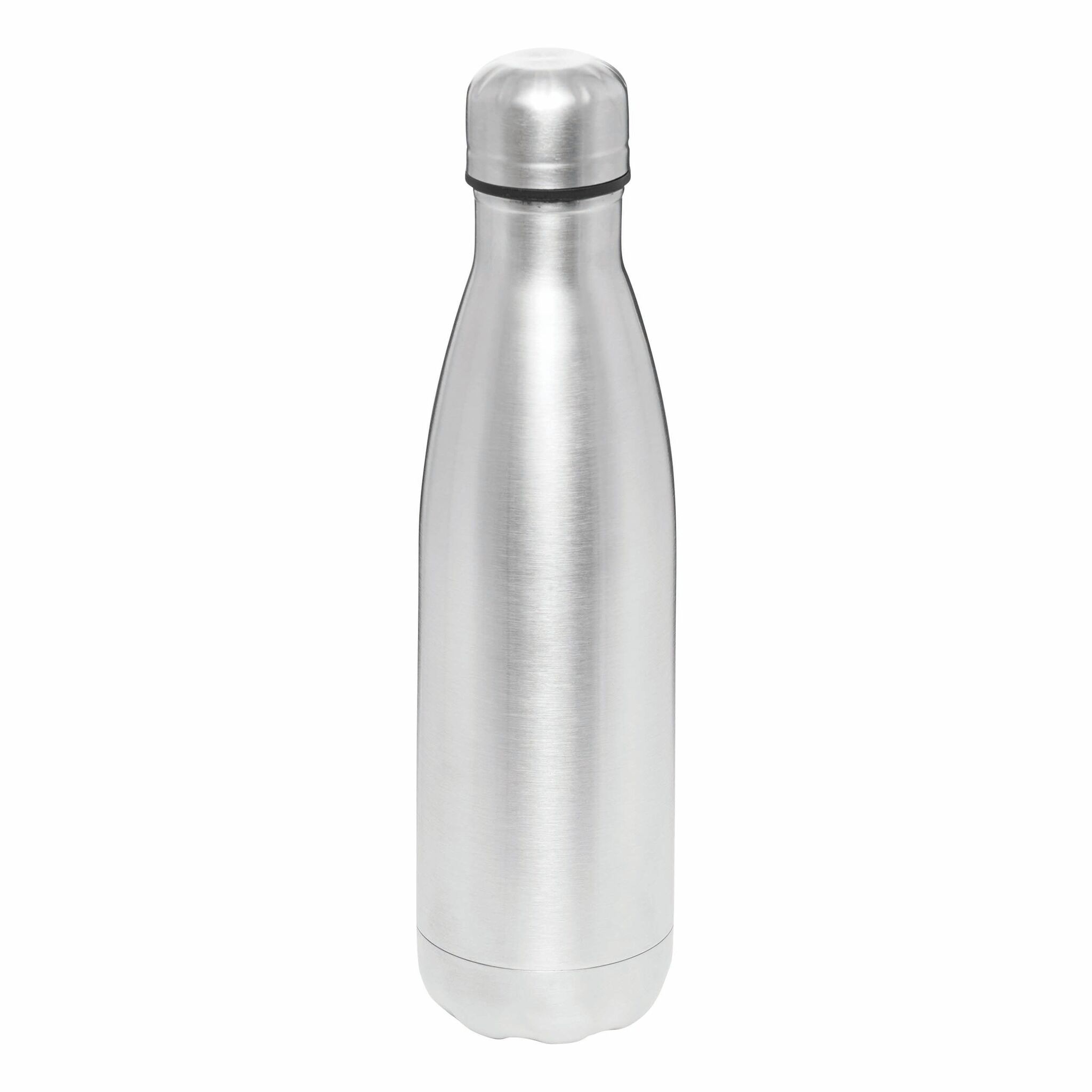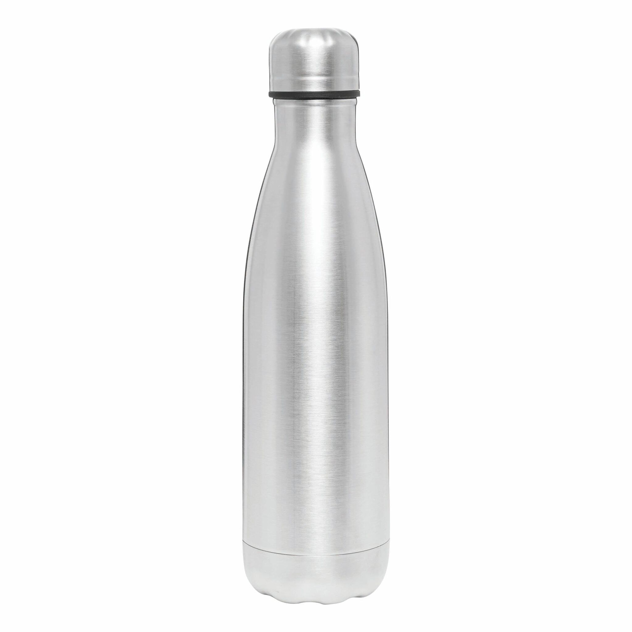 Вакуумная бутылка с двойными стенками GOLDEN TASTE : внутри и снаружи изготовлена из нержавеющей стали, надежная закручивающаяся крышка серебряного цвета, объем ок. 500 ml