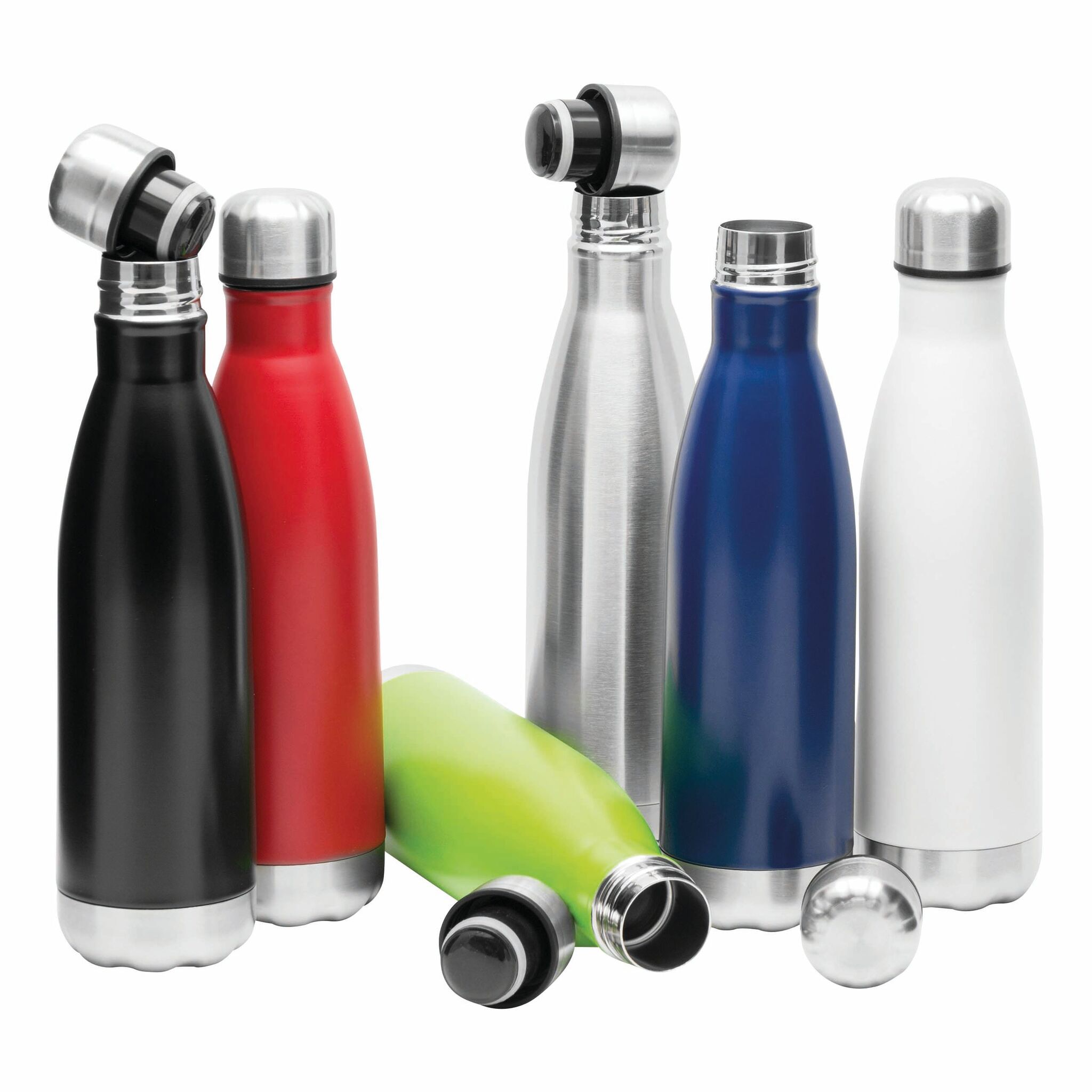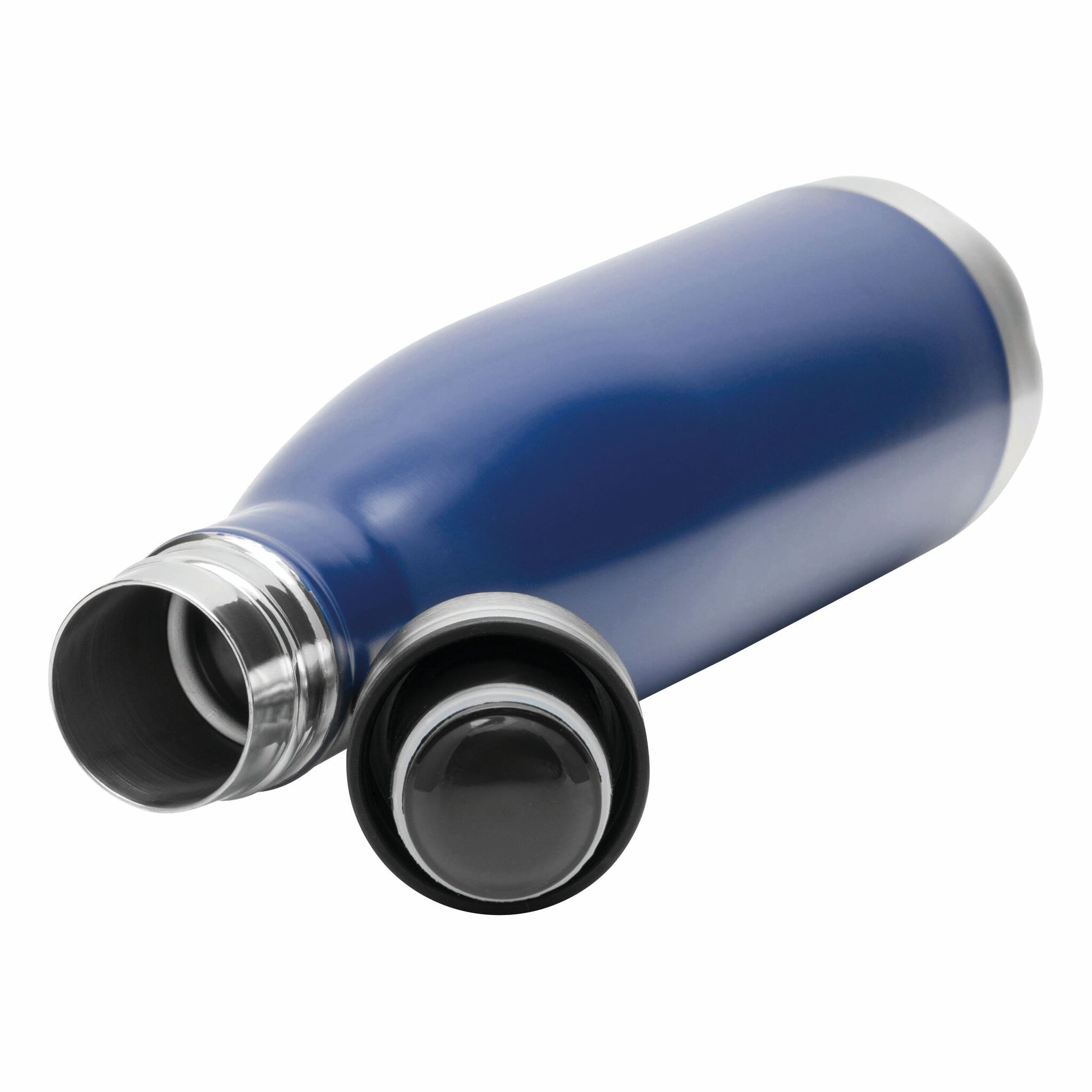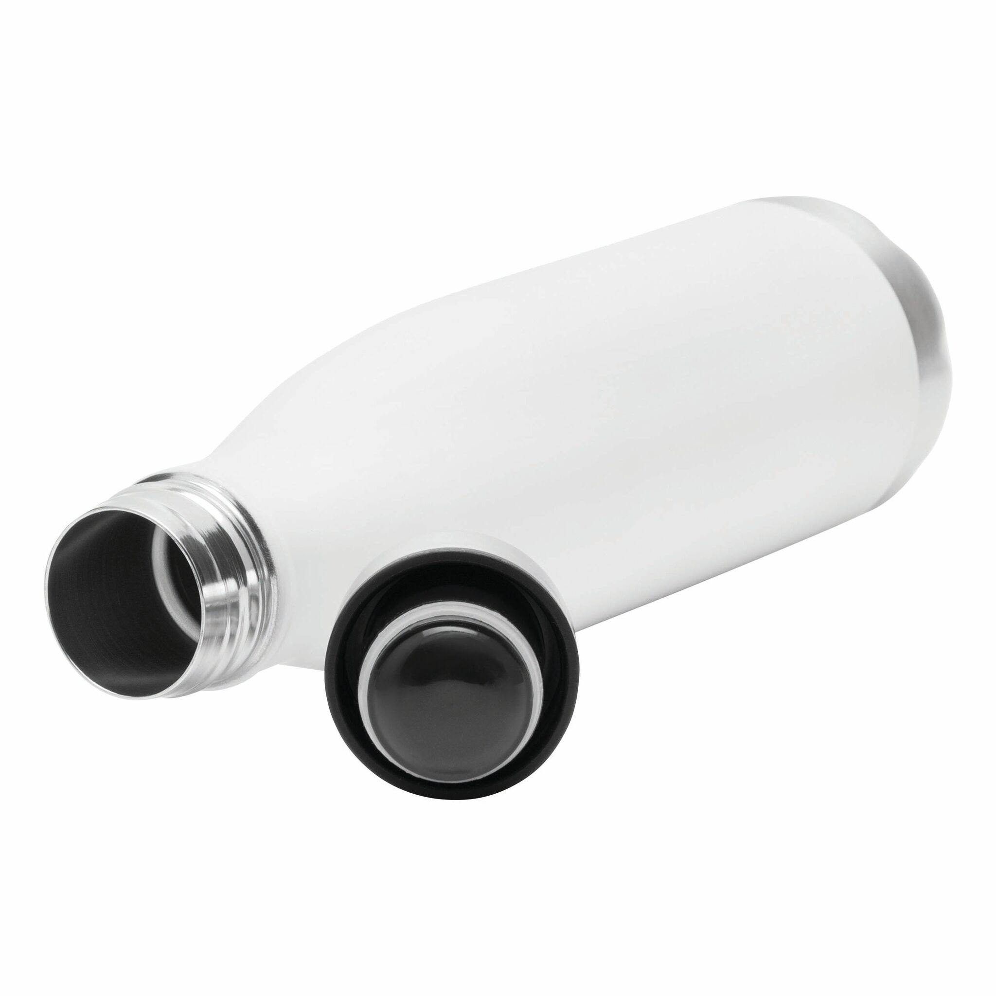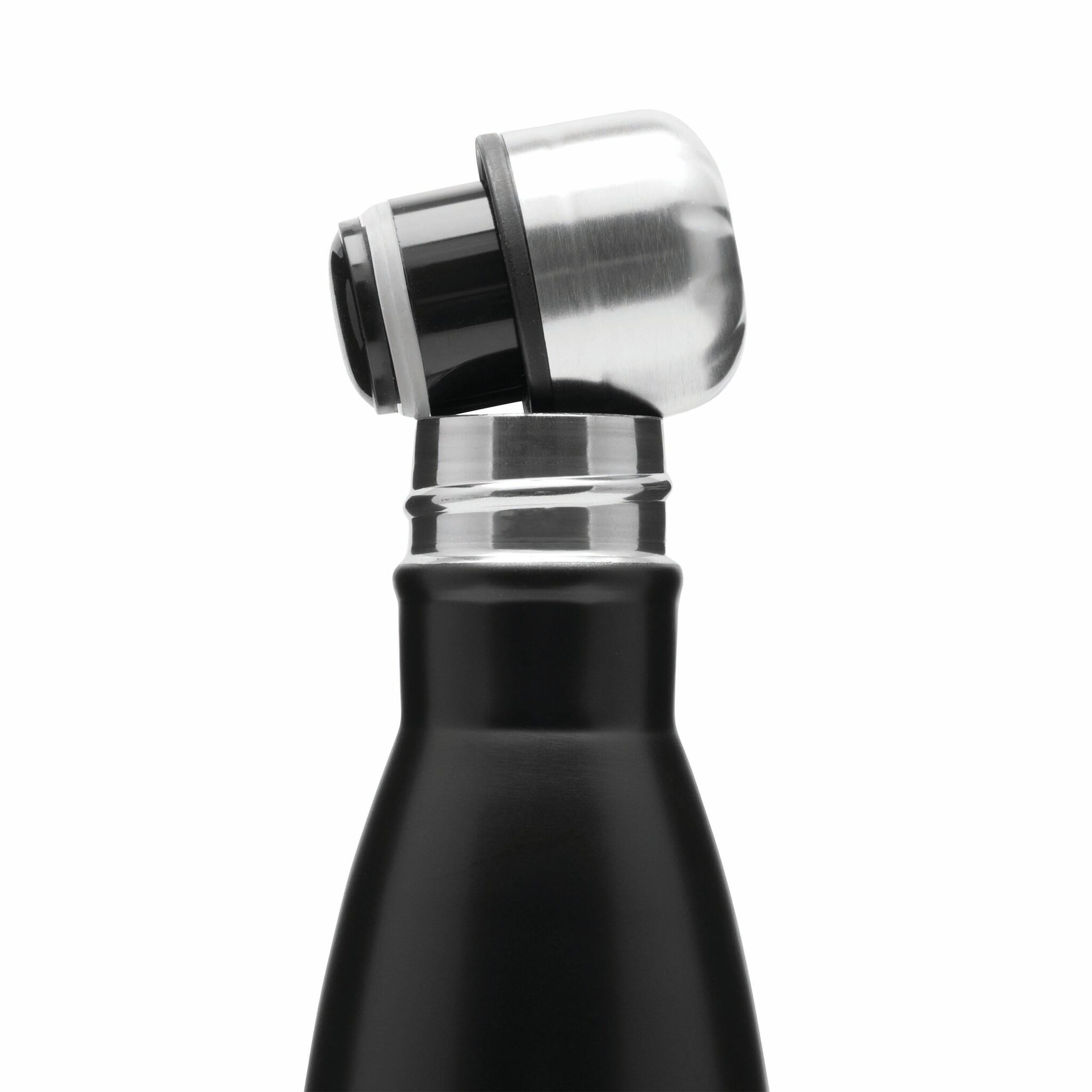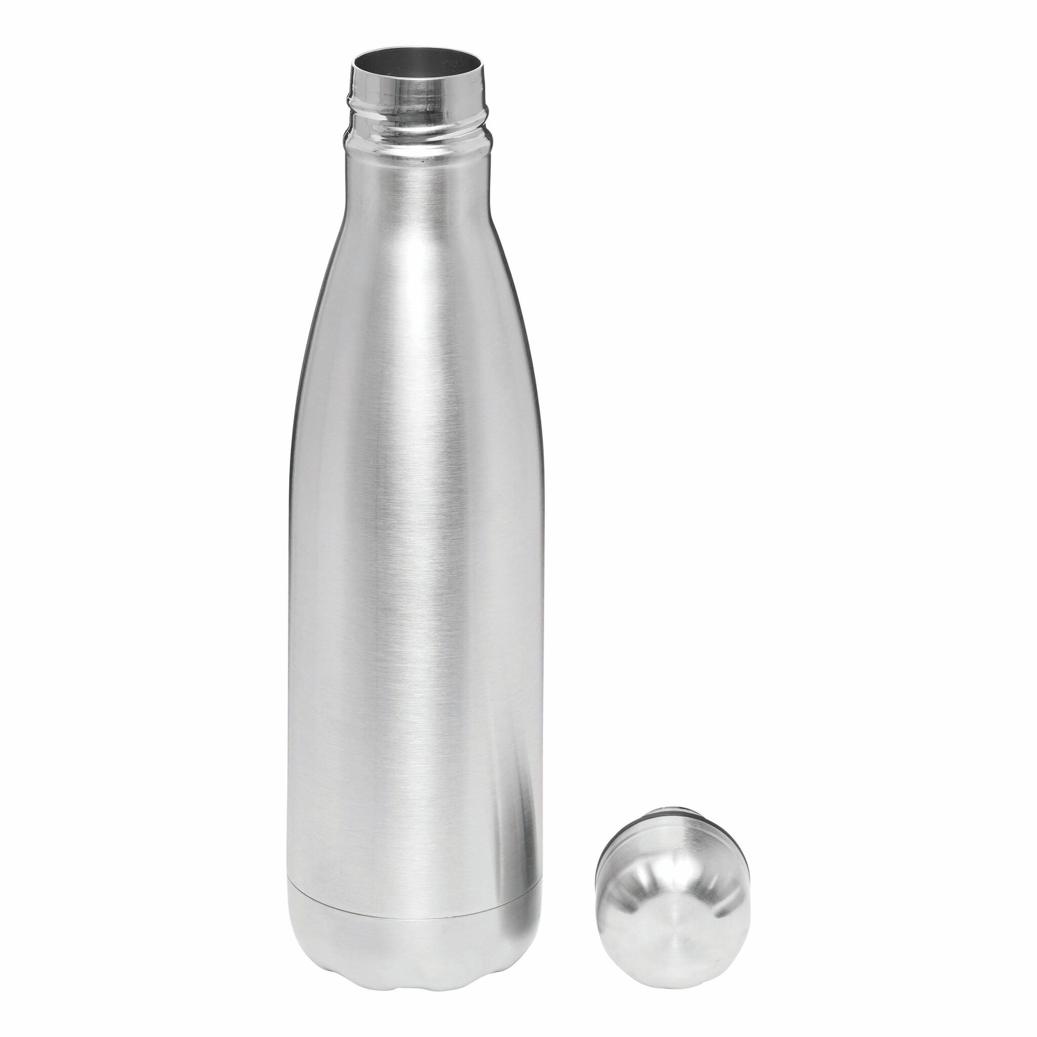 Вакуумная бутылка с двойными стенками GOLDEN TASTE : внутри и снаружи изготовлена из нержавеющей стали, надежная закручивающаяся крышка серебряного цвета, объем ок. 500 ml