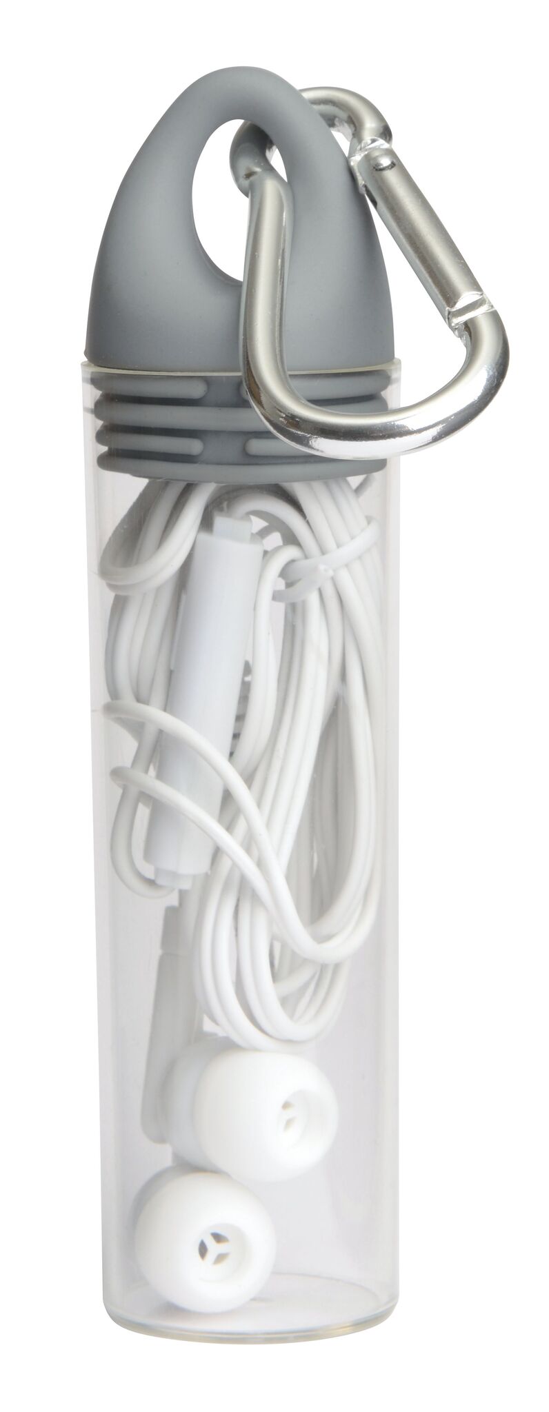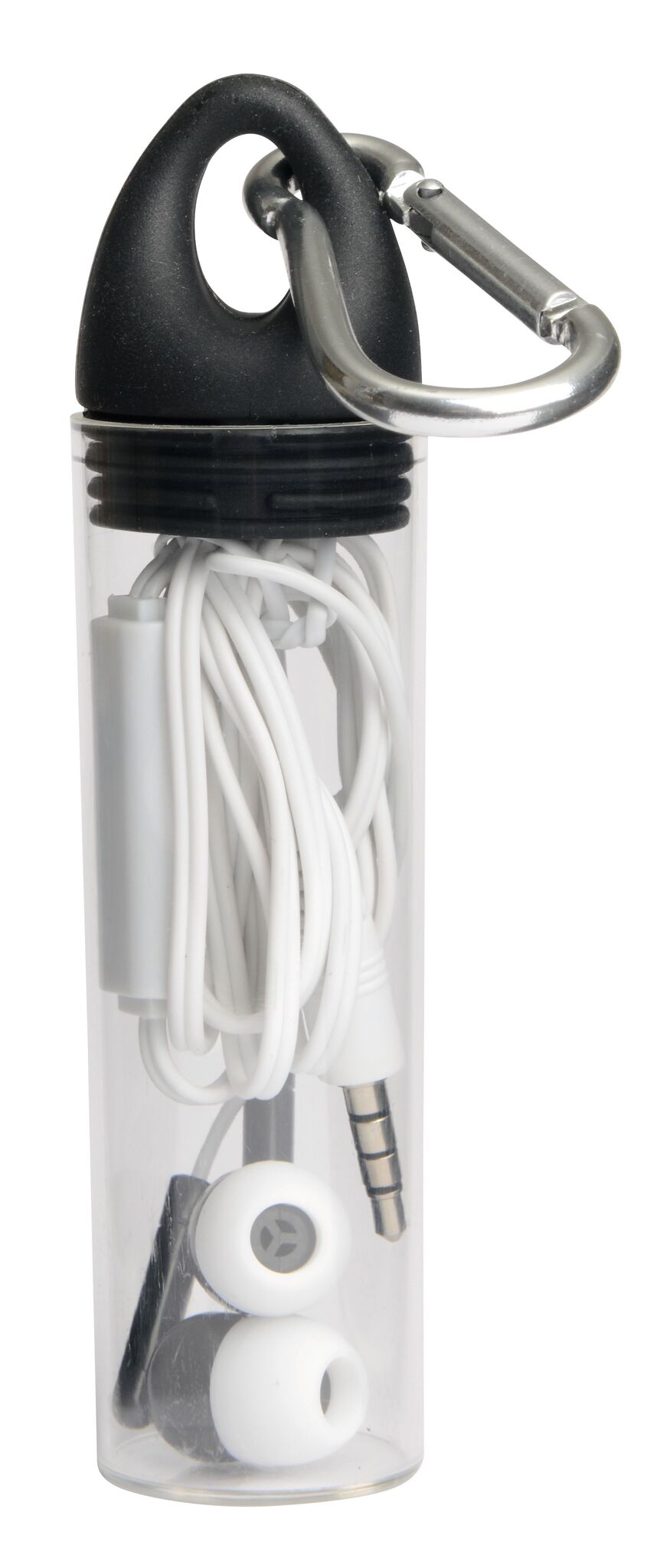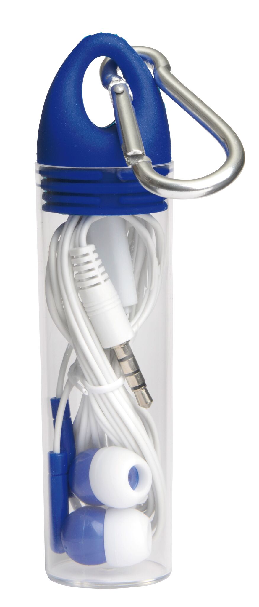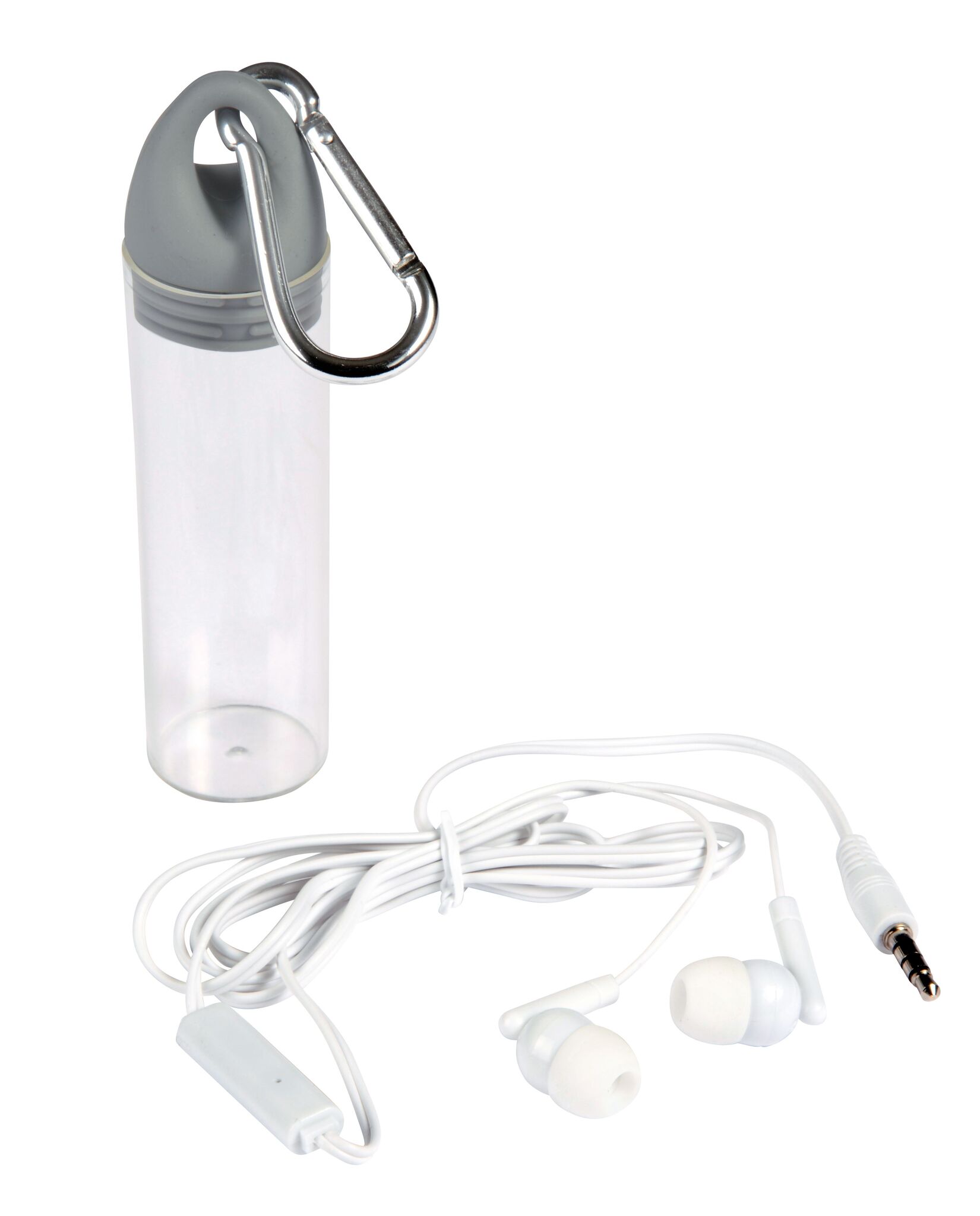 Внутриканальные наушники LISTEN & TALK со встроенным микрофоном и кнопкой приема звонков, разъем 3,5мм, длина кабеля около 120см, в пластиковом футляре с цветной крышкой и алюминиевым карабином.