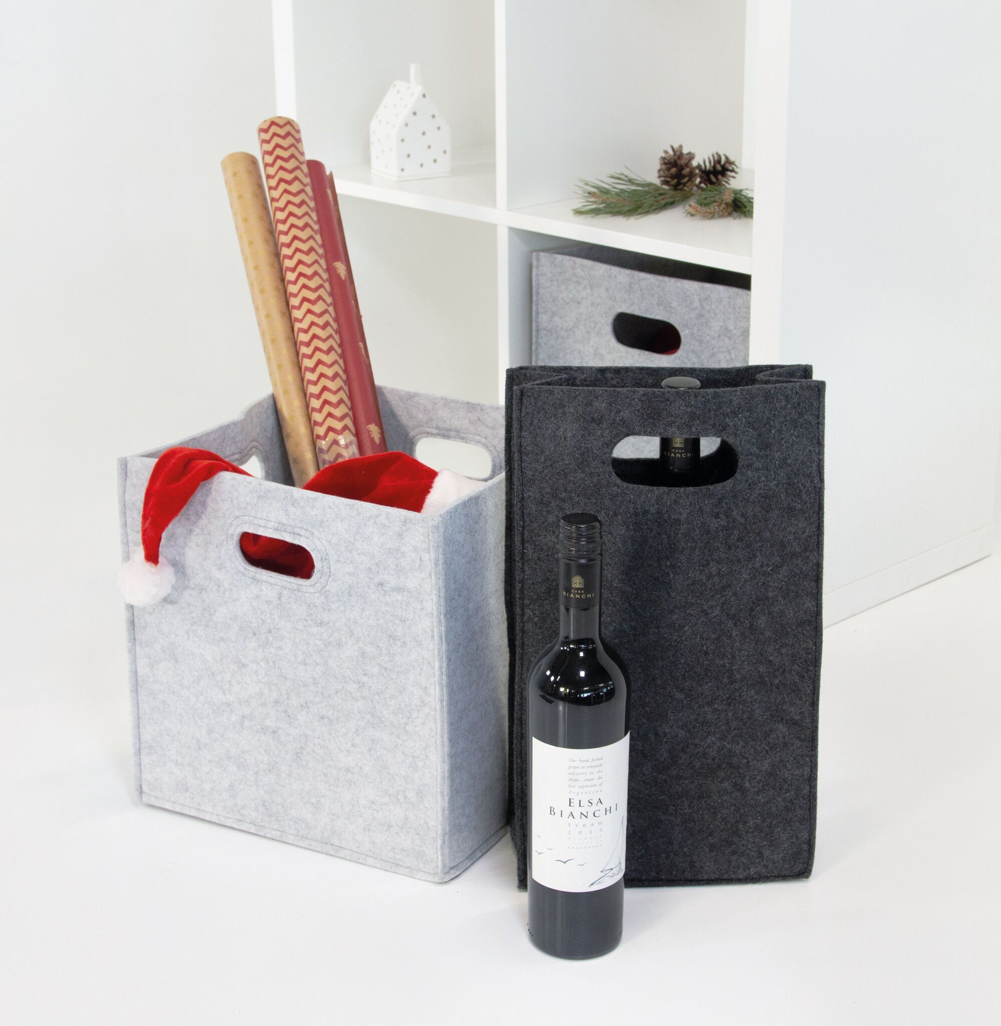 Войлочная сумка для бутылок CHABLIS : с 2 отверстиями для переноски, подходит для 2 бутылок до 1 л каждая, с войлочной перегородкой