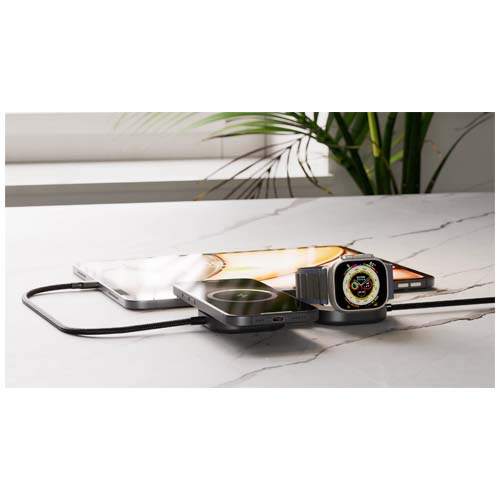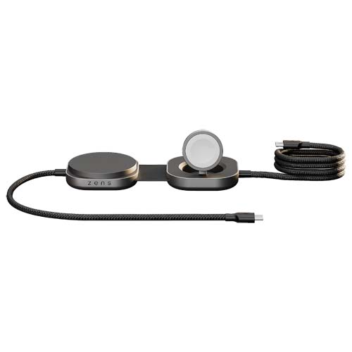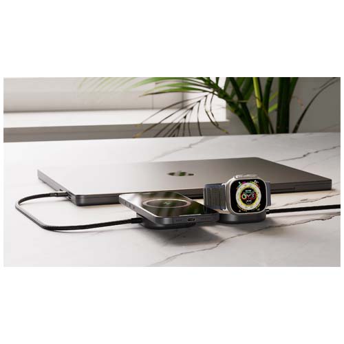 Заряжайте свой MacBook или любое устройство с разъемом USB-C, одновременно заряжая iPhone (12+), AirPods или Apple Watch через беспроводную зарядку с помощью умного зарядного кабеля USB-C 3-в-1 Pro 3. Поддерживает технологию Power Delivery мощностью до 140 Вт и обеспечивает быструю беспроводную зарядку мощностью 15 Вт (5 Вт для Apple Watch), сертифицированную по стандарту Qi2, для питания всех повседневных устройств. Изготовлен из высококачественного алюминия, имеет компактную складную конструкцию и идеально подходит для поездок на работу, работы в смешанном режиме и путешествий. Для оптимальной работы используйте его с адаптером USB-C мощностью не менее 65 Вт (рекомендуется 140 Вт).
