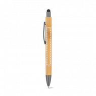 Бамбуковая шариковая ручка с металлическим зажимом, элементами PP и матовым покрытием. Имеет сенсорный наконечник серого металлического цвета для соответствующего контакта с сенсорными экранами. Черные чернила. As the product is made from natural materials, the colour of the product and the printing result may vary between products. Ø11 x 141 мм